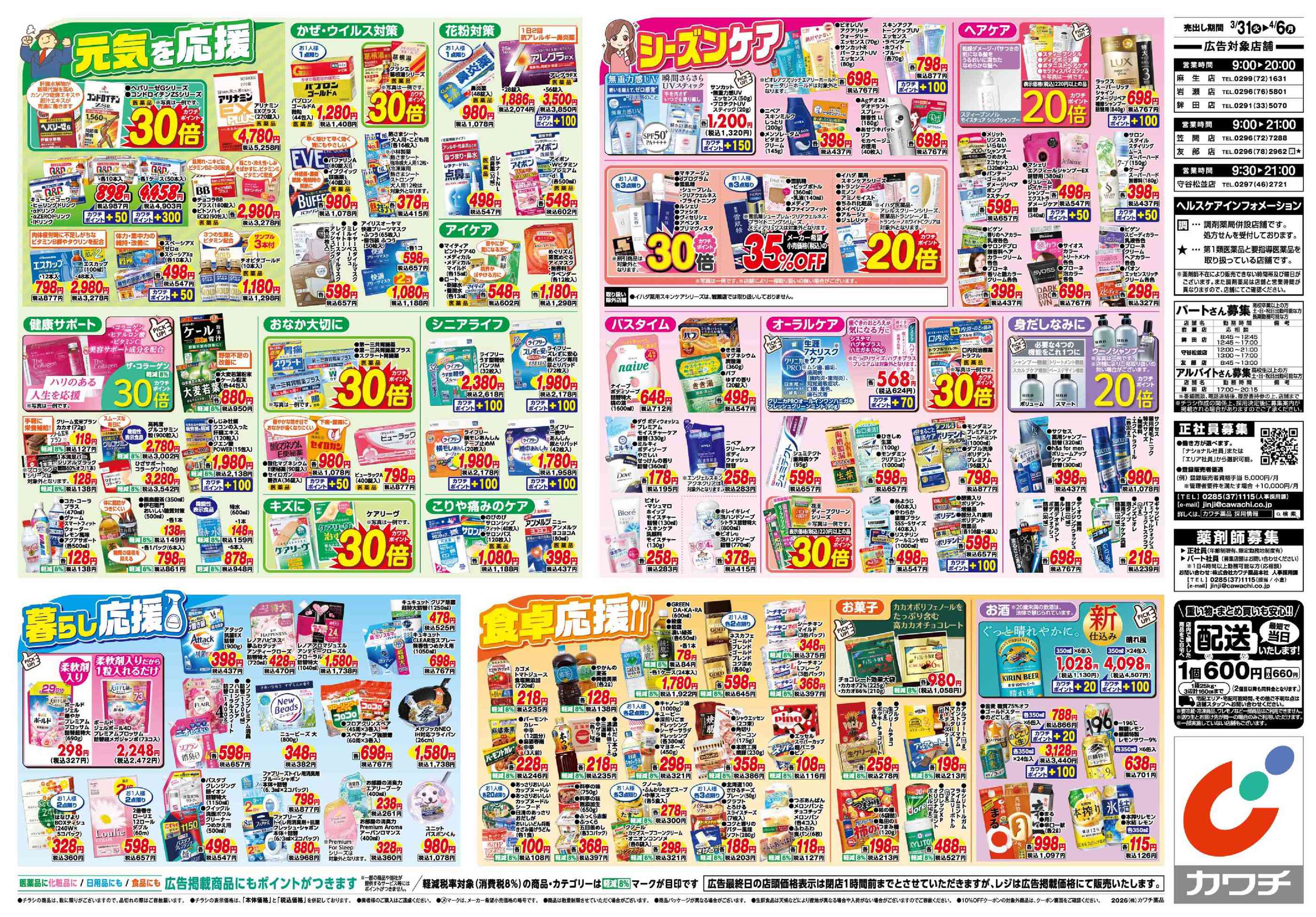 カワチ薬品岩瀬店今週のチラシ(2026年3月30日〜4月5日)