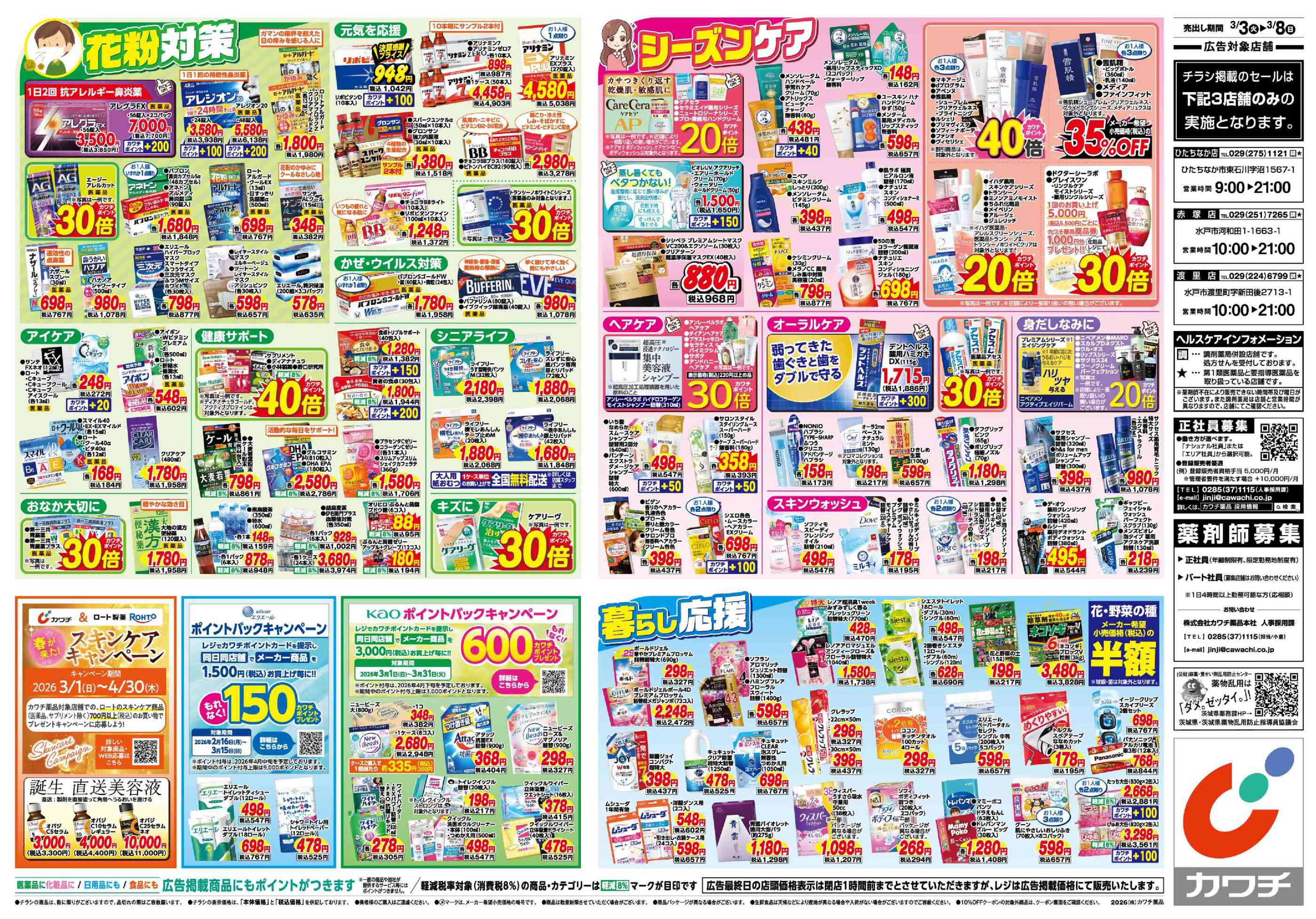カワチ薬品渡里店今週のチラシ(2026年3月9日〜3月15日)