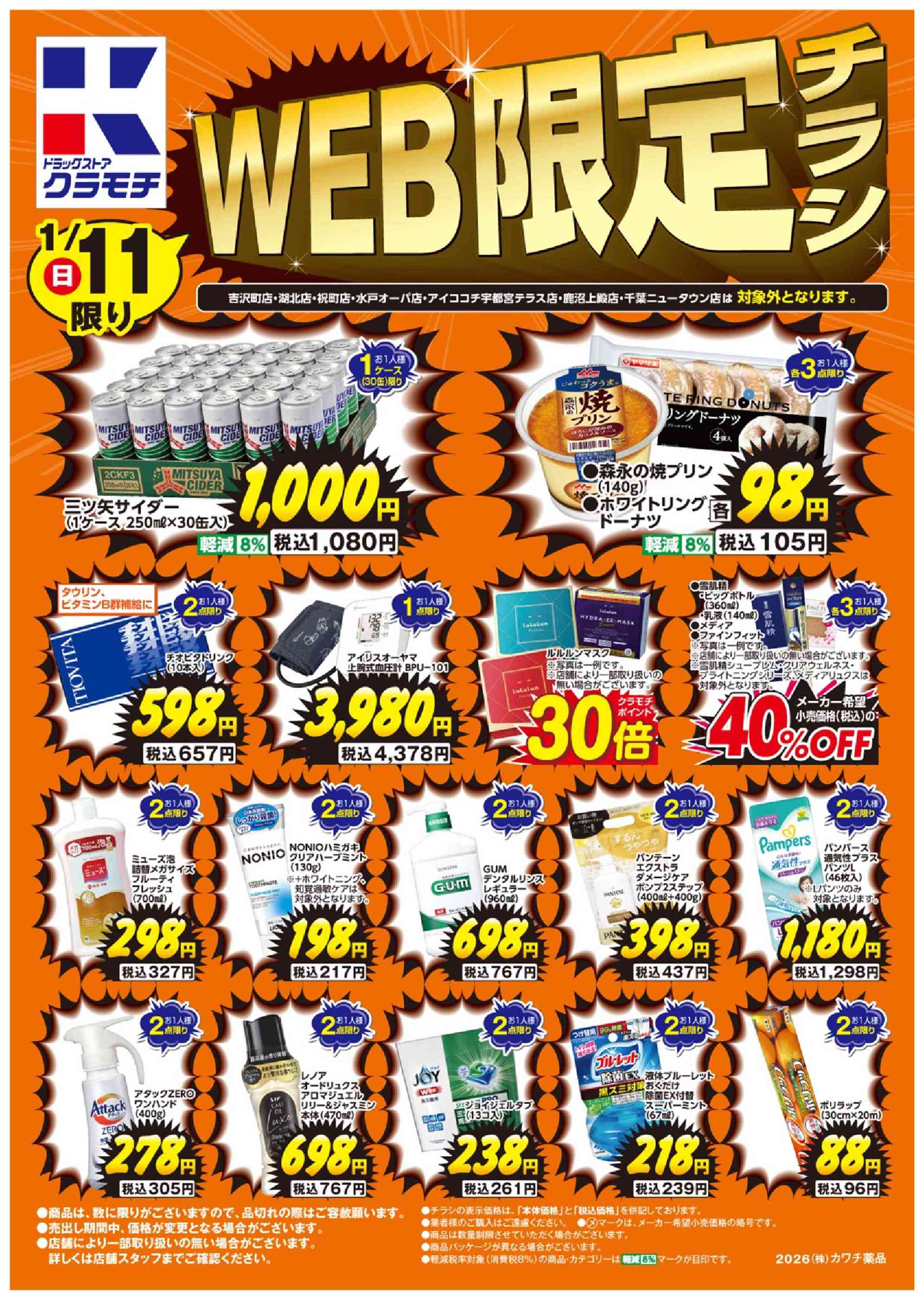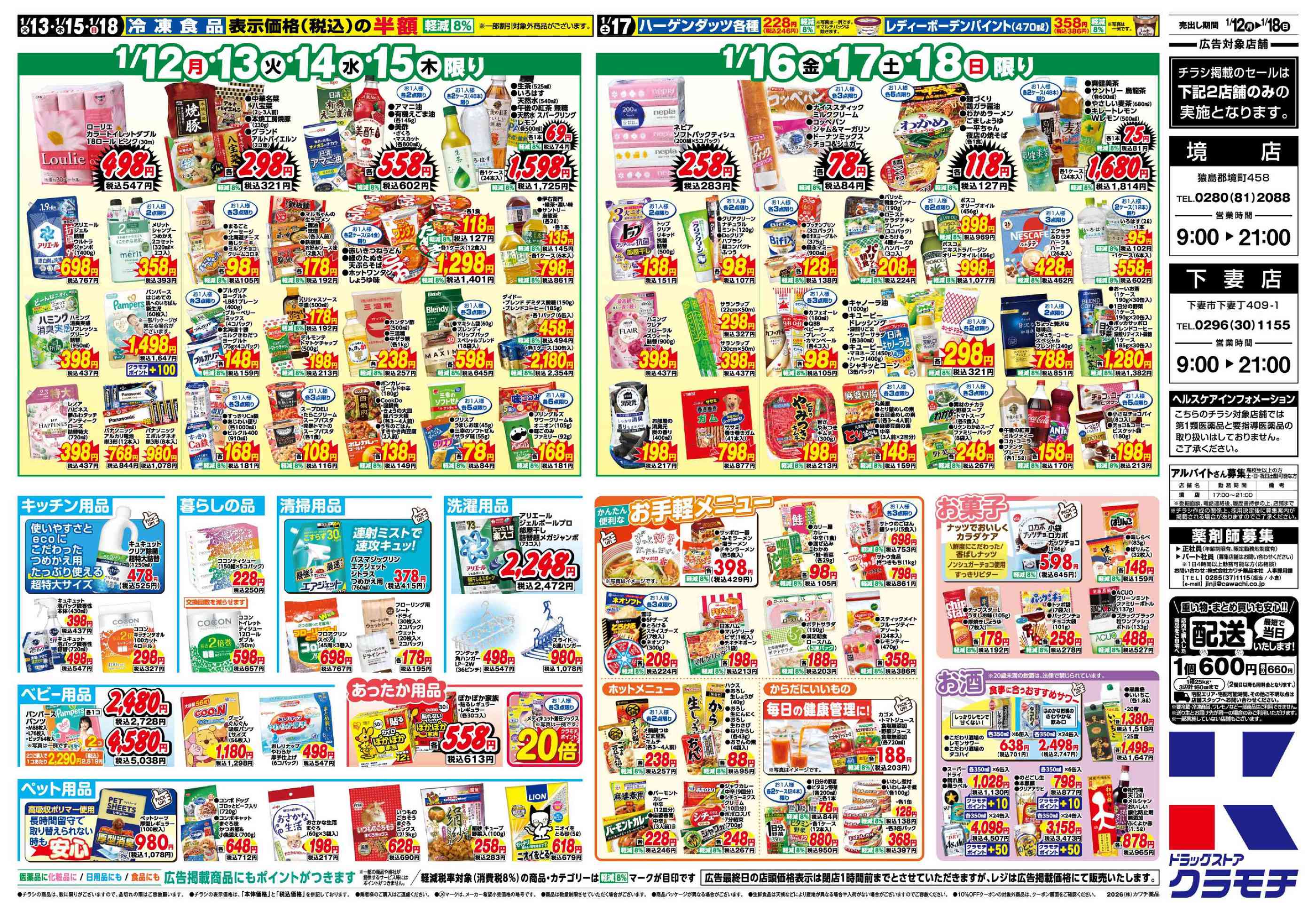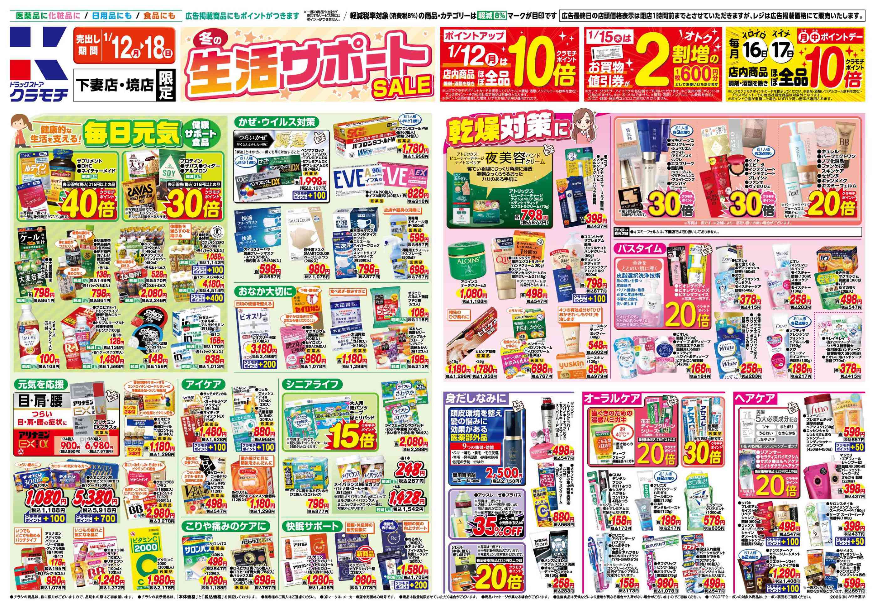 ドラッグストアクラモチ境店今週のチラシ(2026年1月12日〜1月18日)