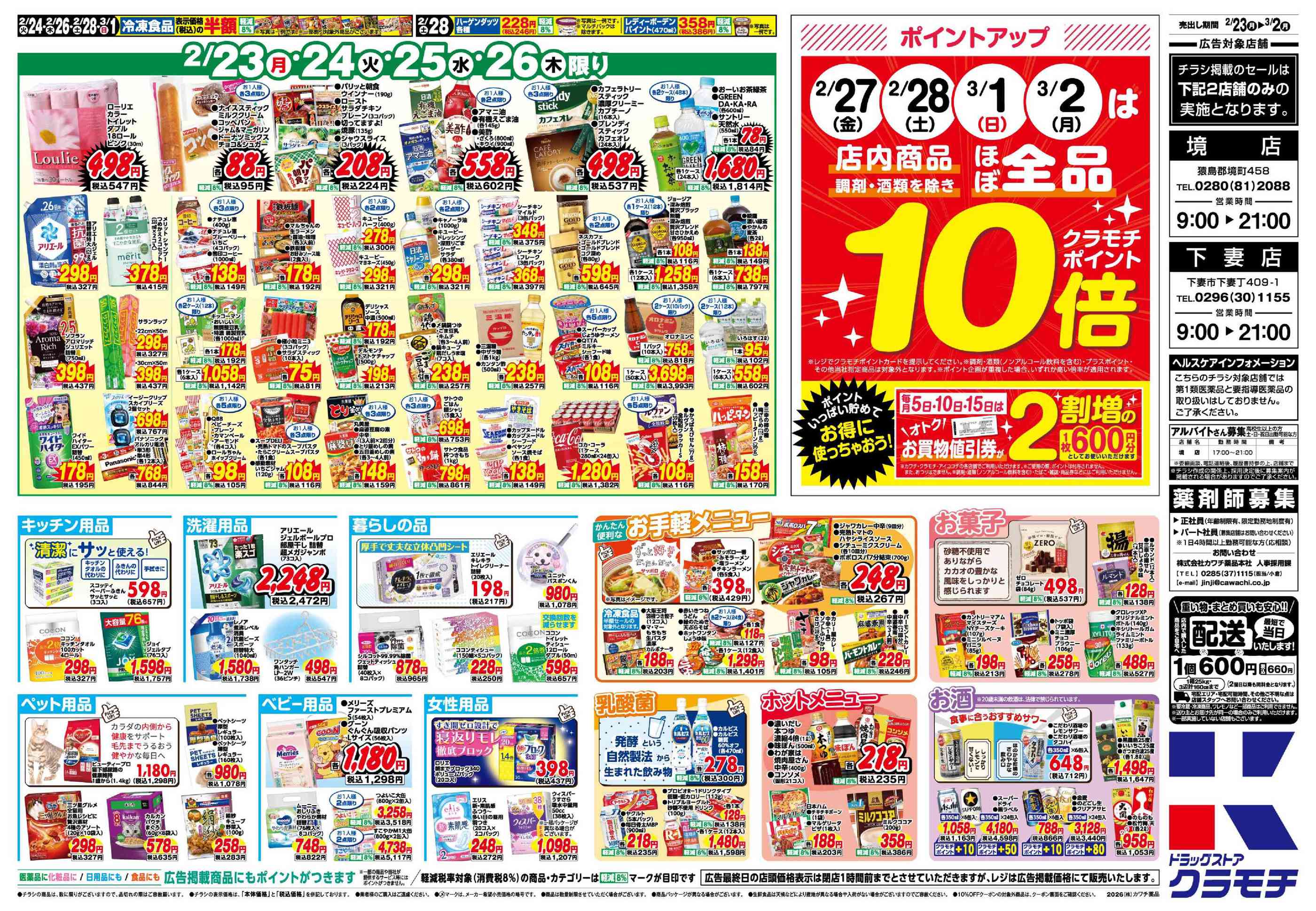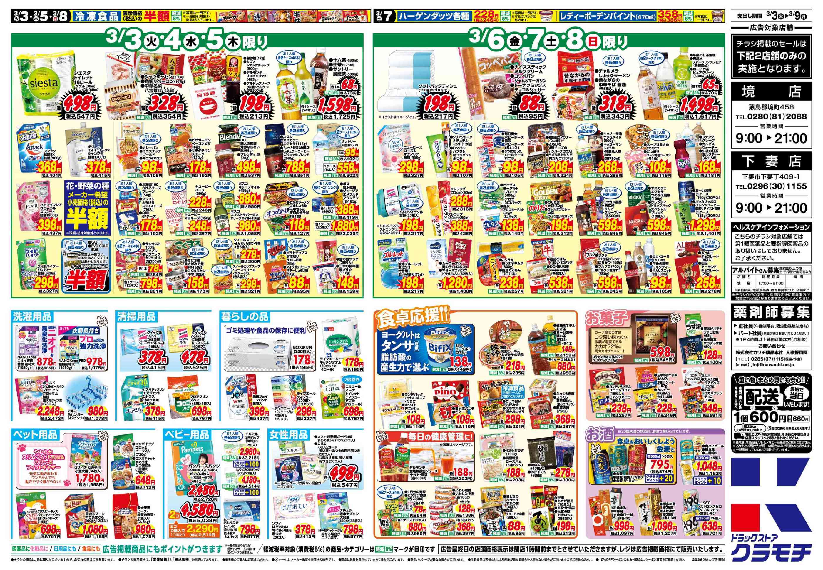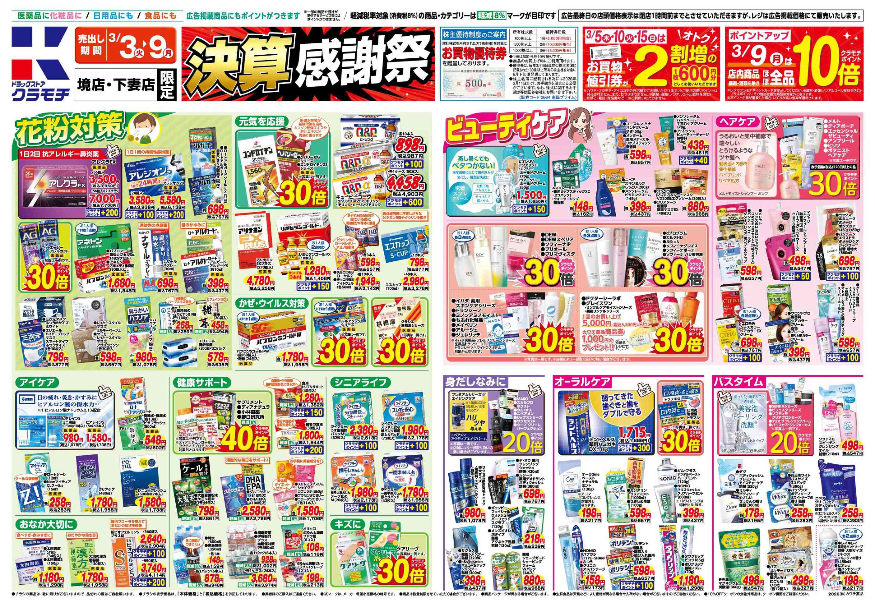 ドラッグストアクラモチ境店今週のチラシ(2026年3月2日〜3月8日)