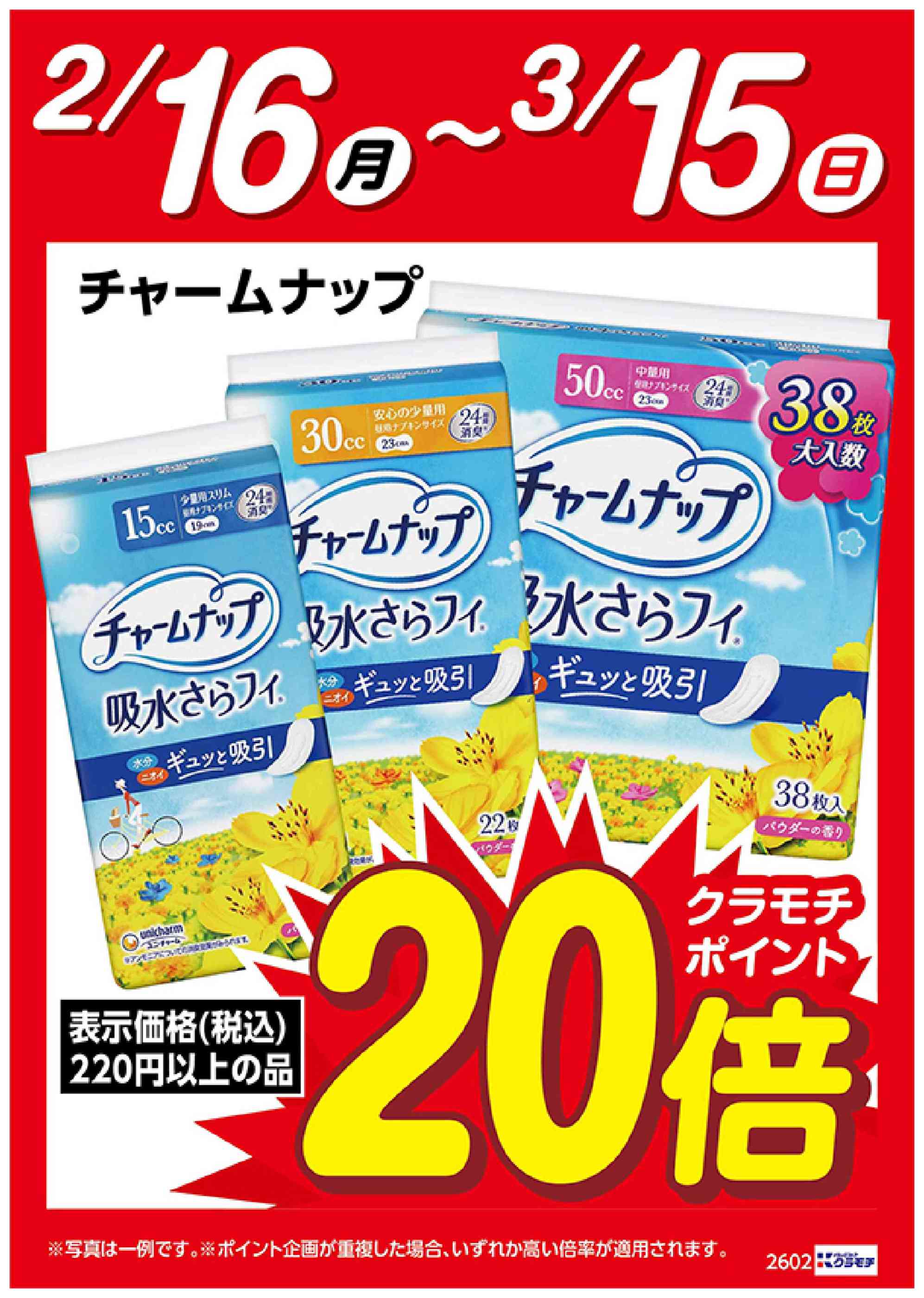 - 2026年2月16日〜3月15日までチャームナップ ポイント20倍 (1枚)