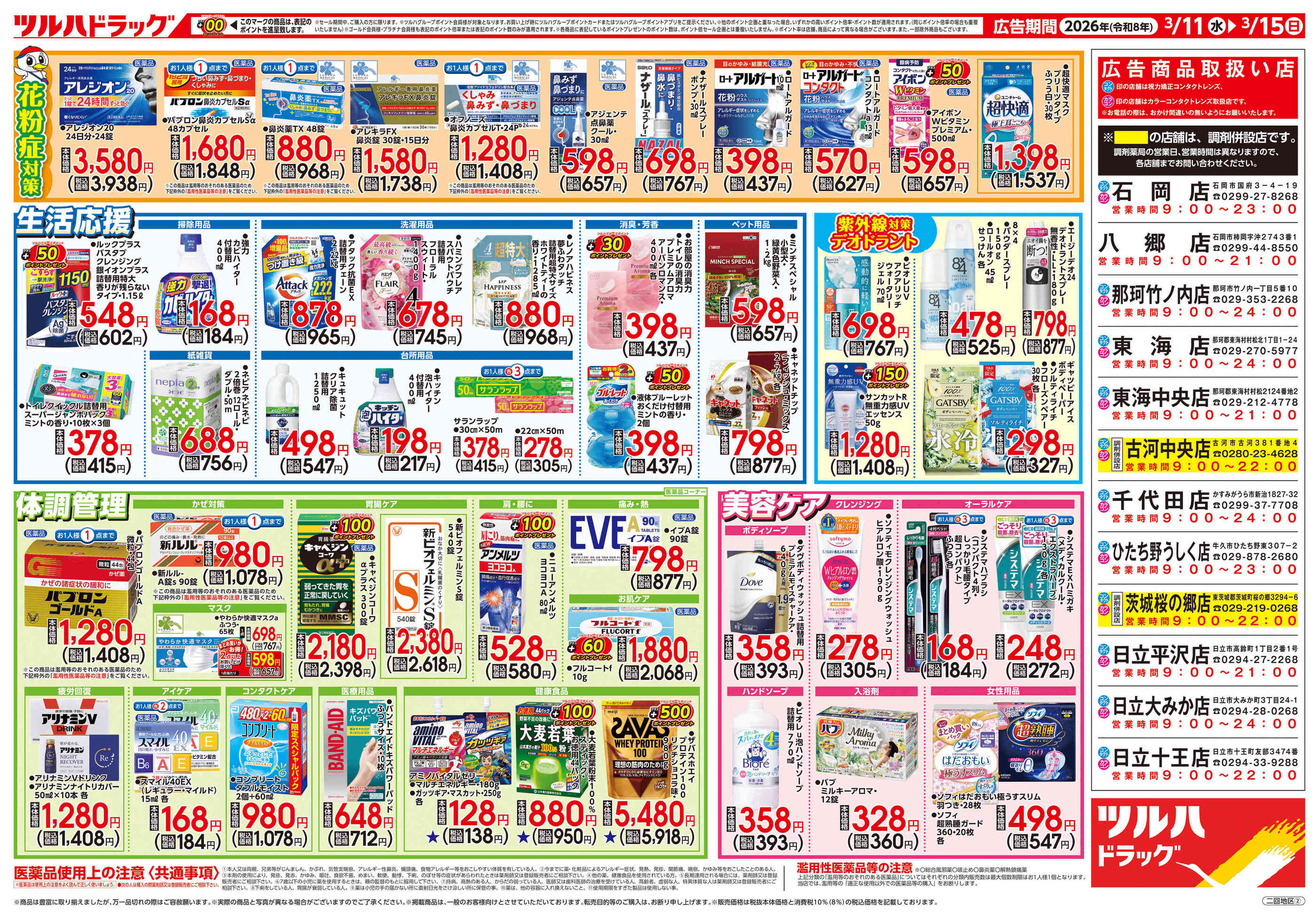 ツルハドラッグ石岡店今週のチラシ(2026年3月9日〜3月15日)