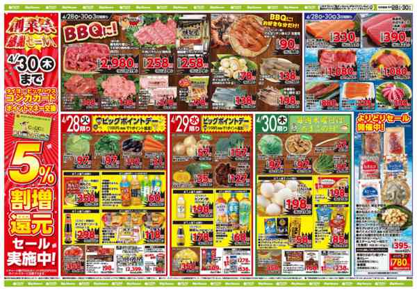 特売やセール情報など最新のチラシを掲載中。(3種類、5枚のチラシを掲載しています)