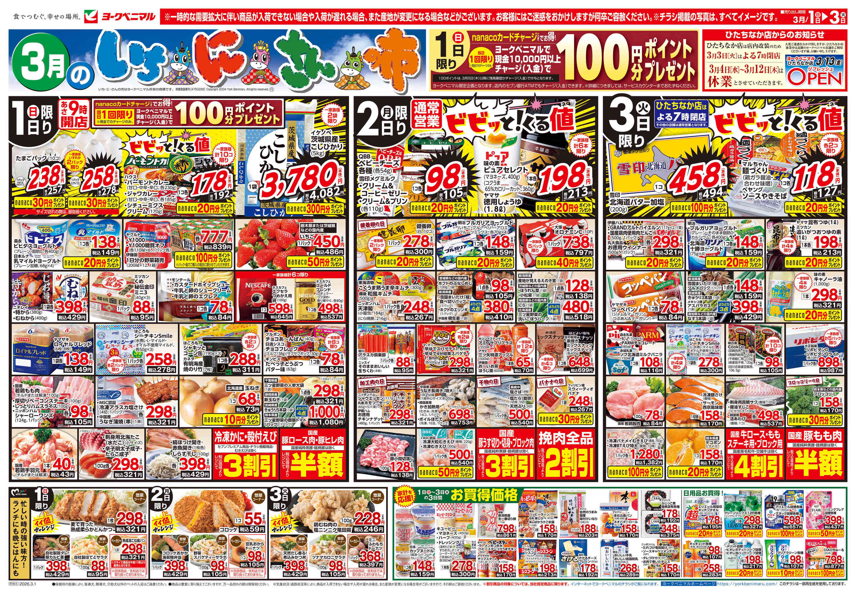 ヨークベニマル友部東平店今週のチラシ(2026年3月9日〜3月15日)