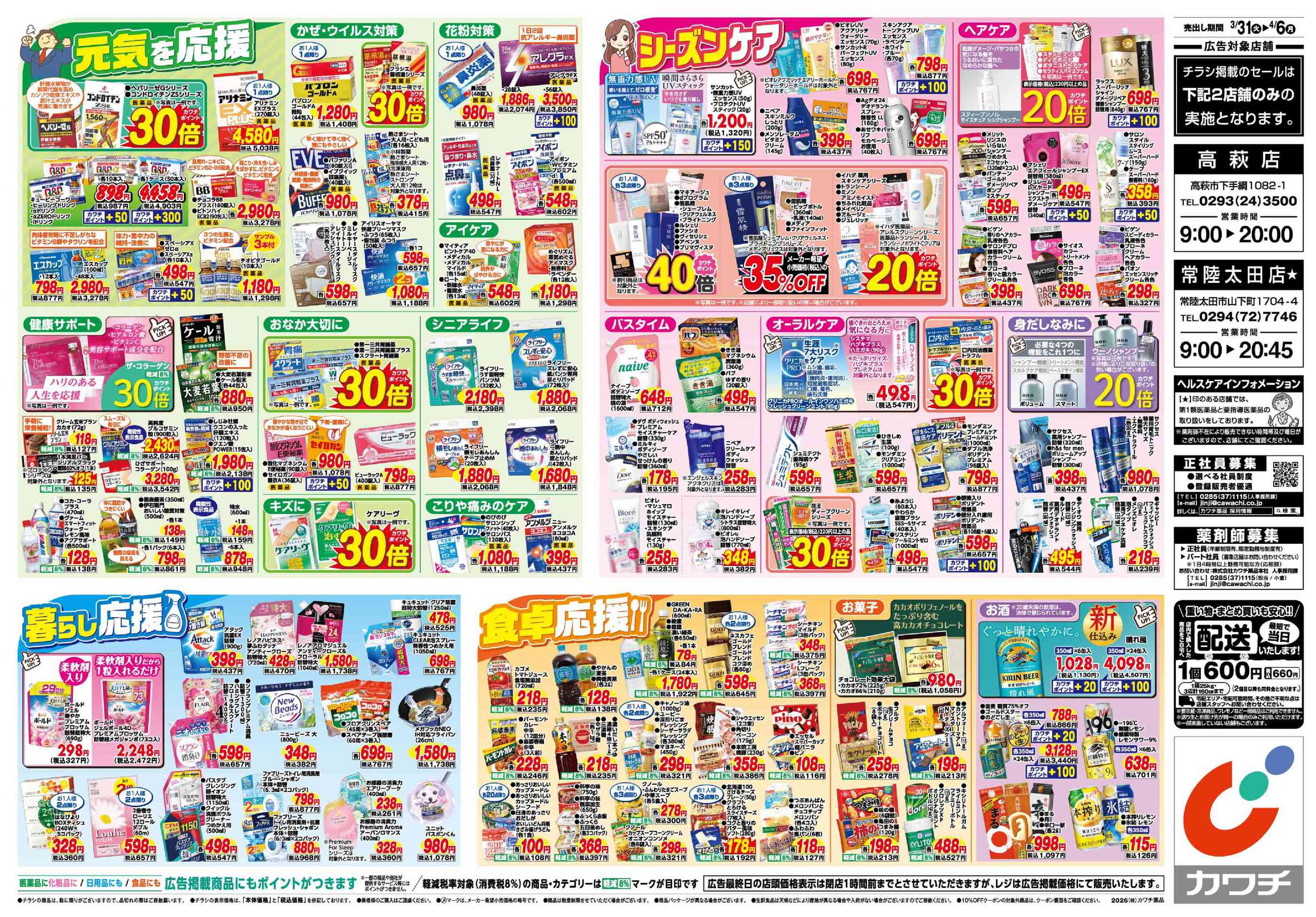 カワチ薬品高萩店今週のチラシ(2026年3月30日〜4月5日)