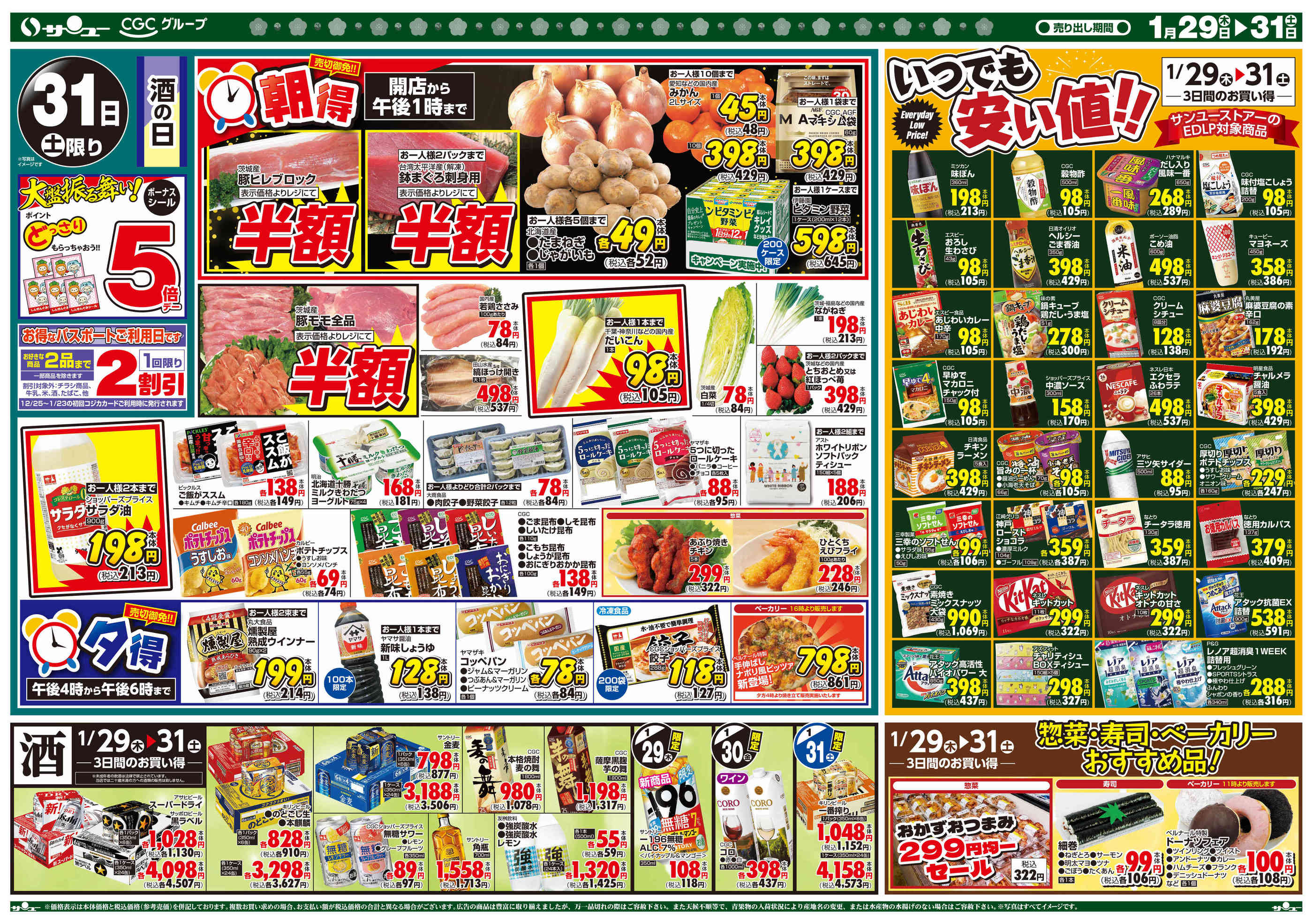 特売やセール情報など最新のチラシを掲載中。(3種類、5枚のチラシを掲載しています)