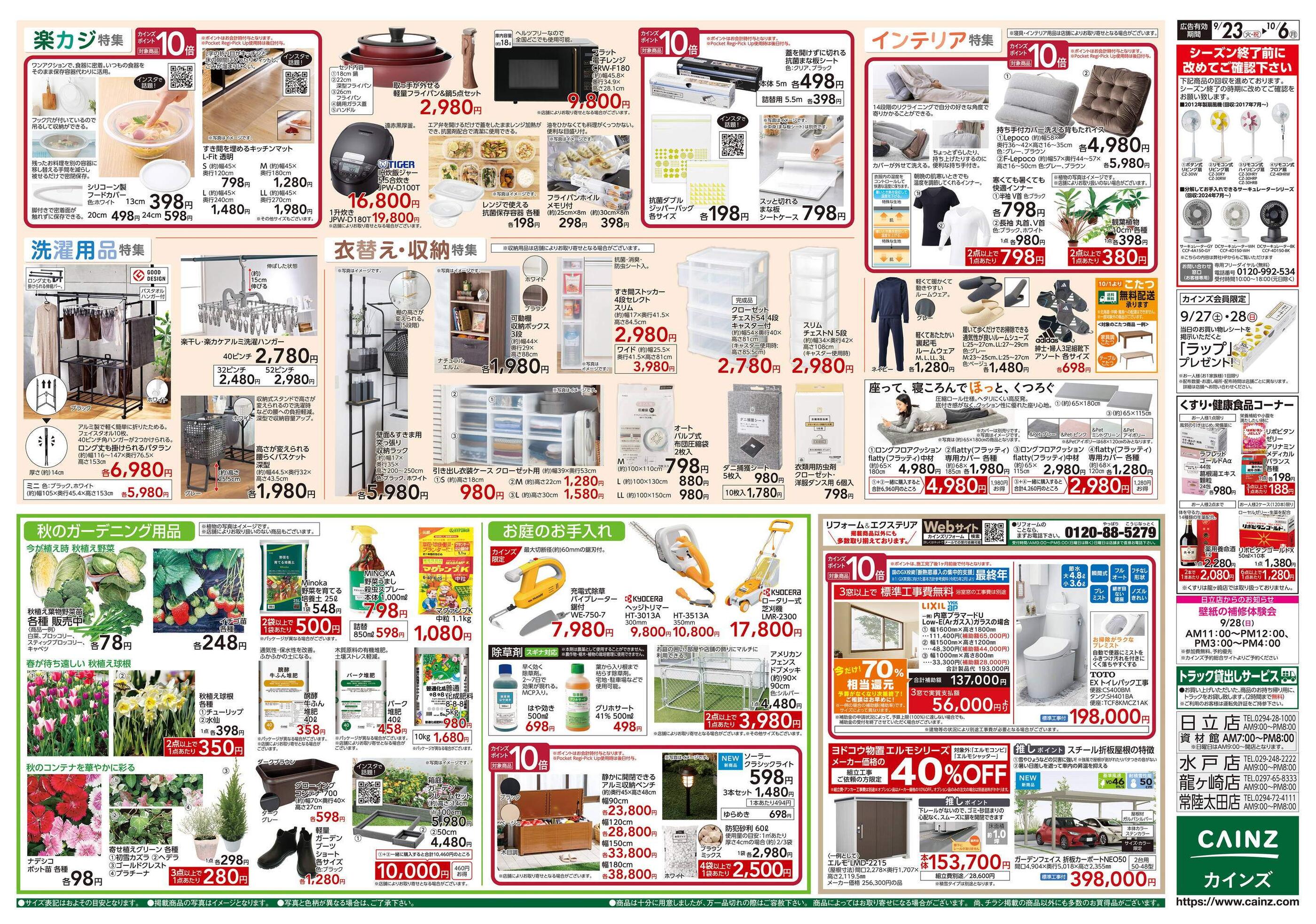 カインズ龍ケ崎店今週のチラシ(2025年9月29日〜10月5日)