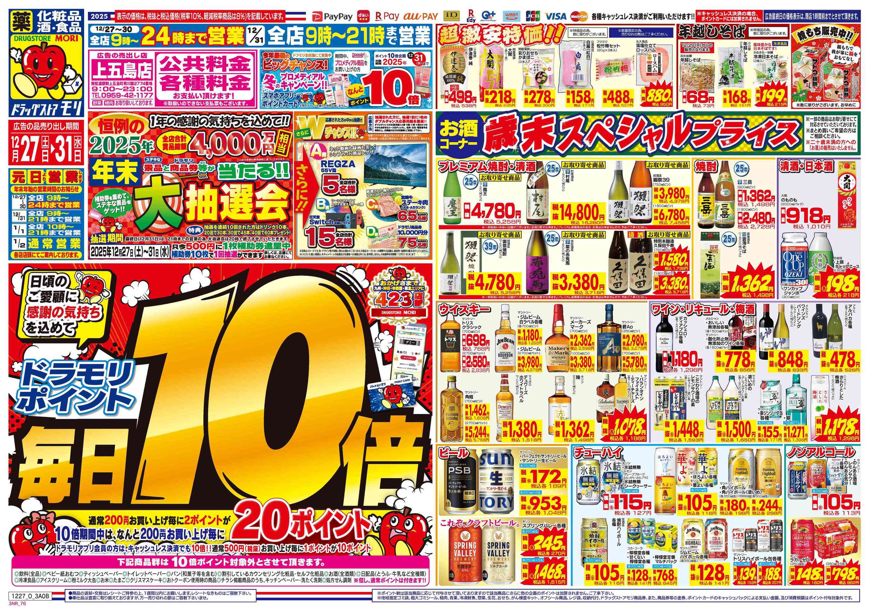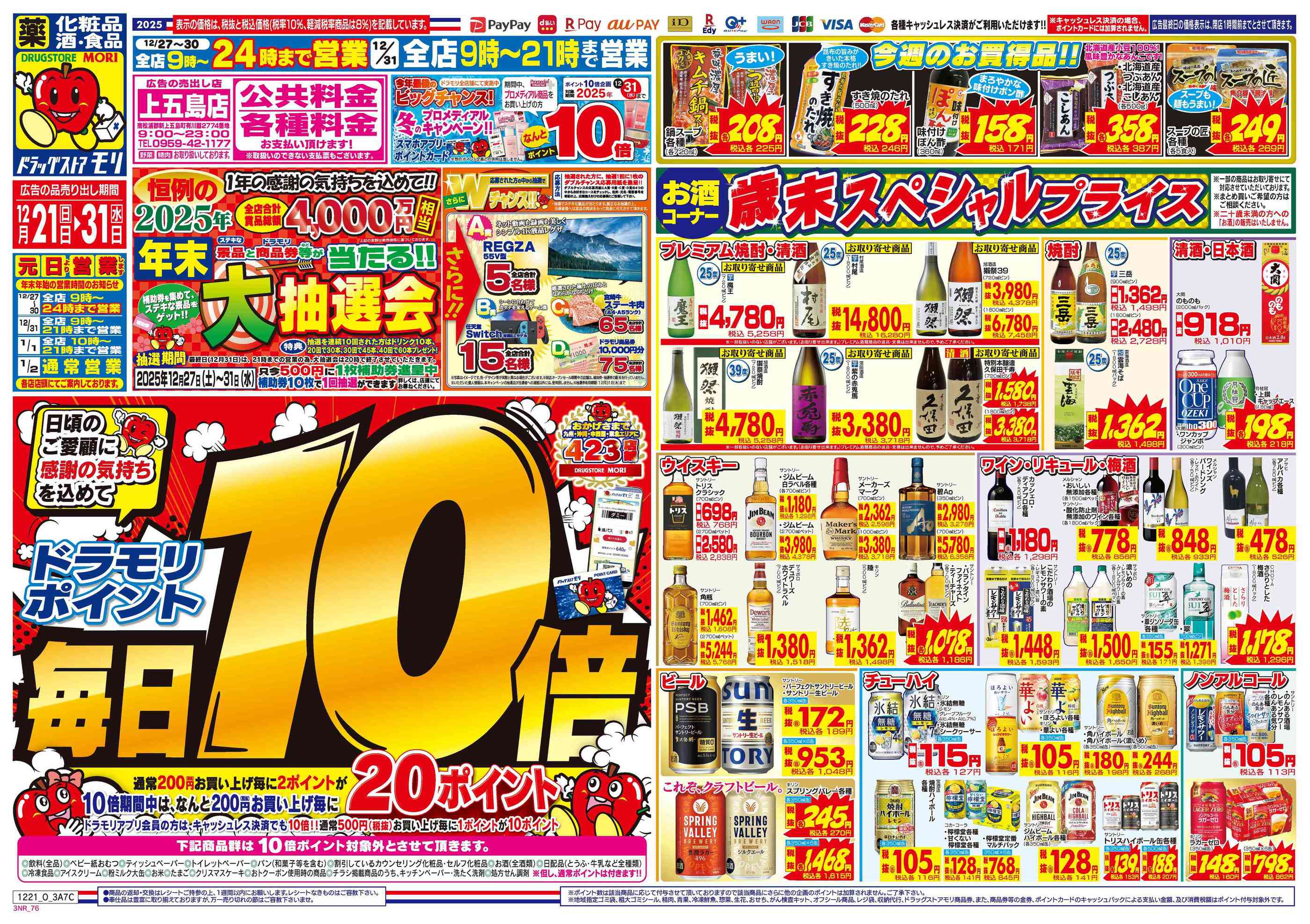 ドラッグストアモリ上五島店今週のチラシ(2025年12月29日〜1月4日)