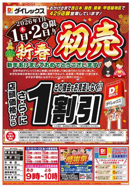 ※「店舗の掲載内容について」チラシガイドに掲載している情報は、独自に調査した内容及びユーザーから頂いた情報を掲載しています。お気づきの点がございましたら「お問い合わせ」よりご連絡ください。また店舗の営業状況、商品に関するお問い合わせは直接店舗事業者にご確認ください。