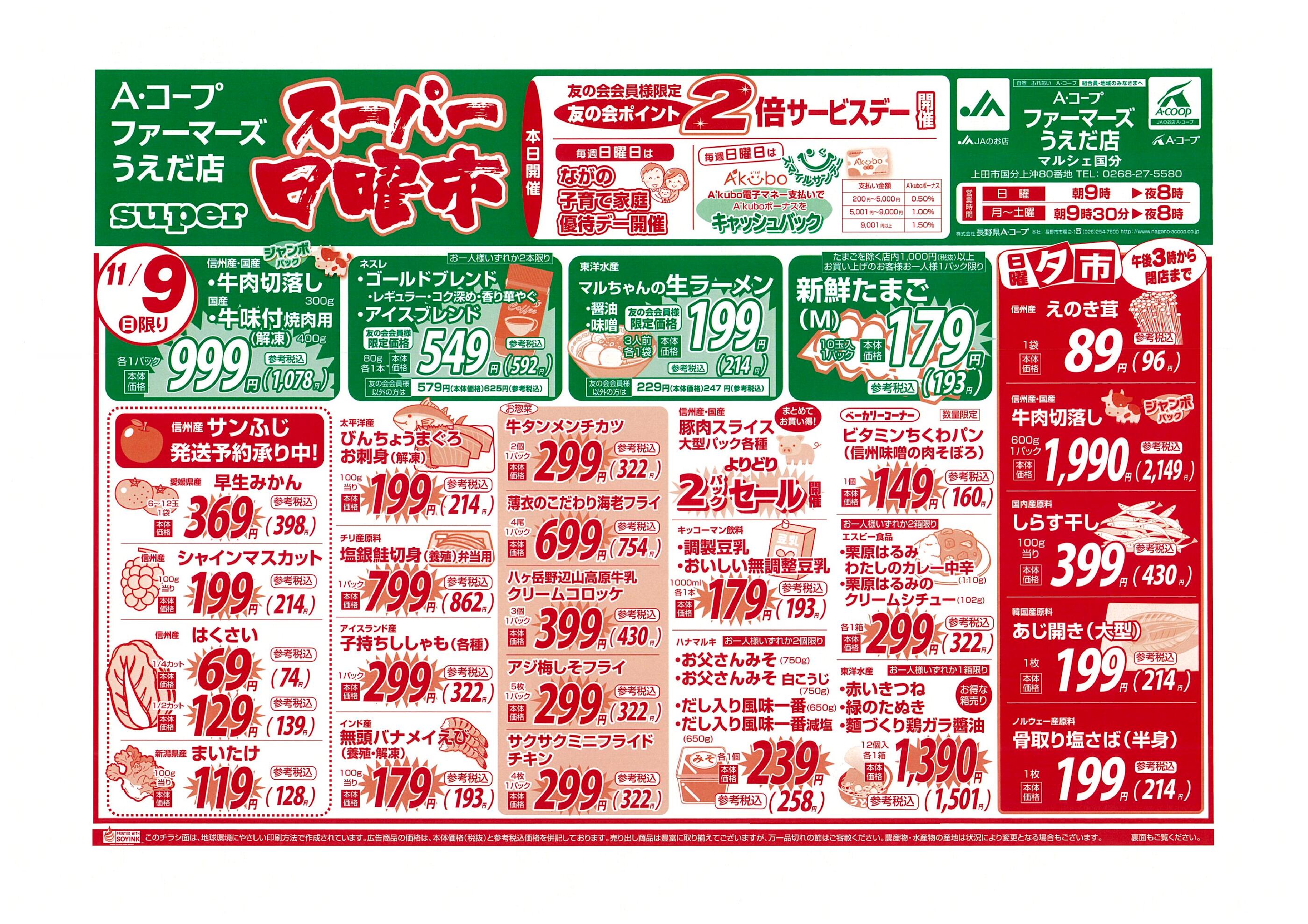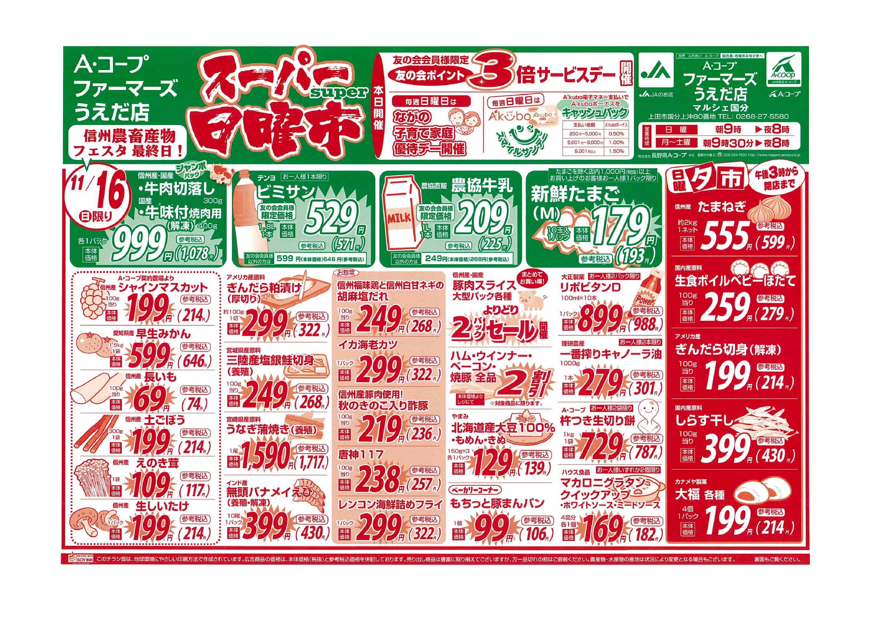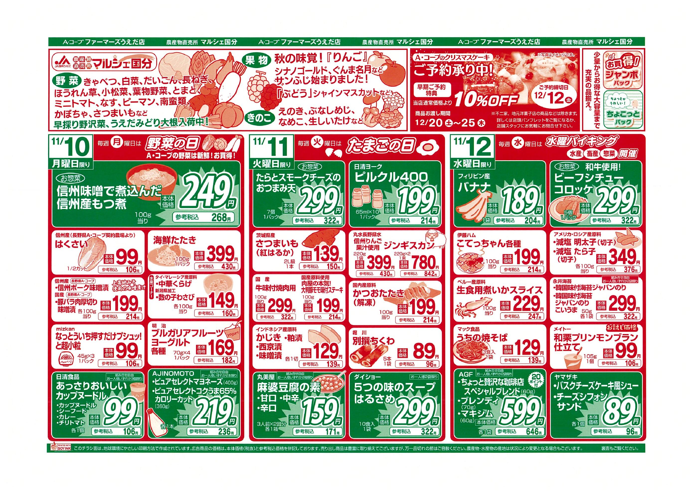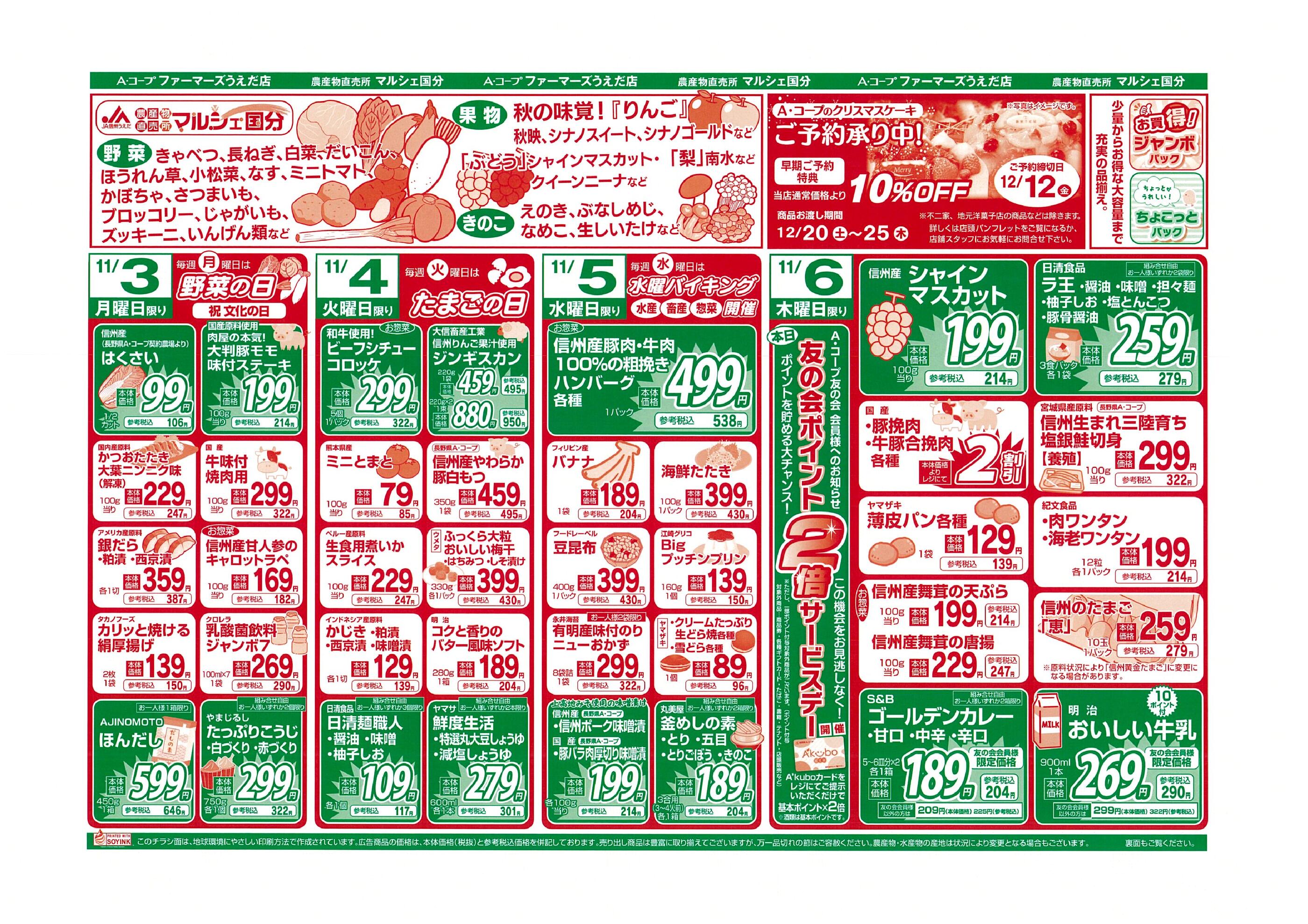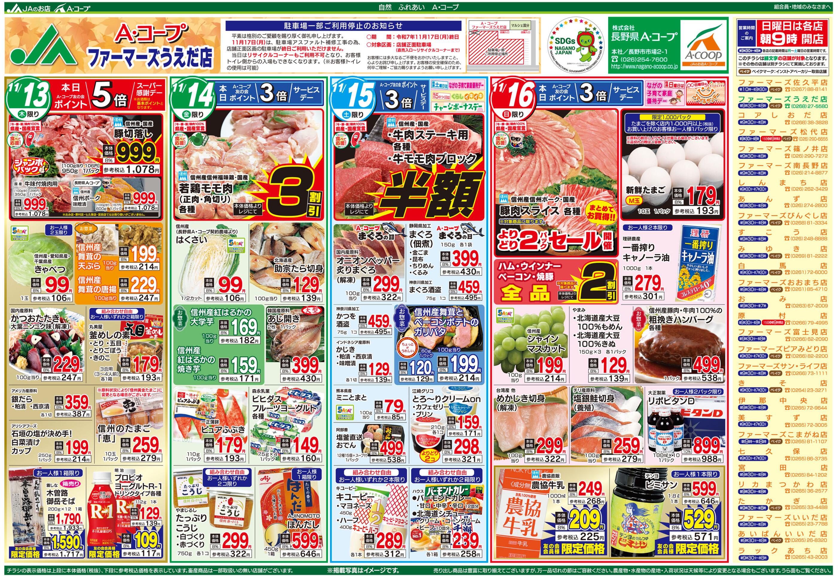 Aコープファーマーズうえだ店今週のチラシ(2025年11月10日〜11月16日)