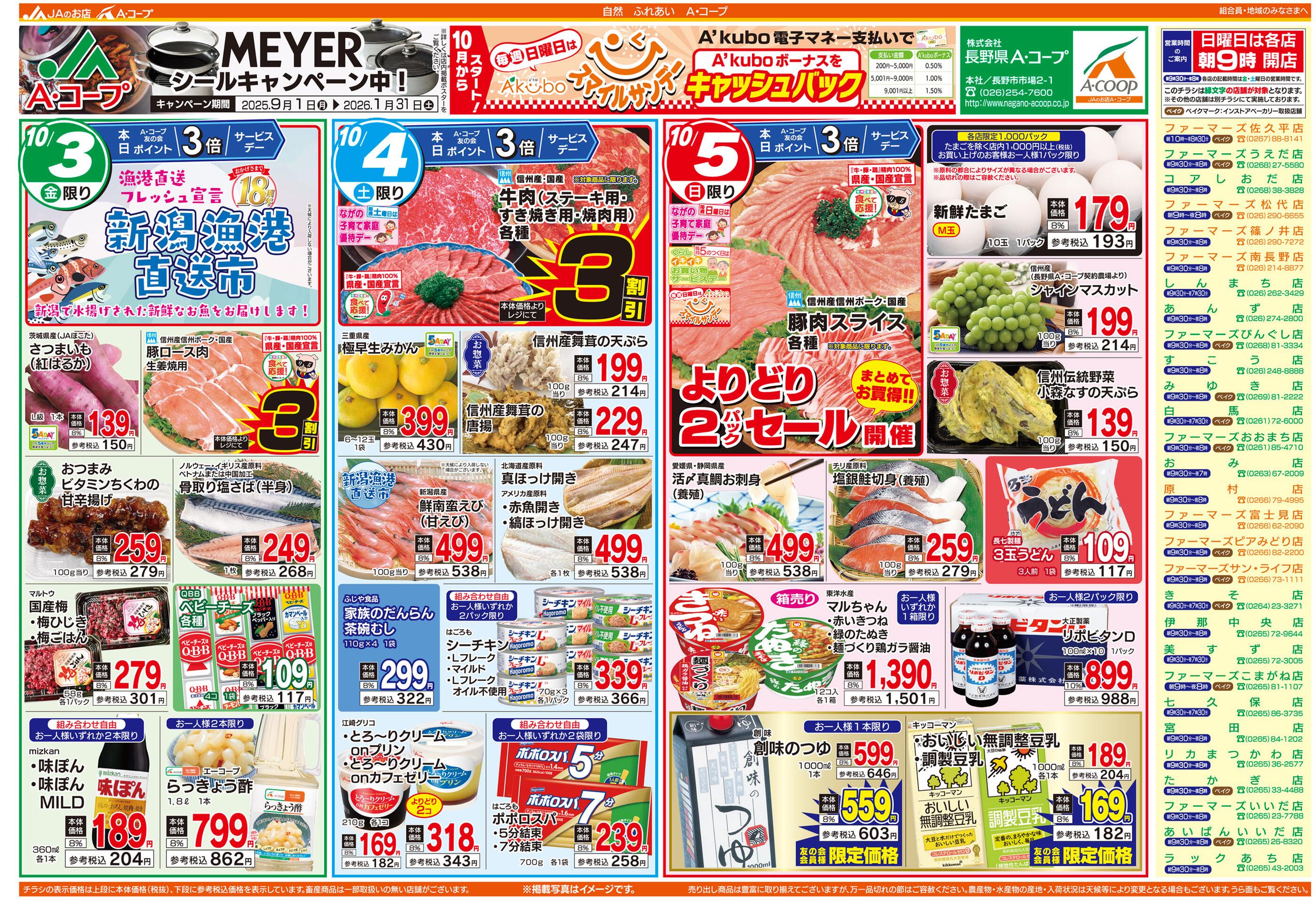 Aコープ伊那中央店今週のチラシ(2025年9月29日〜10月5日)