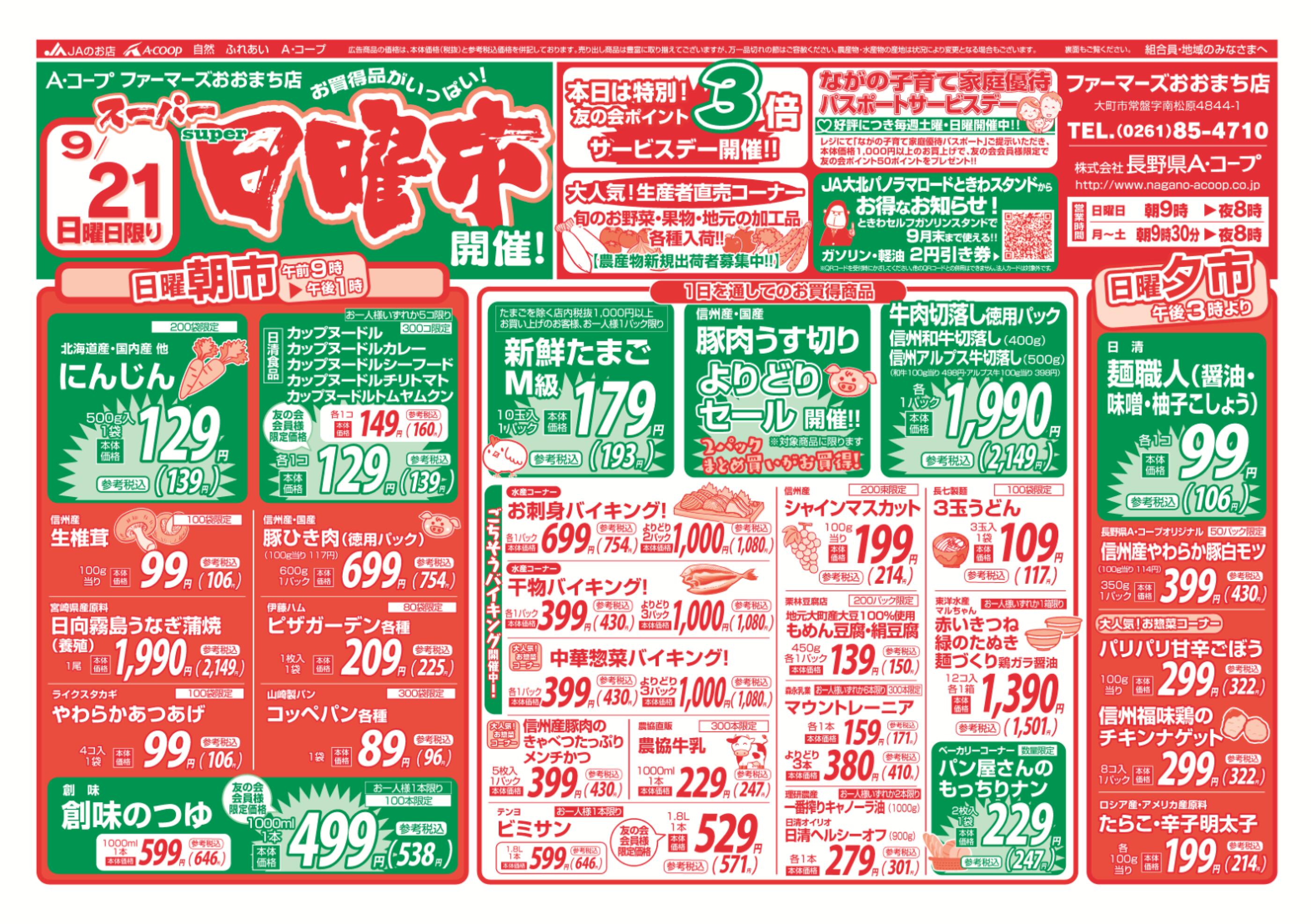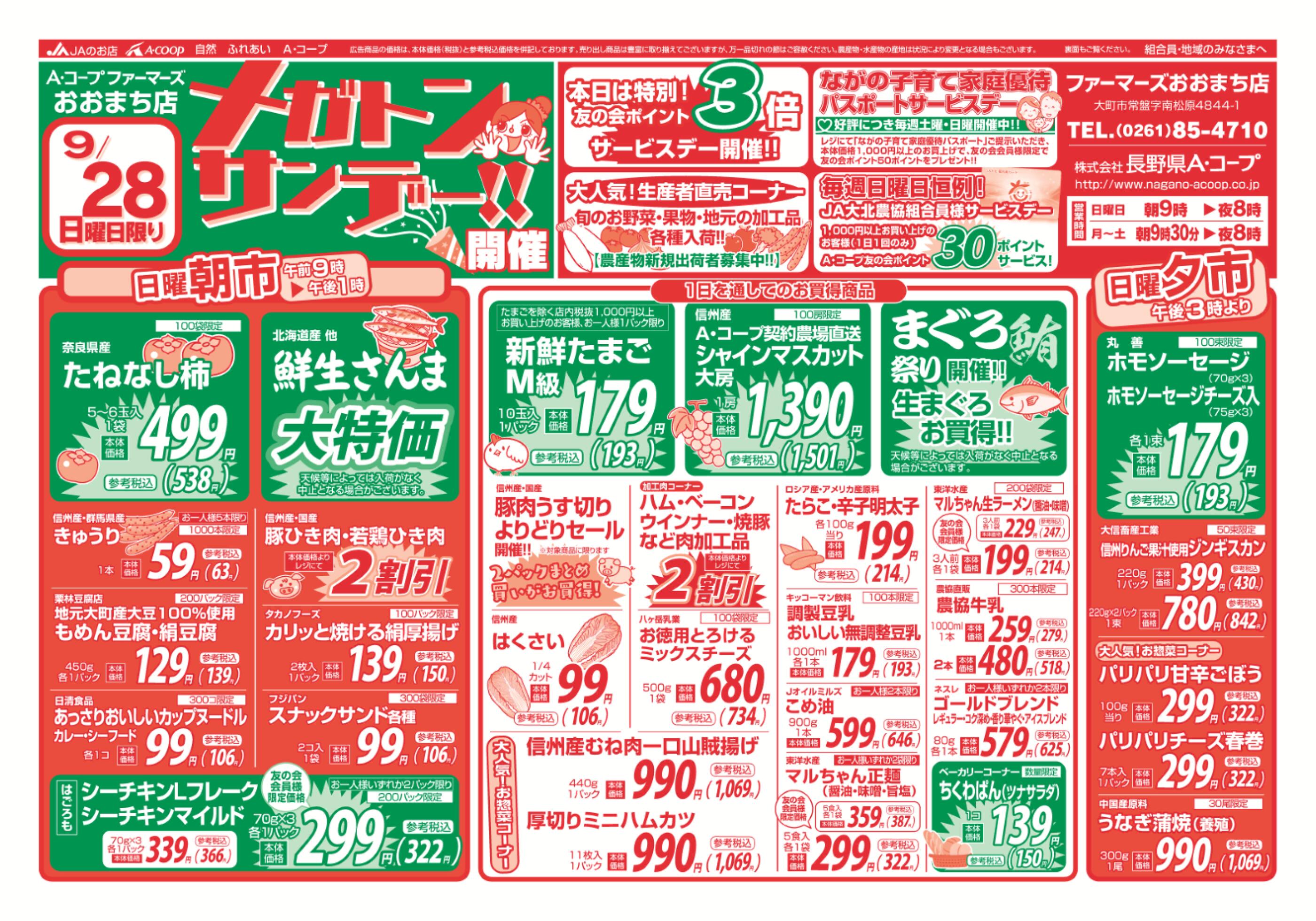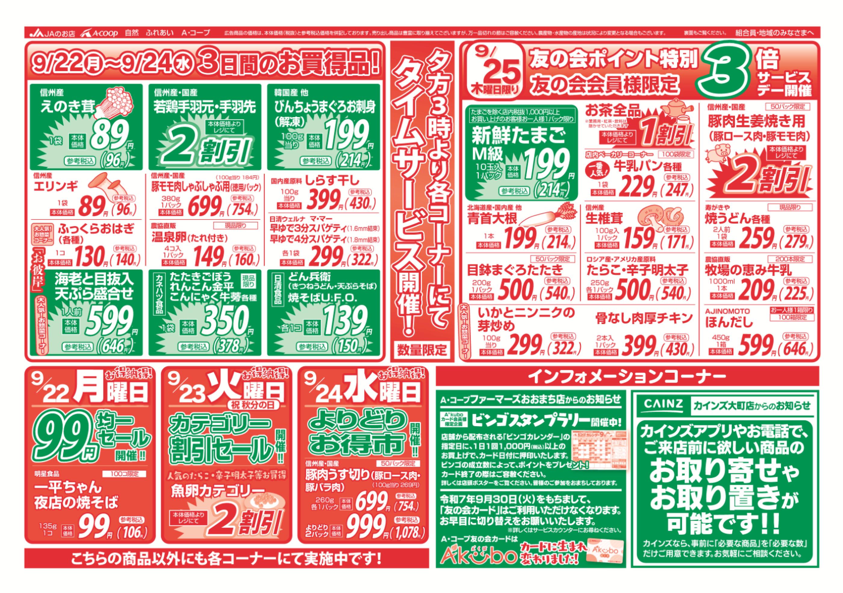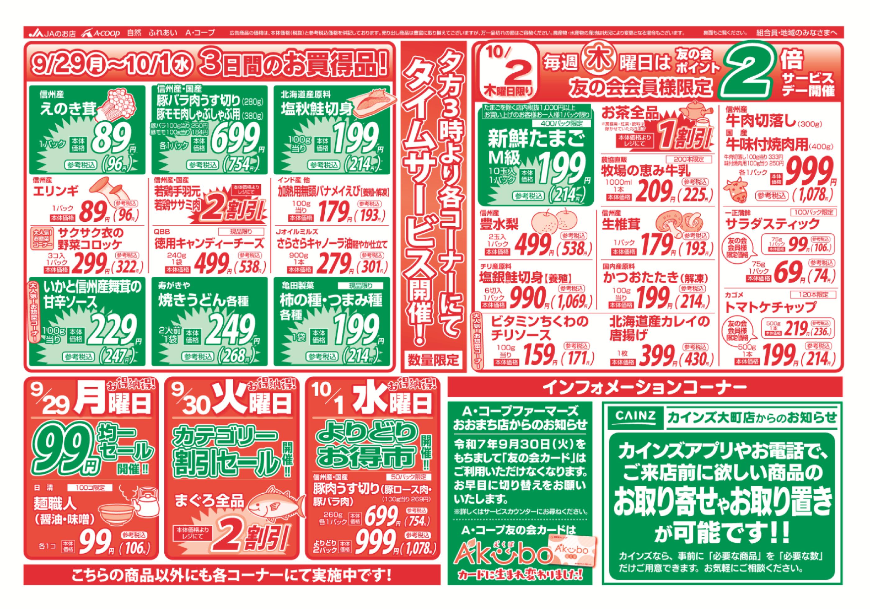 JAファーマーズおおまち店今週のチラシ(2025年9月29日〜10月5日)