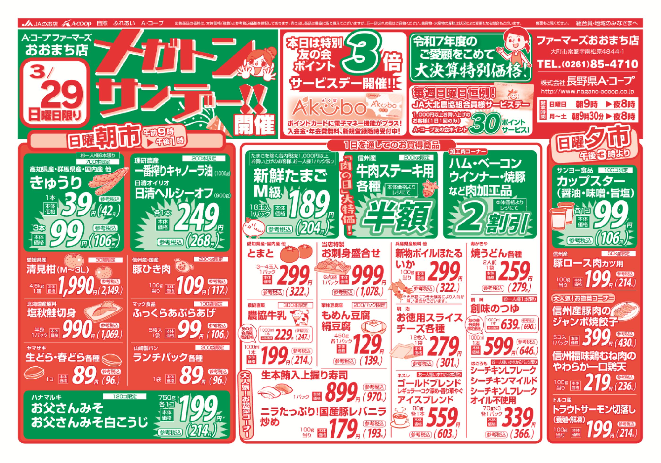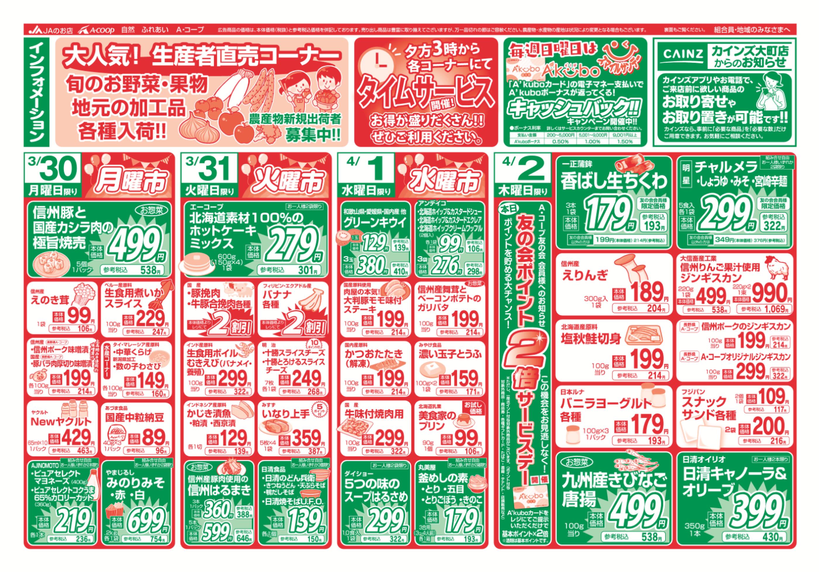 JAファーマーズおおまち店今週のチラシ(2026年3月30日〜4月5日)