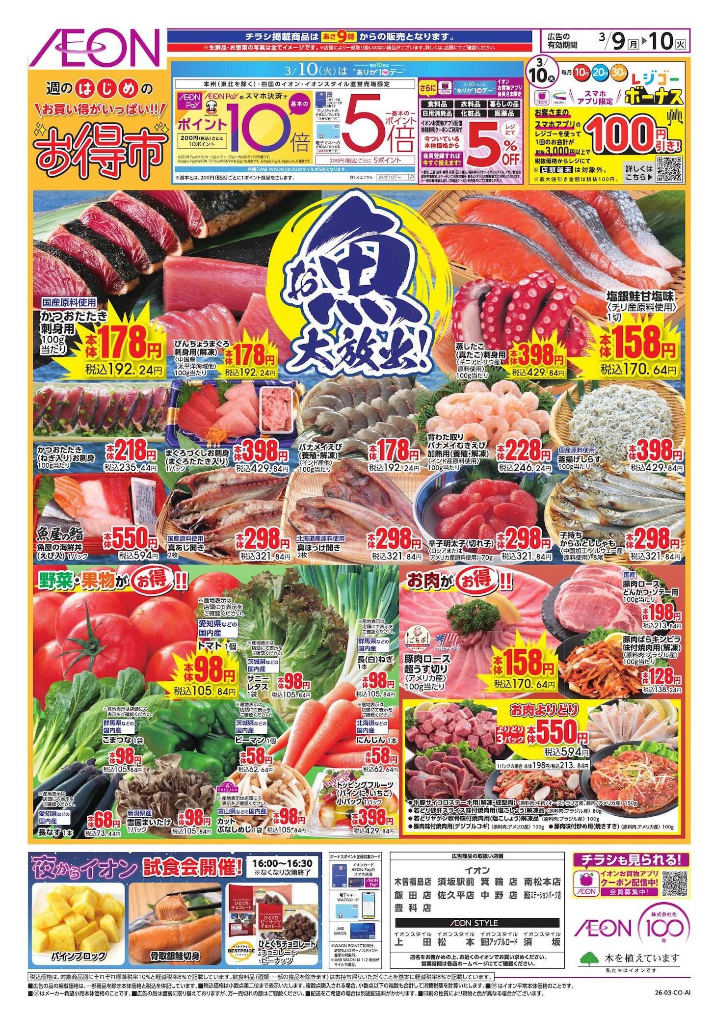 イオン木曽福島店今週のチラシ(2026年3月9日〜3月15日)