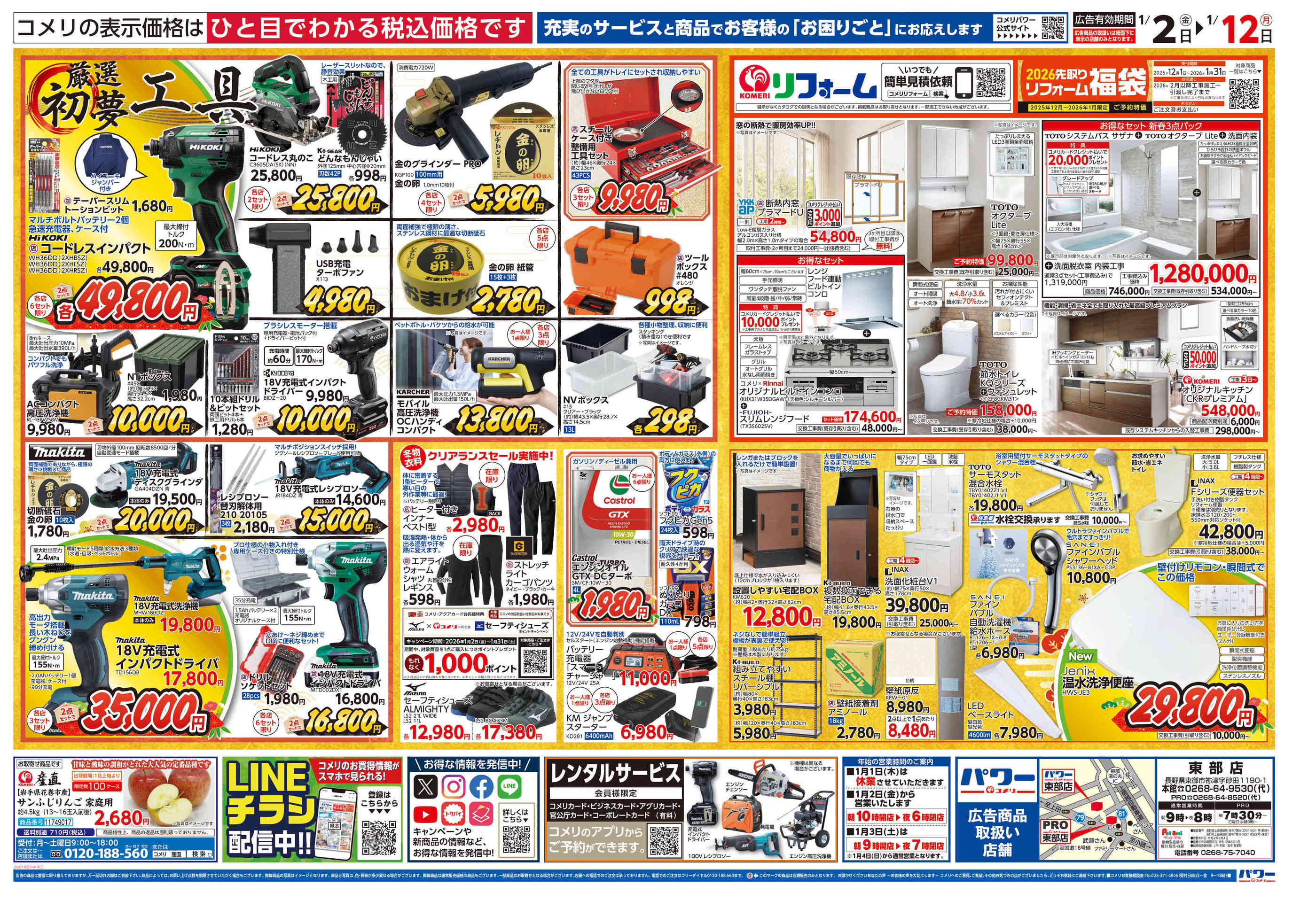 コメリパワー東部店今週のチラシ(2026年1月5日〜1月11日)