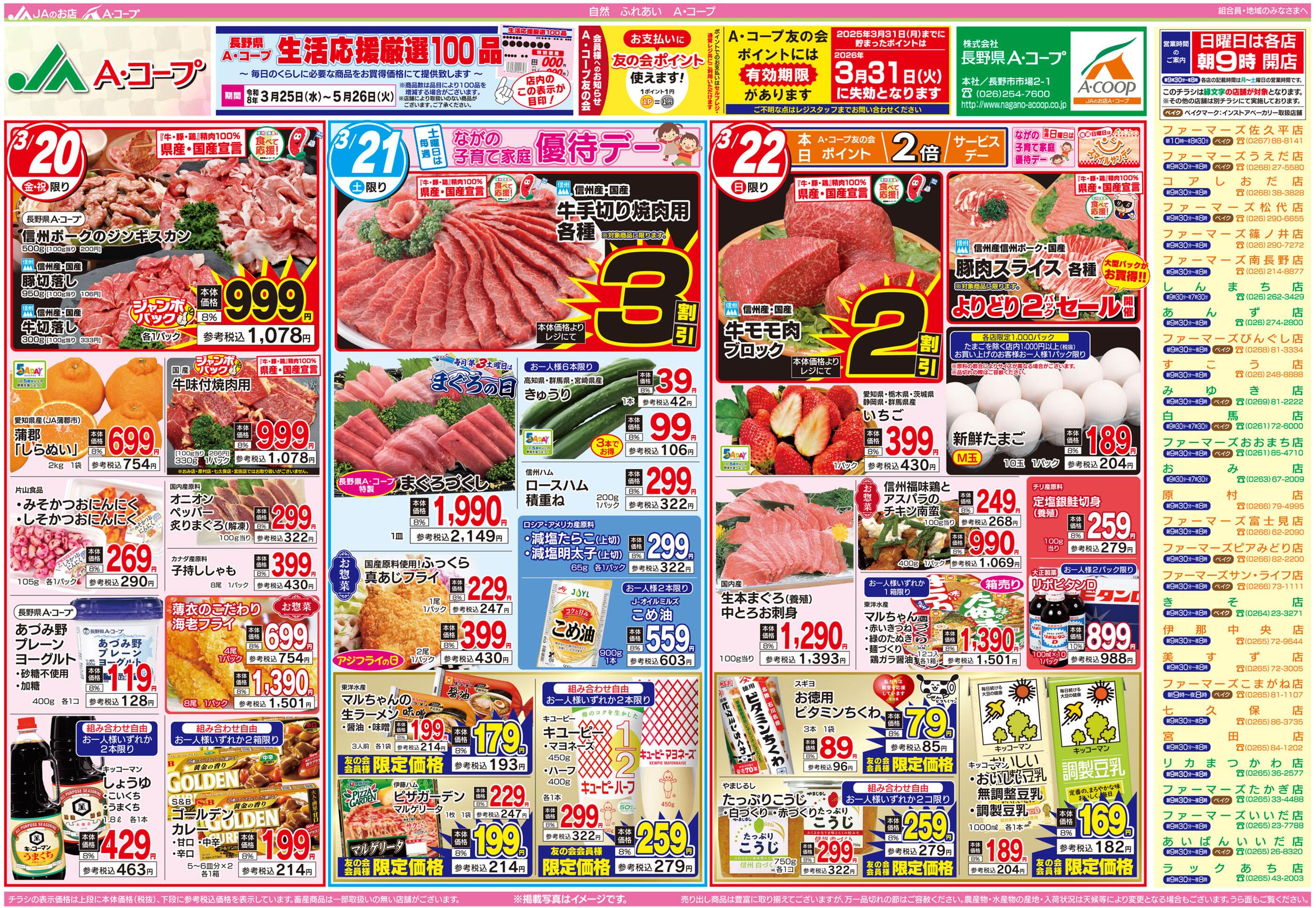 Aコープおみ店今週のチラシ(2026年3月30日〜4月5日)