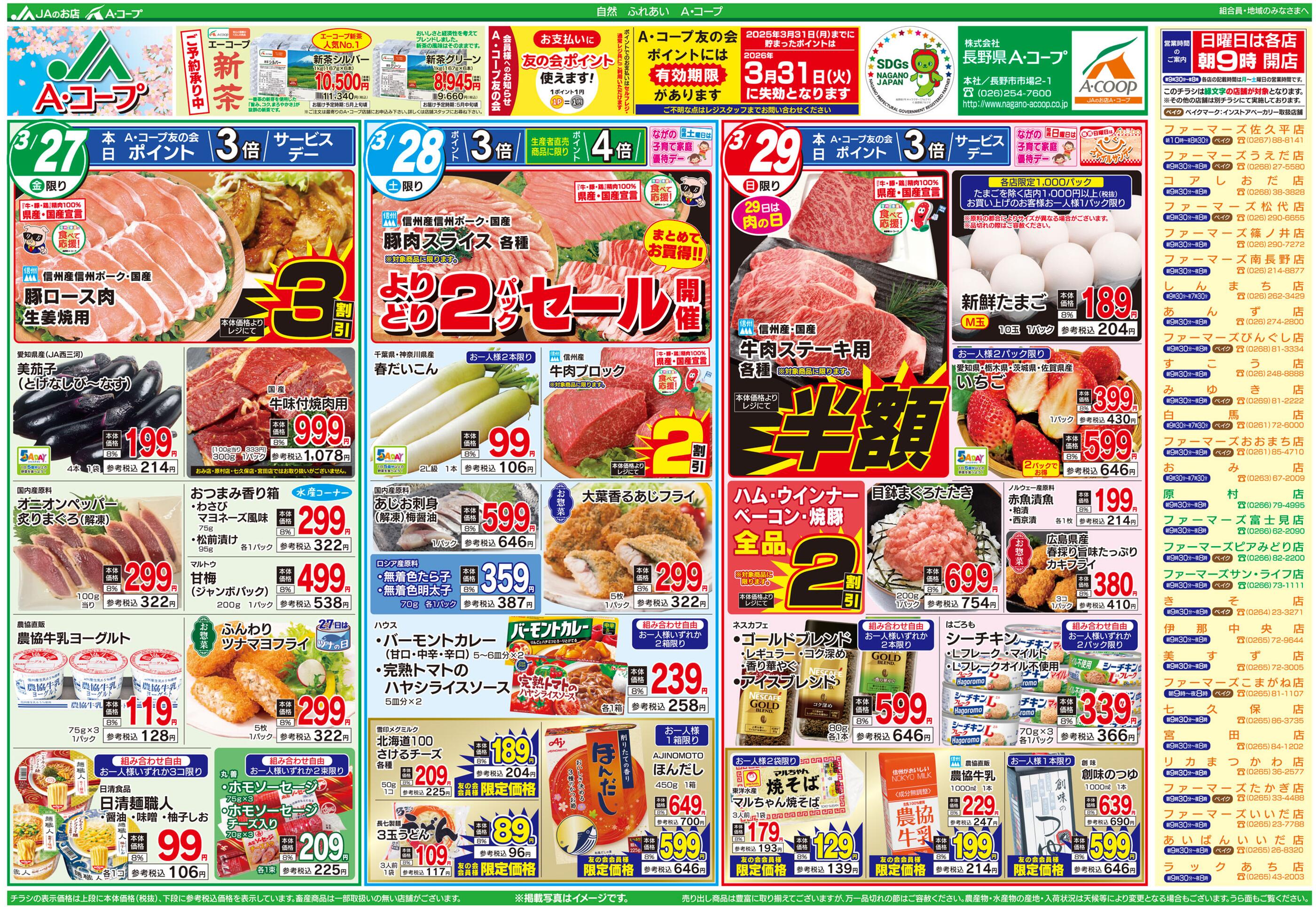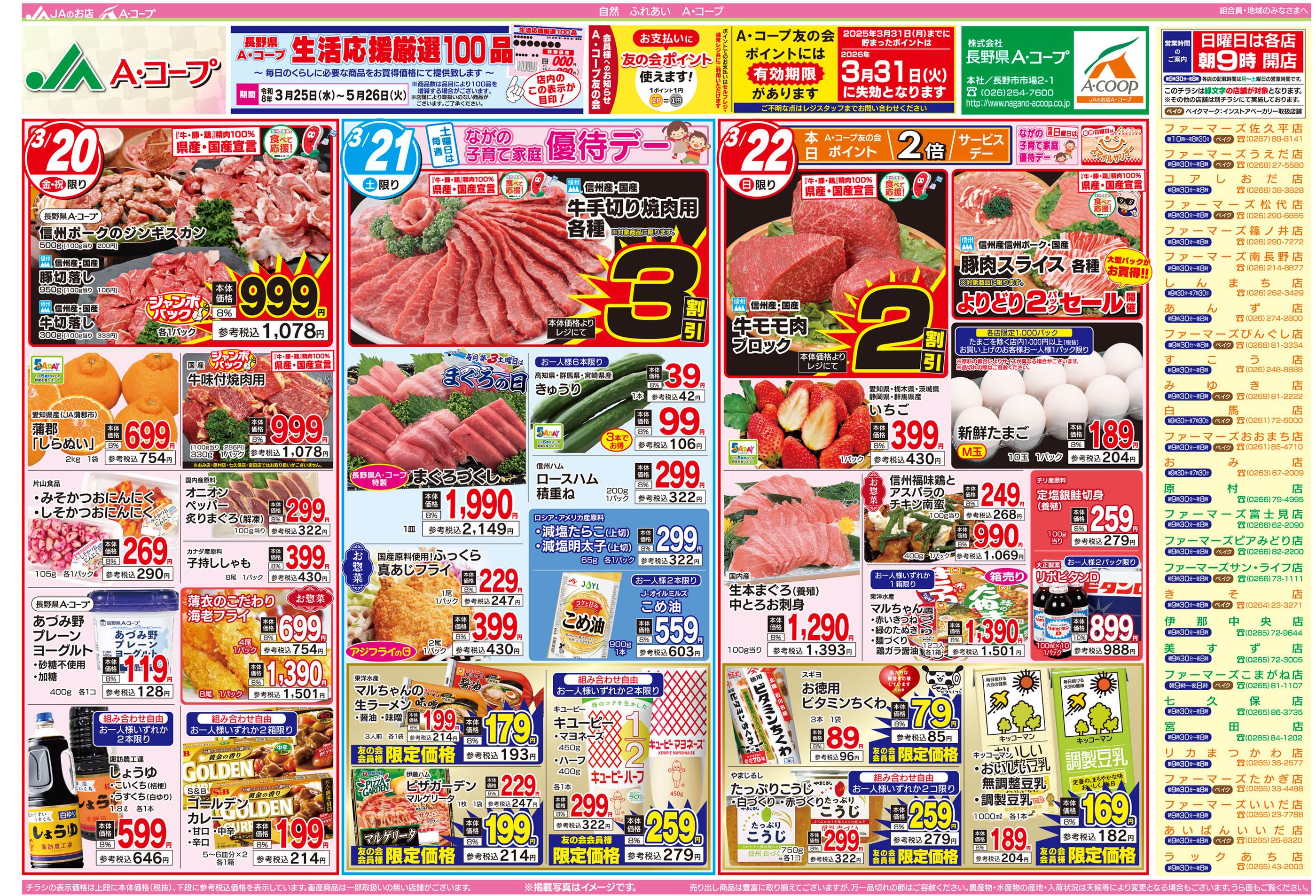 Aコープファーマーズピアみどり店今週のチラシ(2026年3月30日〜4月5日)