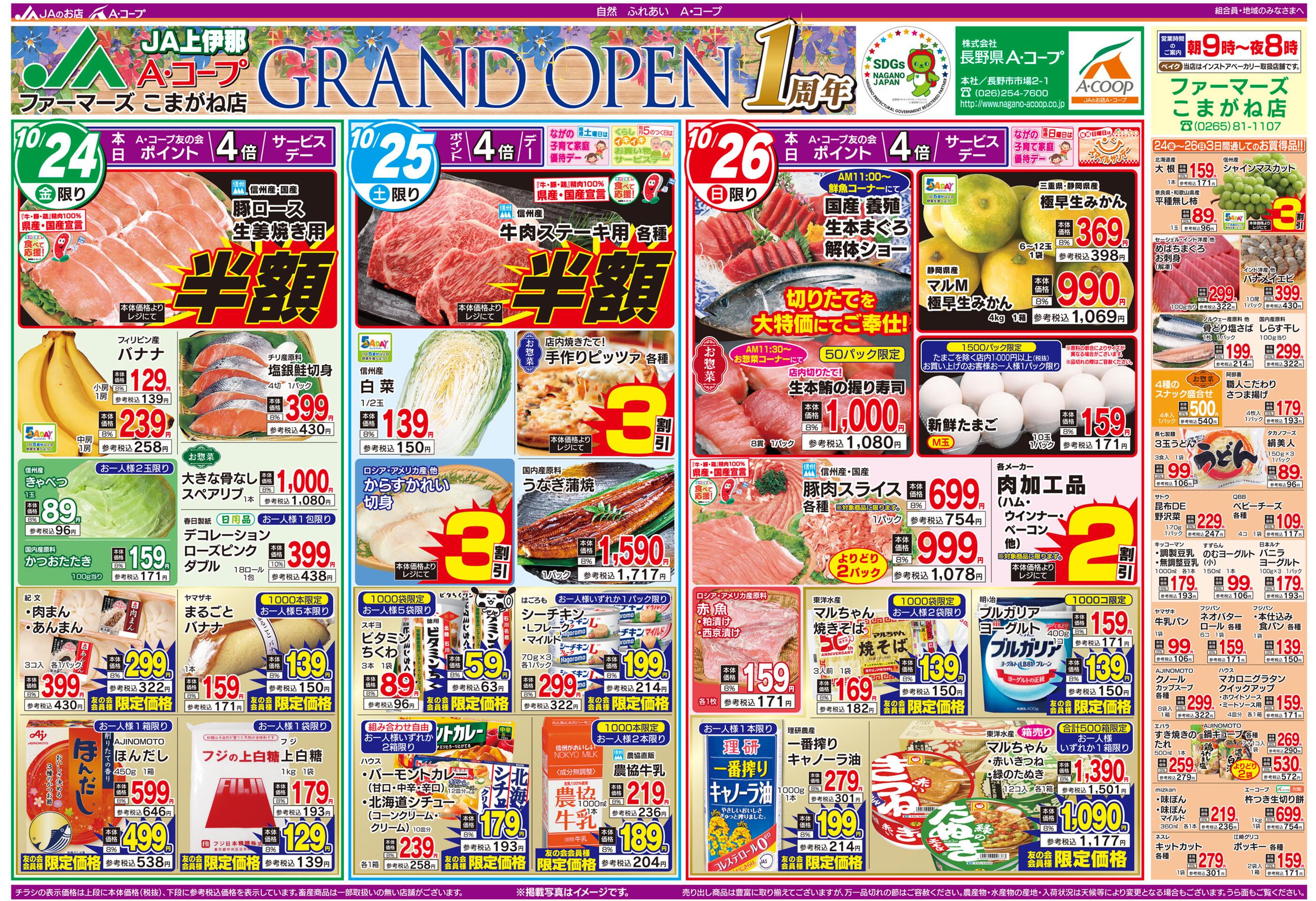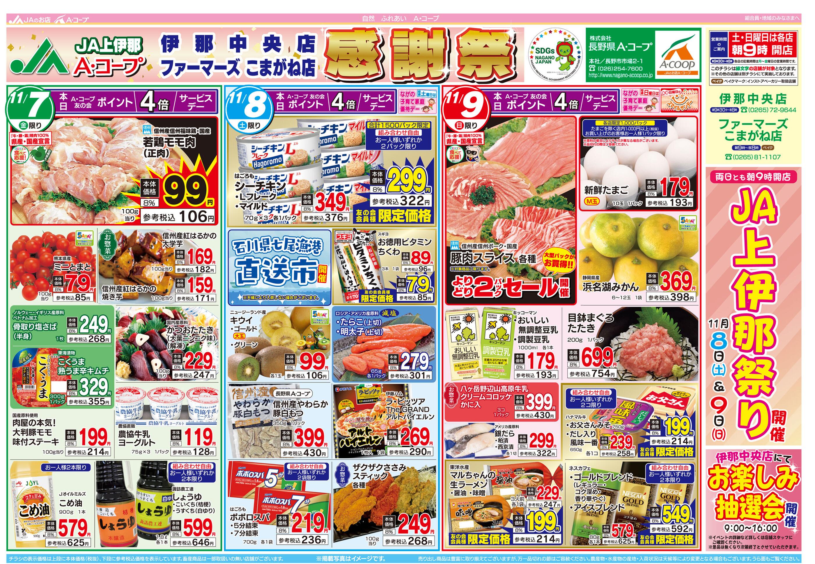 Aコープファーマーズこまがね店今週のチラシ(2025年11月3日〜11月9日)