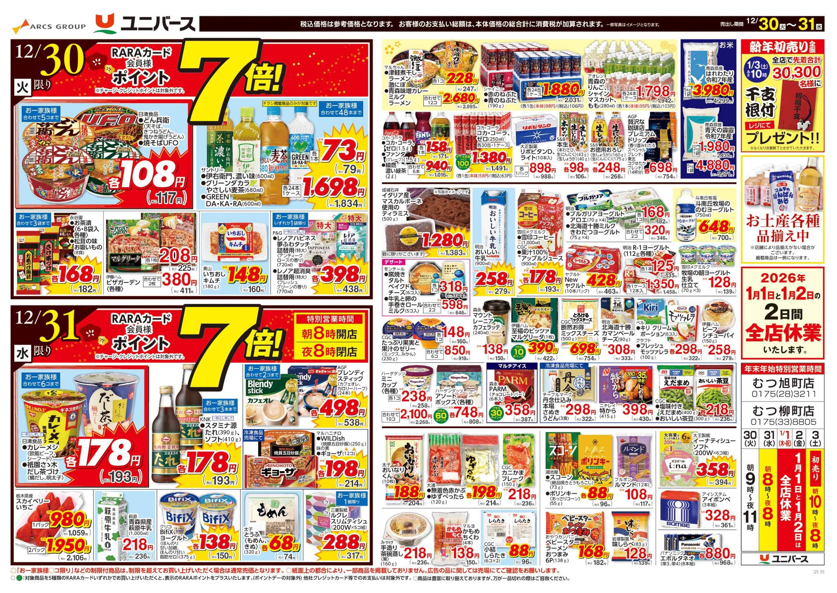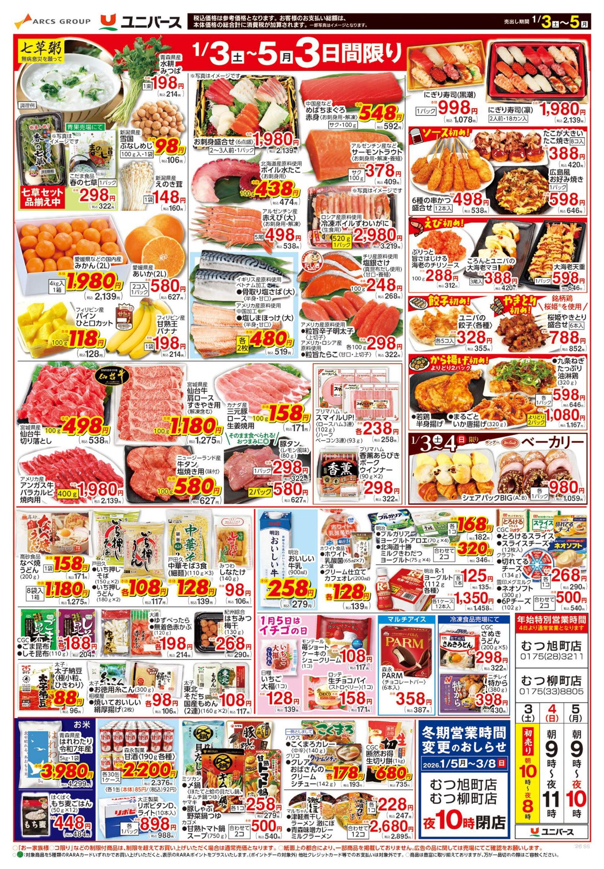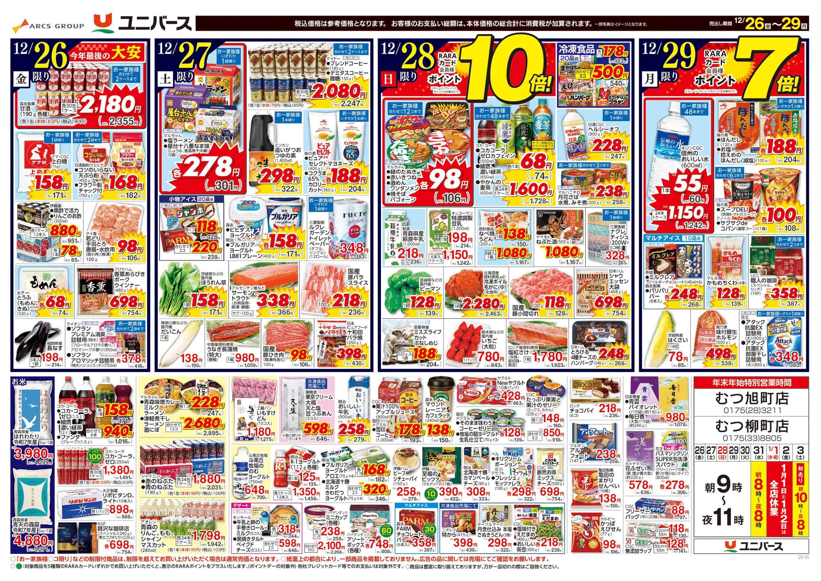 ユニバースむつ旭町店今週のチラシ(2025年12月29日〜1月4日)