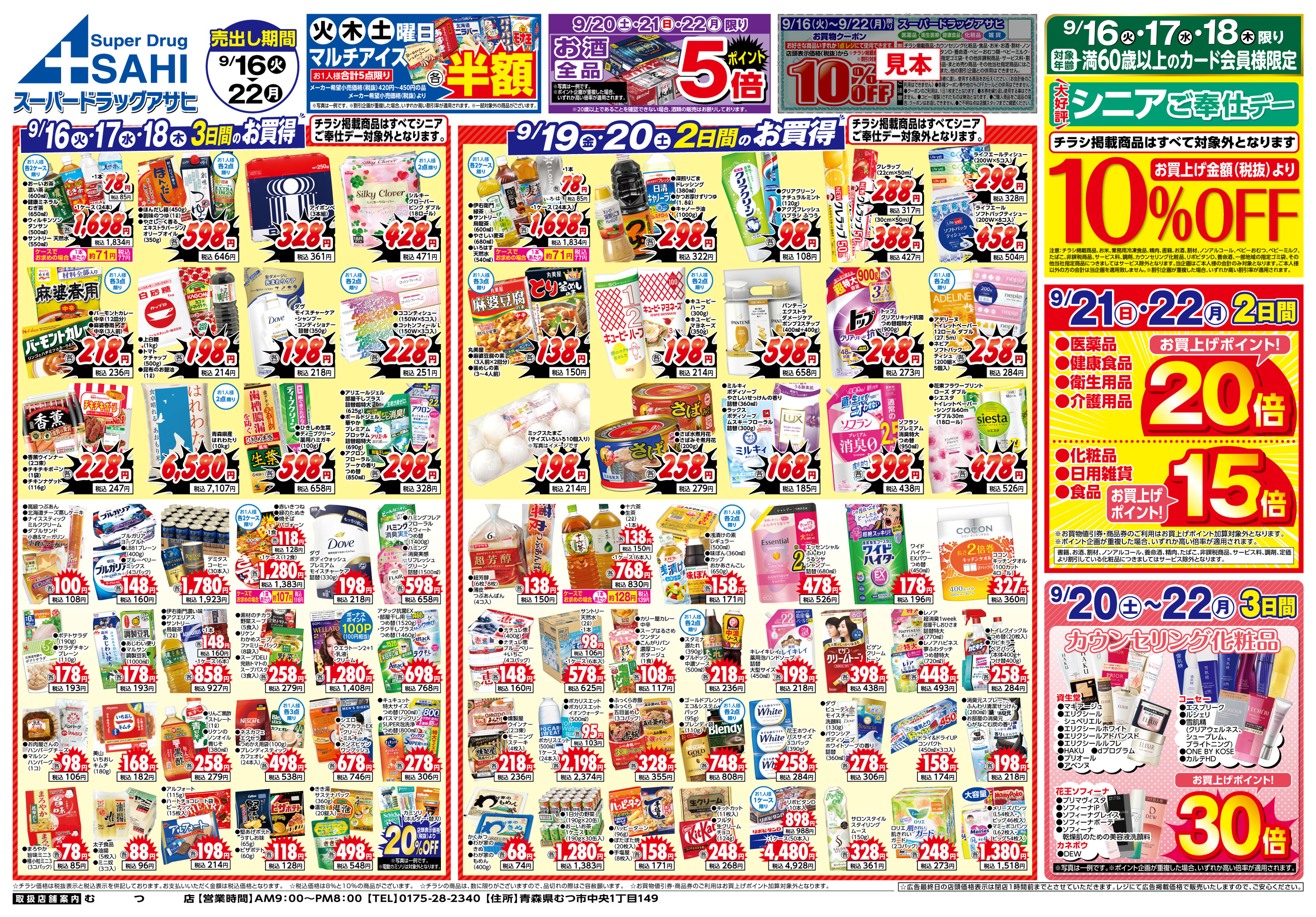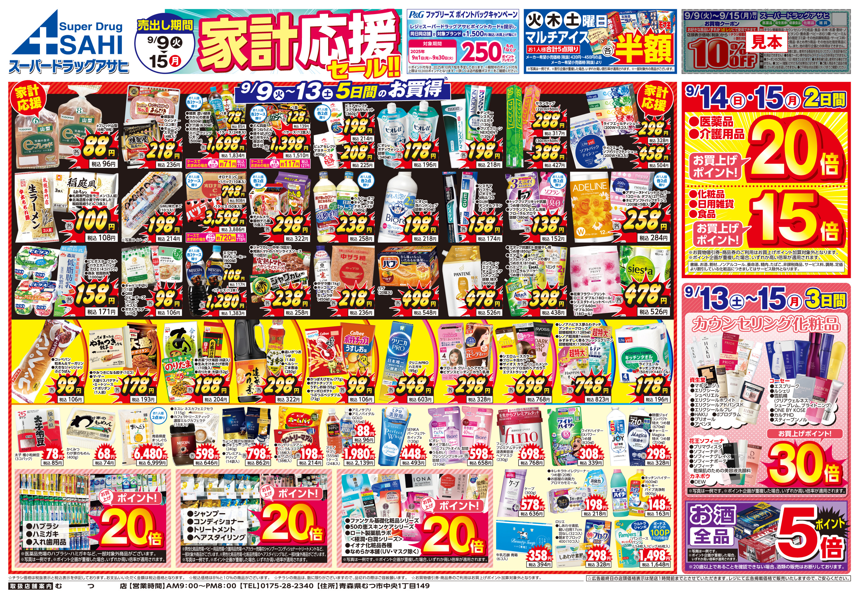 スーパードラッグアサヒむつ店今週のチラシ(2025年9月29日〜10月5日)