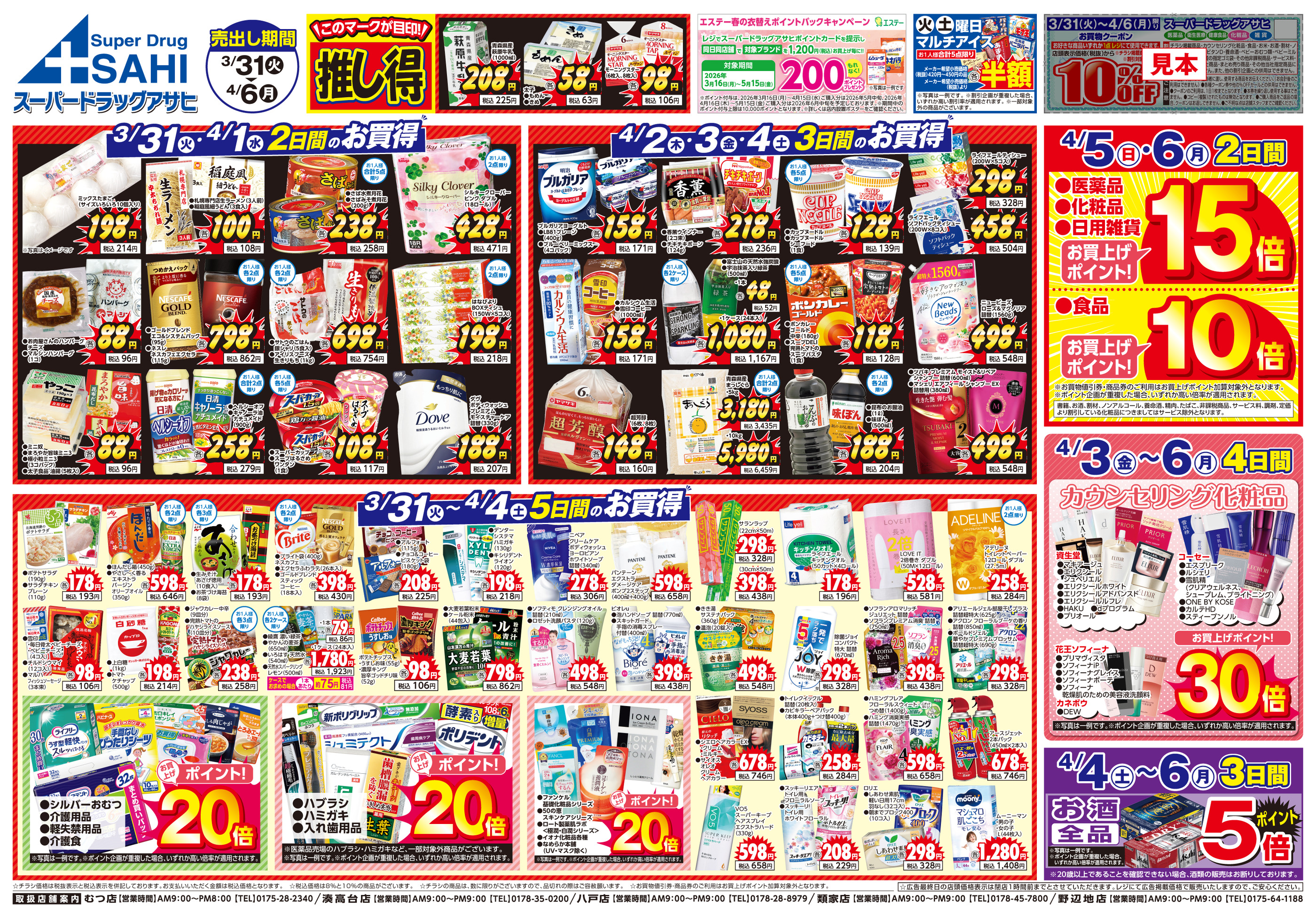 スーパードラッグアサヒむつ店今週のチラシ(2026年3月30日〜4月5日)