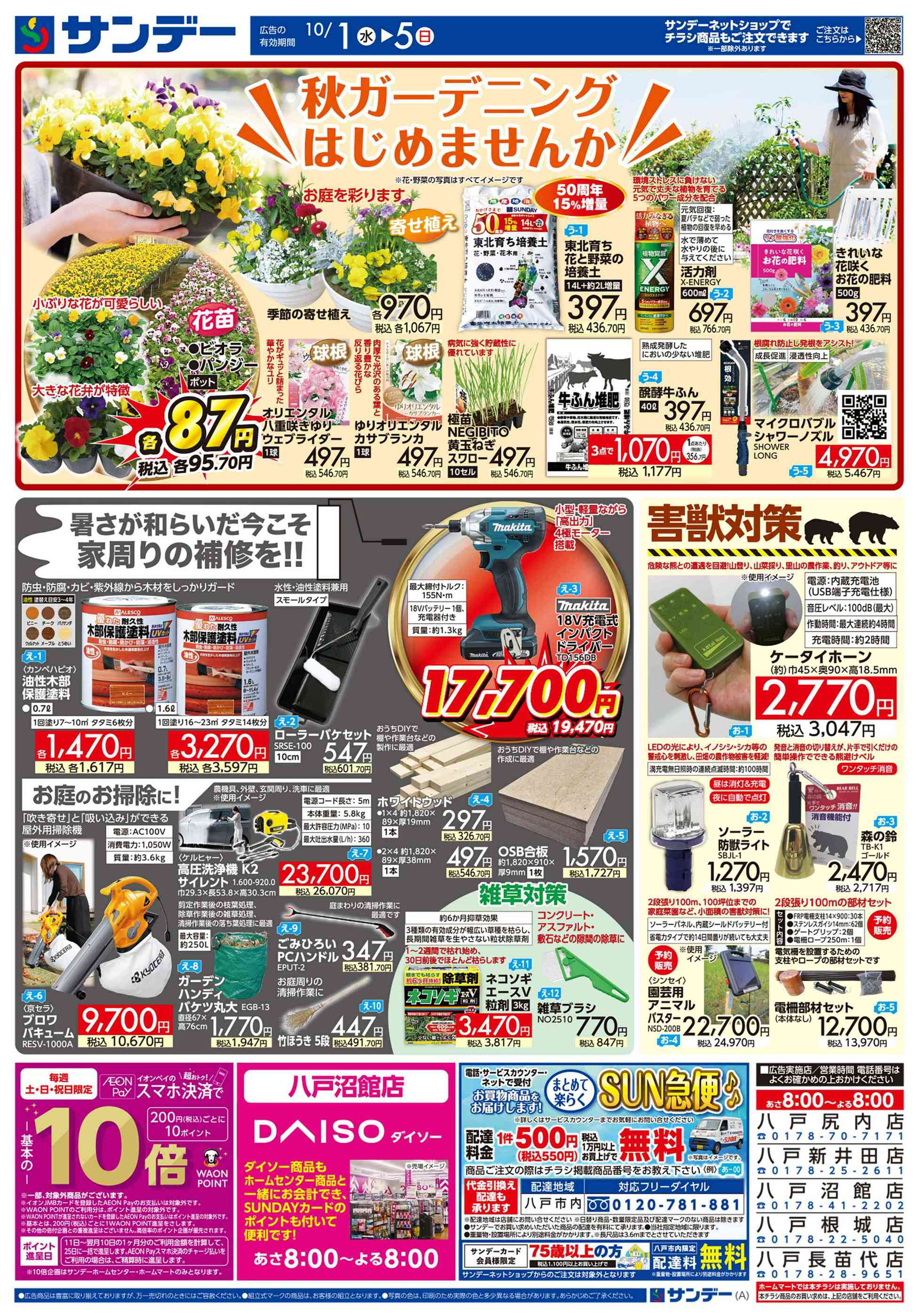 サンデー八戸長苗代店今週のチラシ(2025年9月29日〜10月5日)