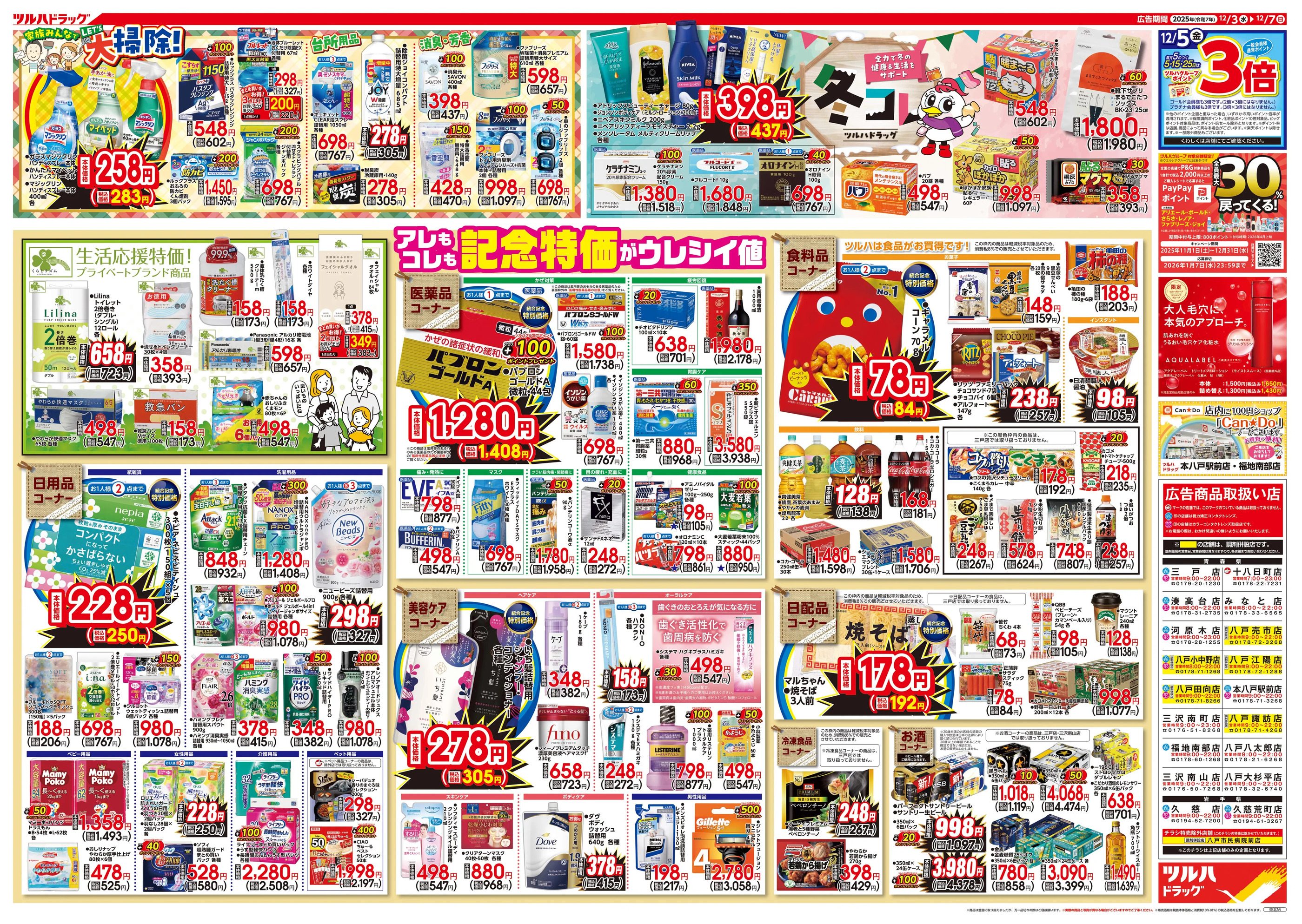 - 12/3号特大チラシ「日本最大ドラッグストアチェーン誕生記念セール」12月3日~12月7日 (2枚)