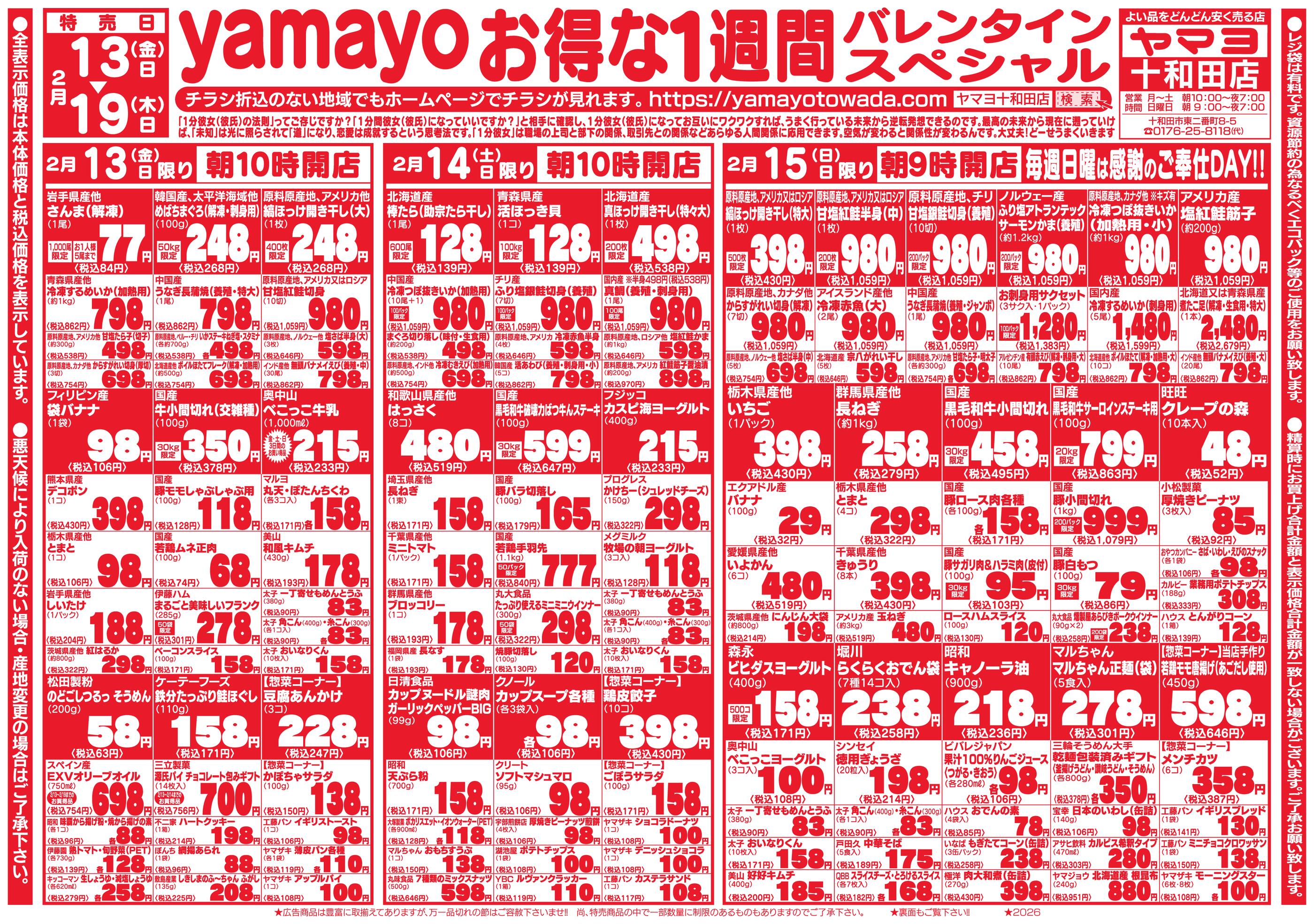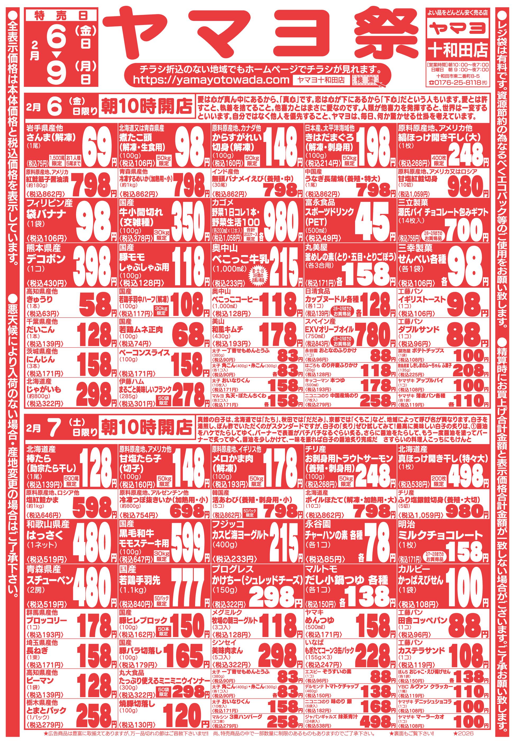 ヤマヨ十和田店今週のチラシ(2026年2月9日〜2月15日)