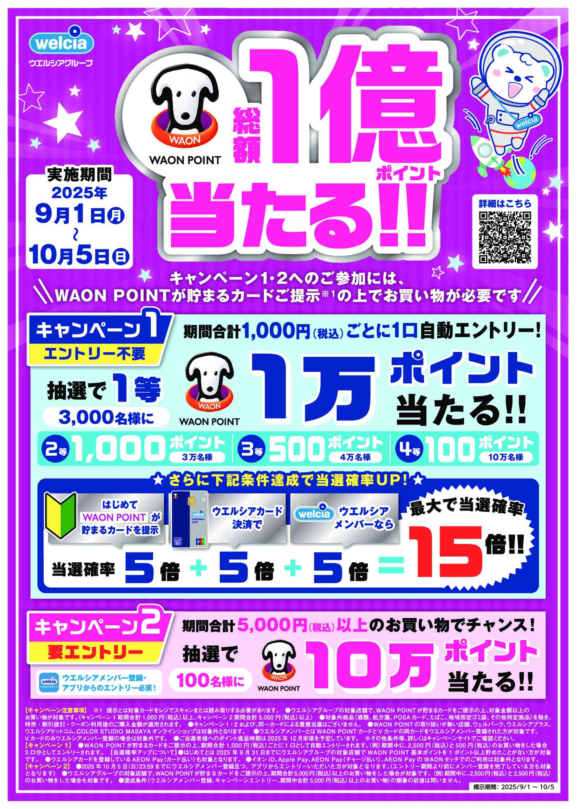 - 2025年9月2日〜12月31日までウエルシアメンバーならダブルで貯まる! (1枚)