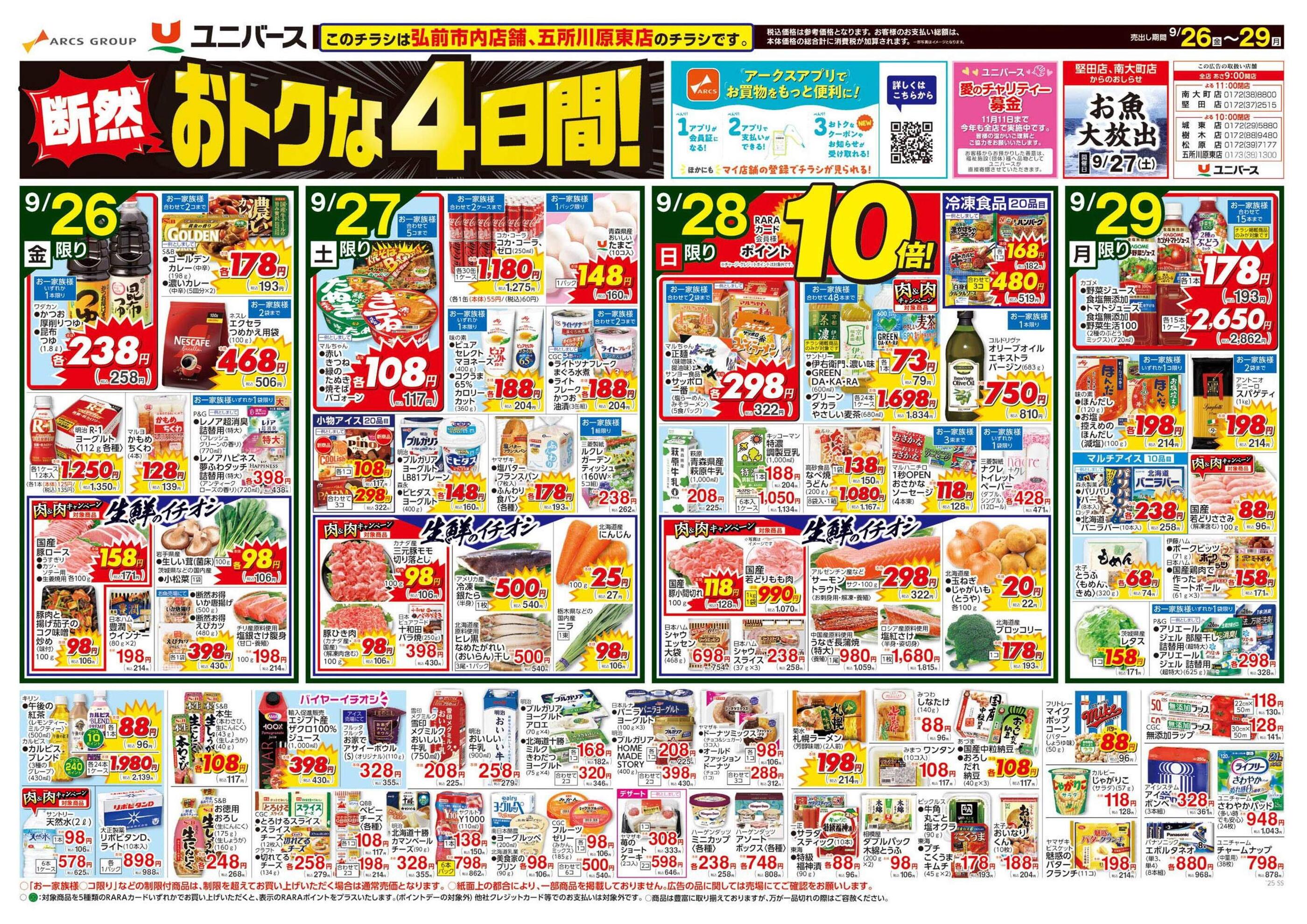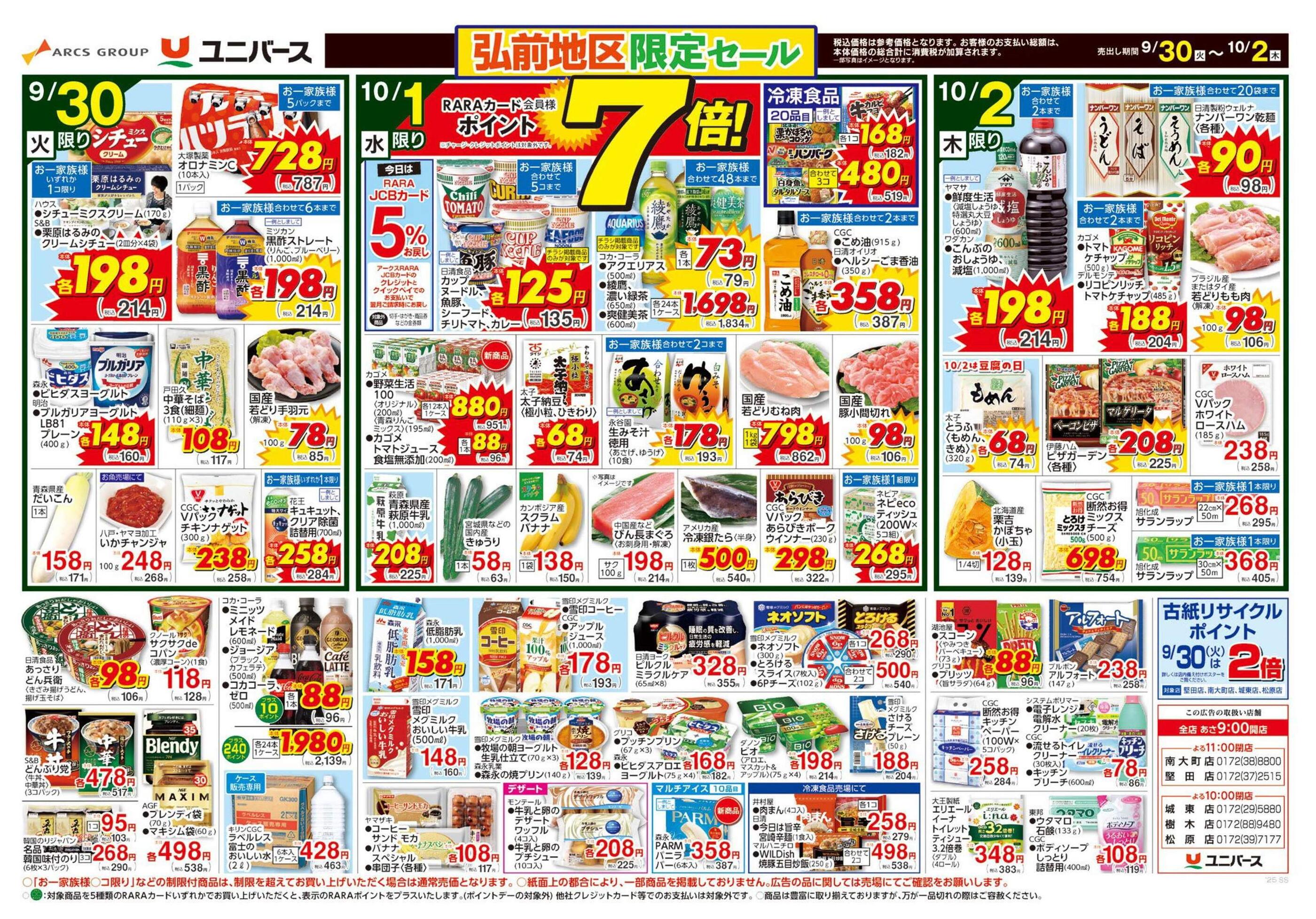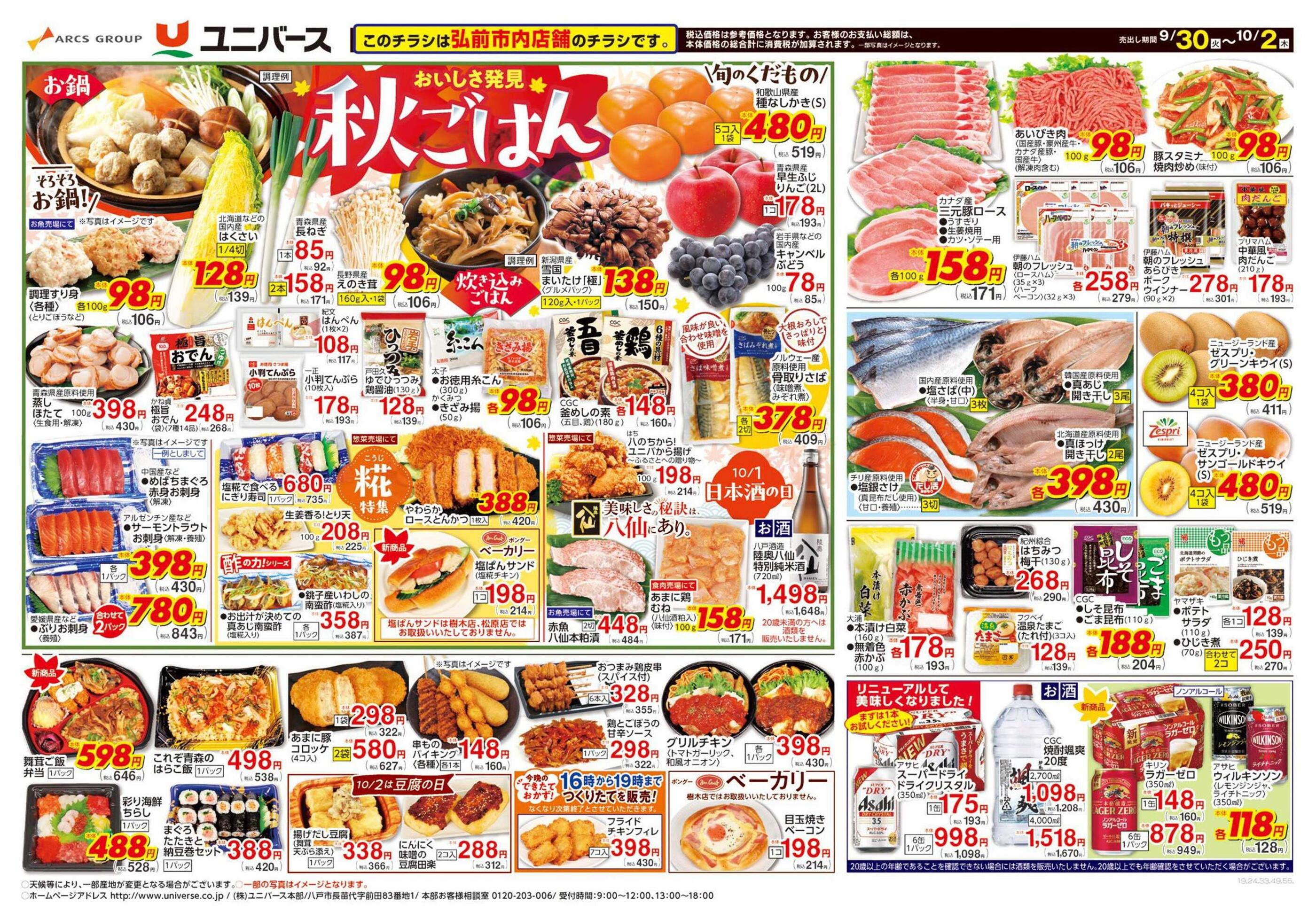 ユニバース南大町店今週のチラシ(2025年9月29日〜10月5日)