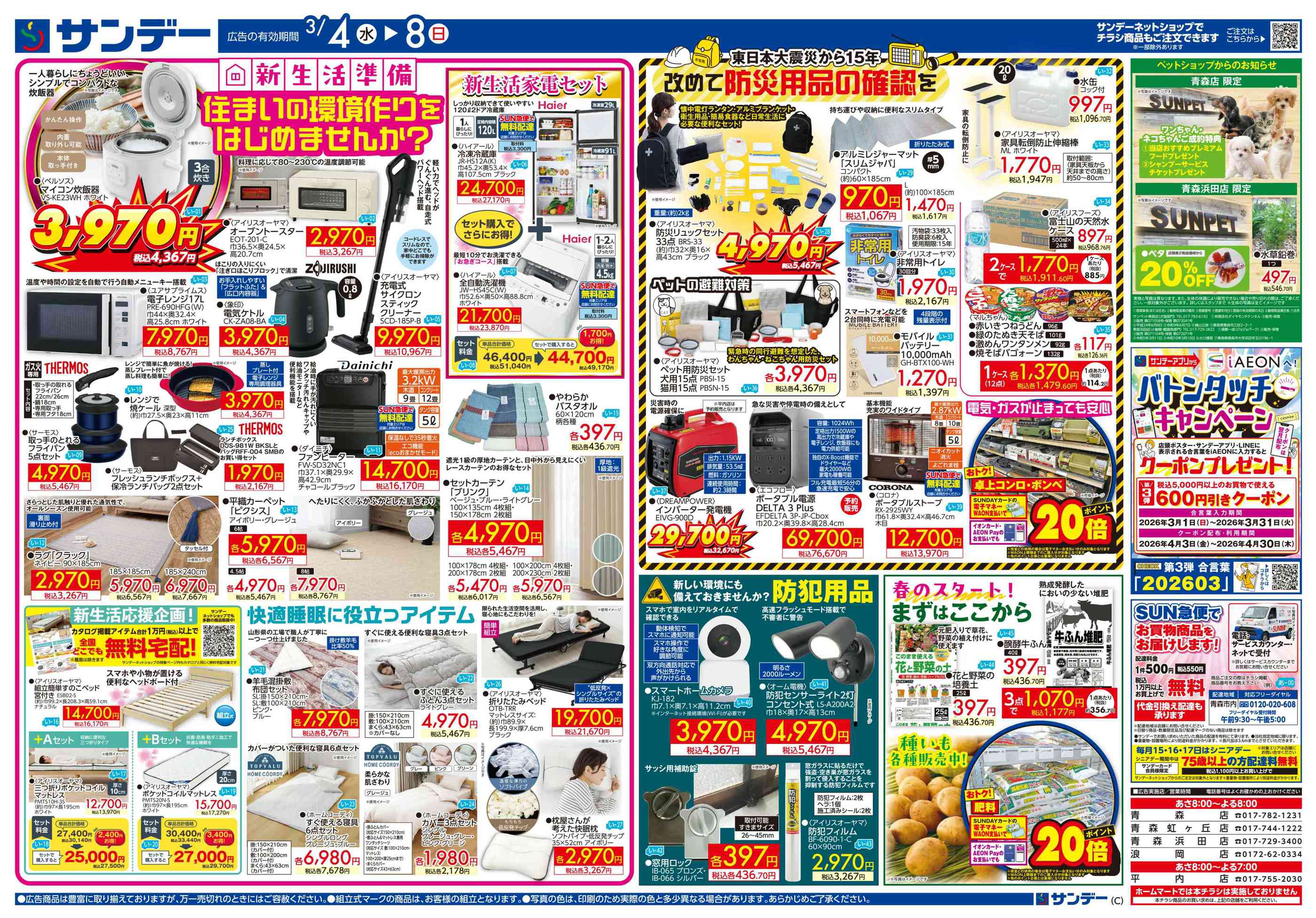 サンデー平内店今週のチラシ(2026年3月9日〜3月15日)