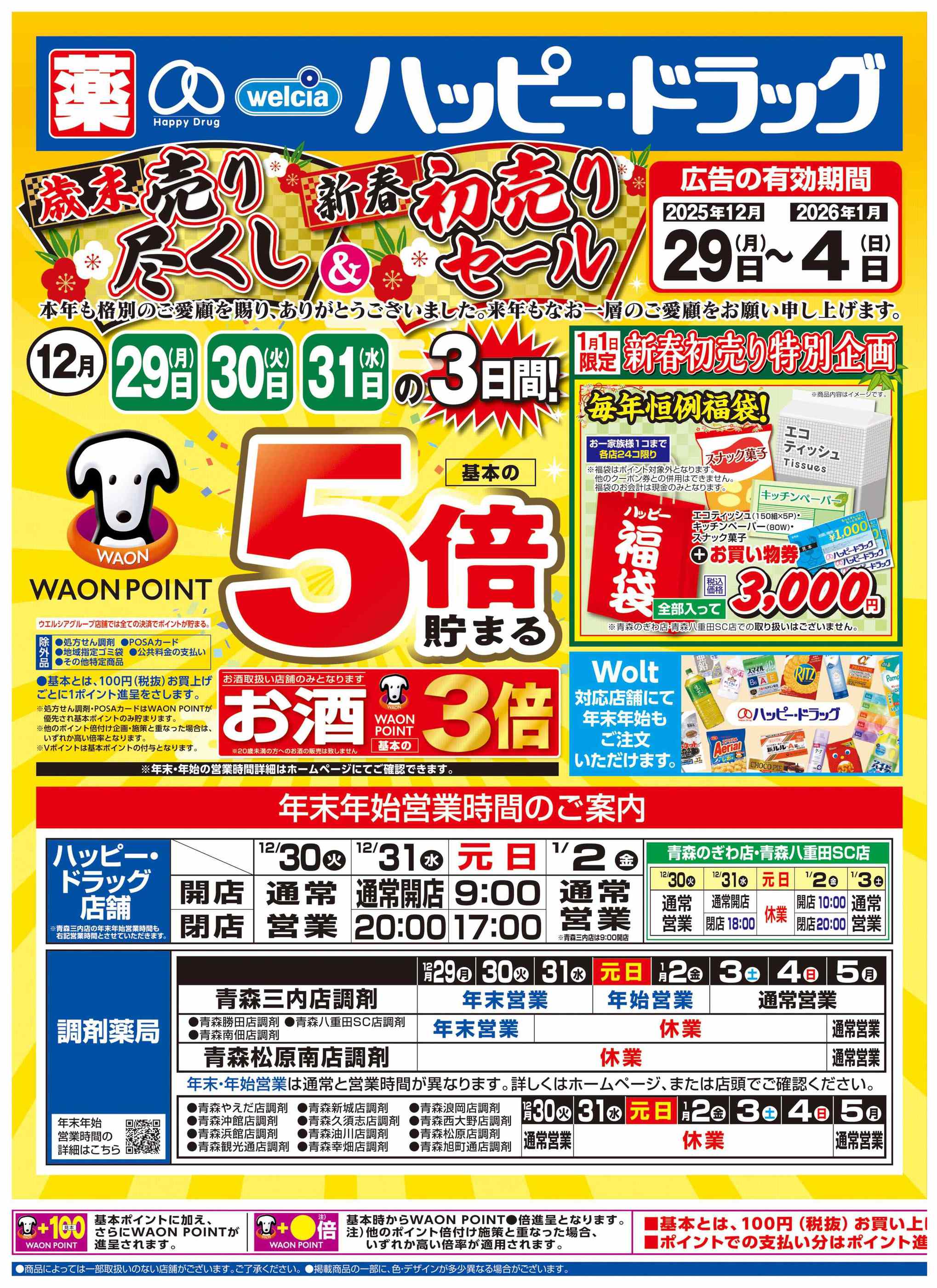 ハッピー・ドラッグ青森浪岡店今週のチラシ(2025年12月29日〜1月4日)