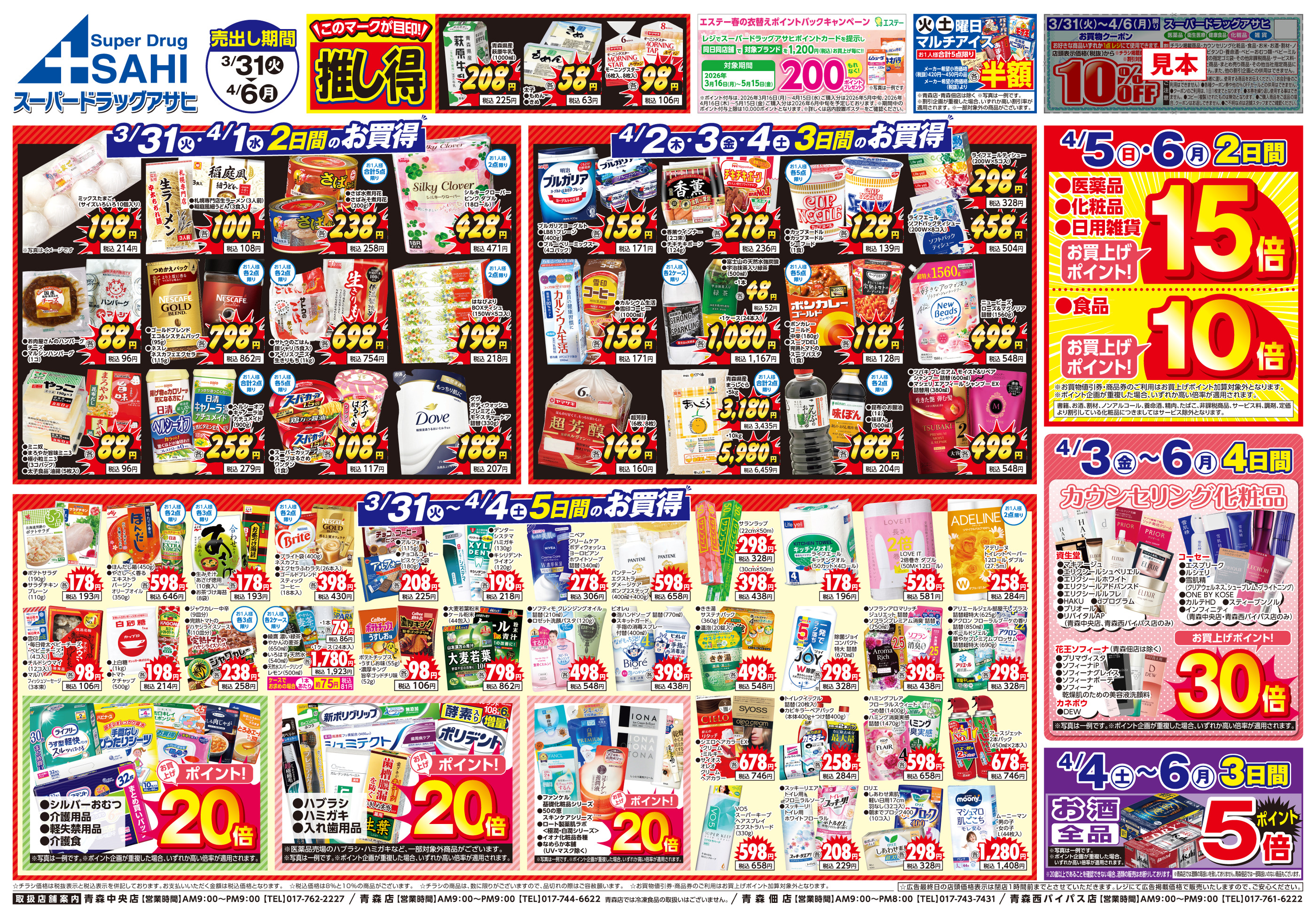 スーパードラッグアサヒ青森中央店今週のチラシ(2026年3月30日〜4月5日)