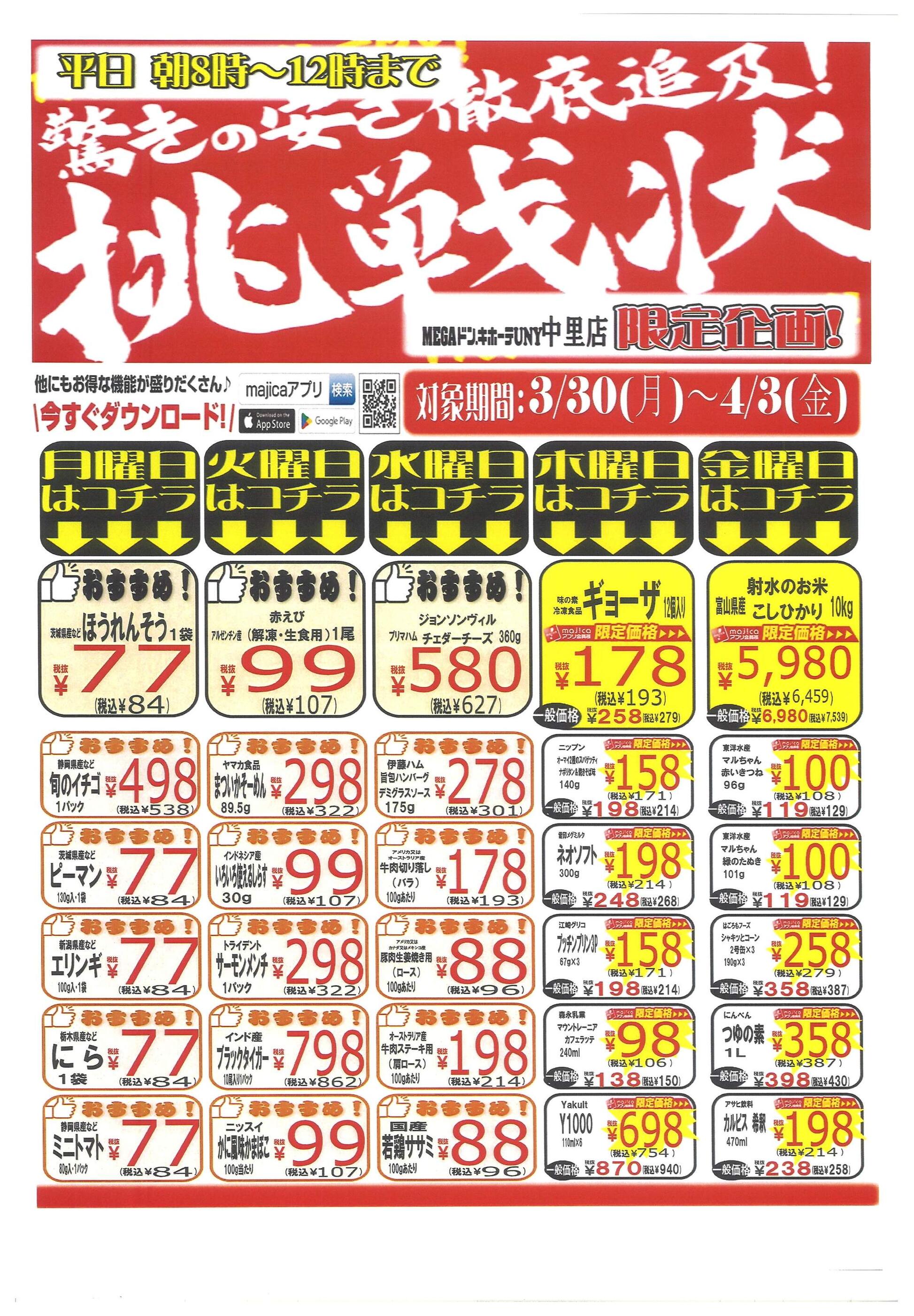 MEGAドン・キホーテUNY中里店今週のチラシ(2026年3月30日〜4月5日)