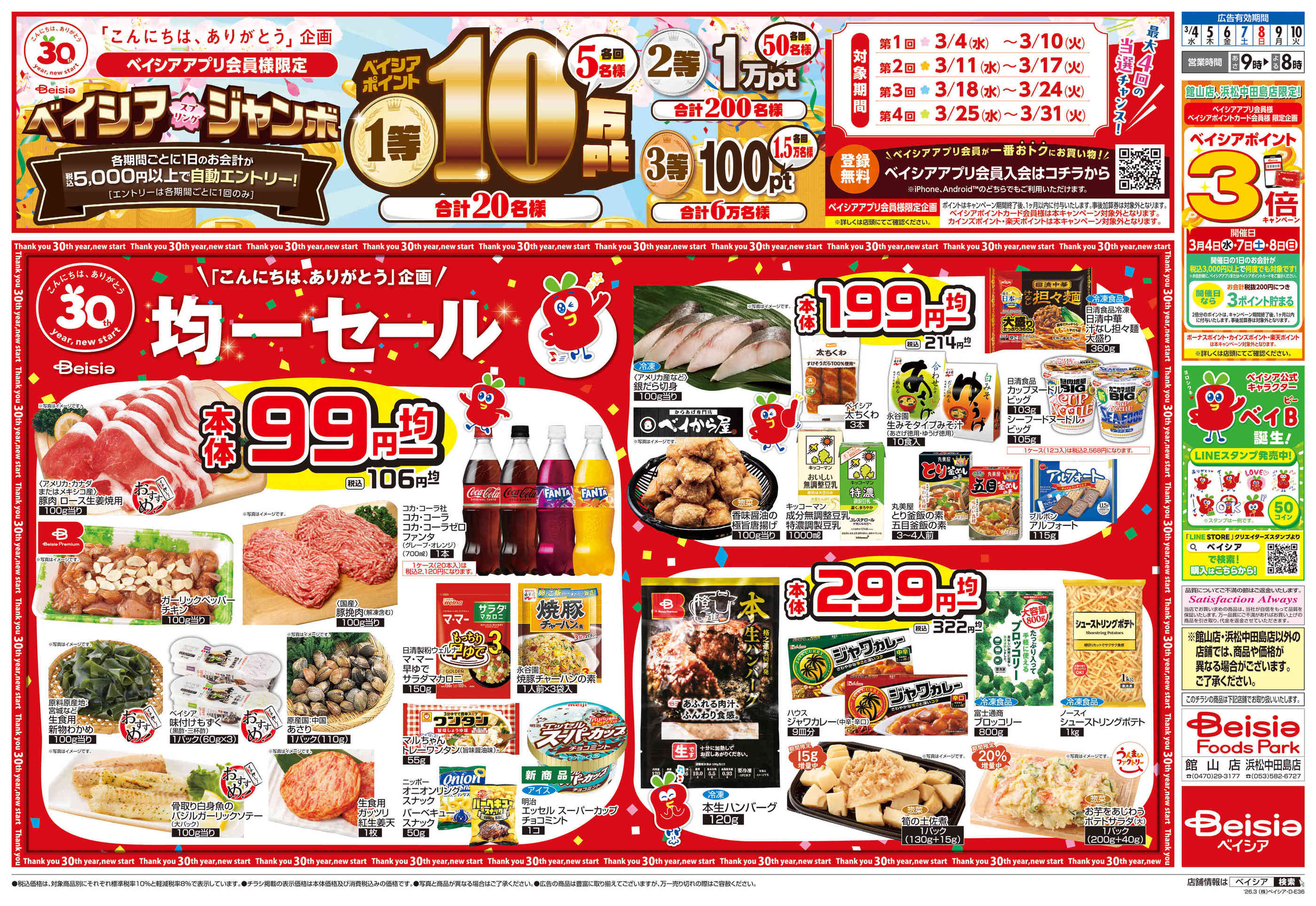 ベイシアFoods Park浜松中田島店今週のチラシ(2026年3月16日〜3月22日)