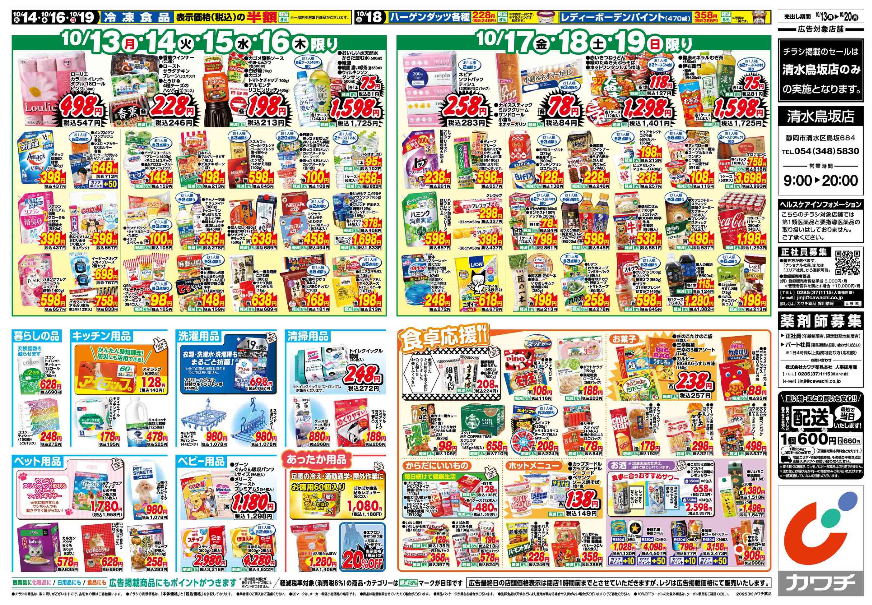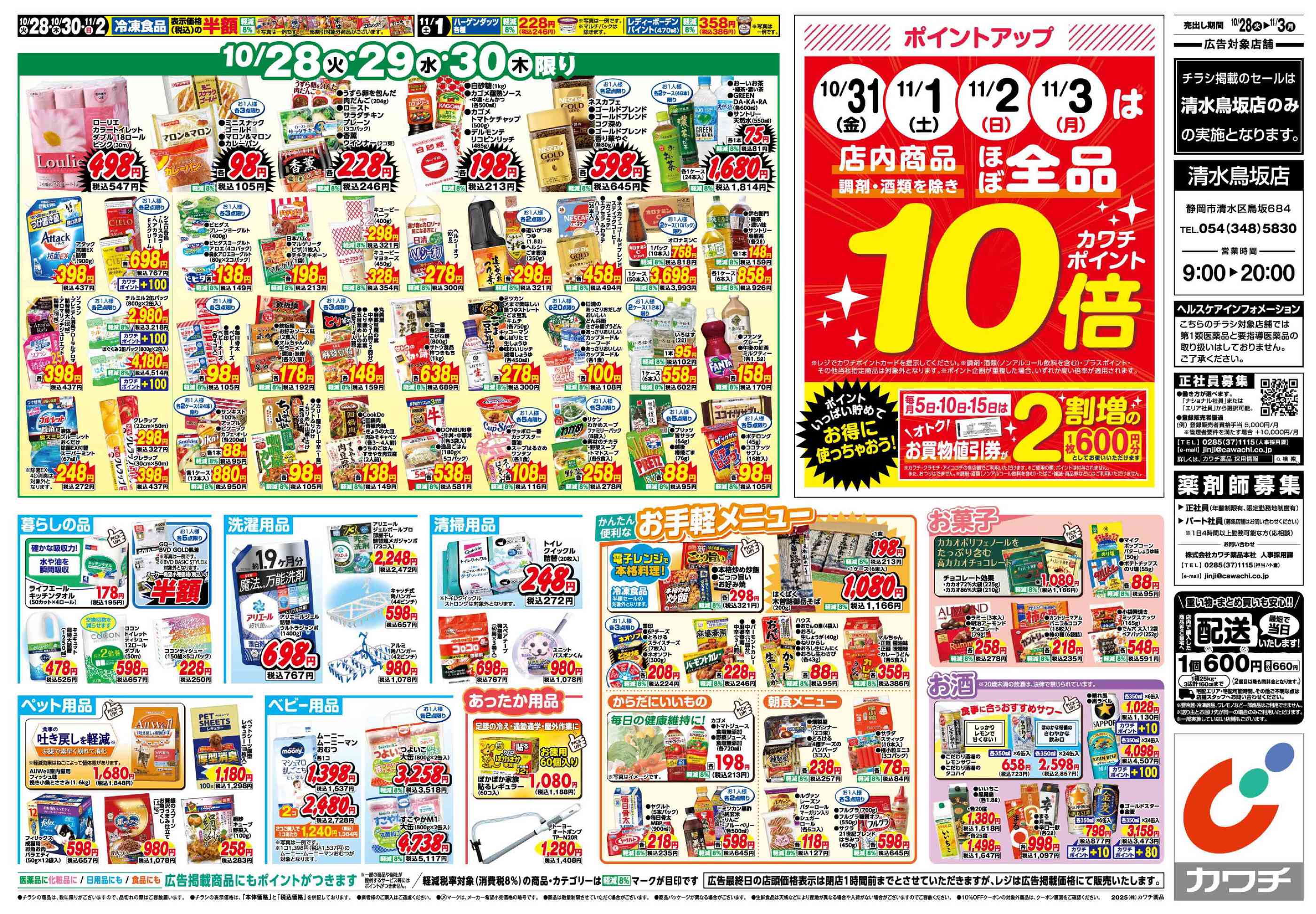 カワチ薬品清水鳥坂店今週のチラシ(2025年10月27日〜11月2日)