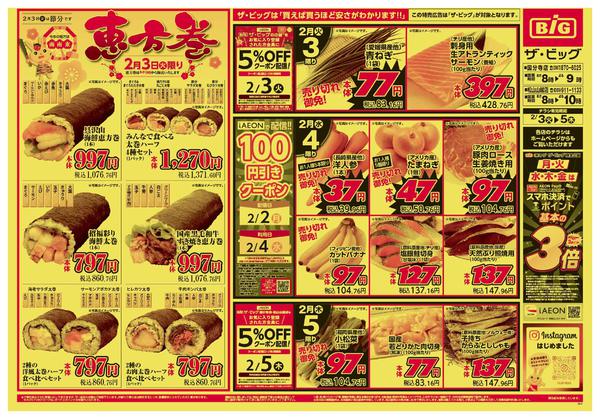 特売やセール情報など最新のチラシを掲載中。(2種類、5枚のチラシを掲載しています)