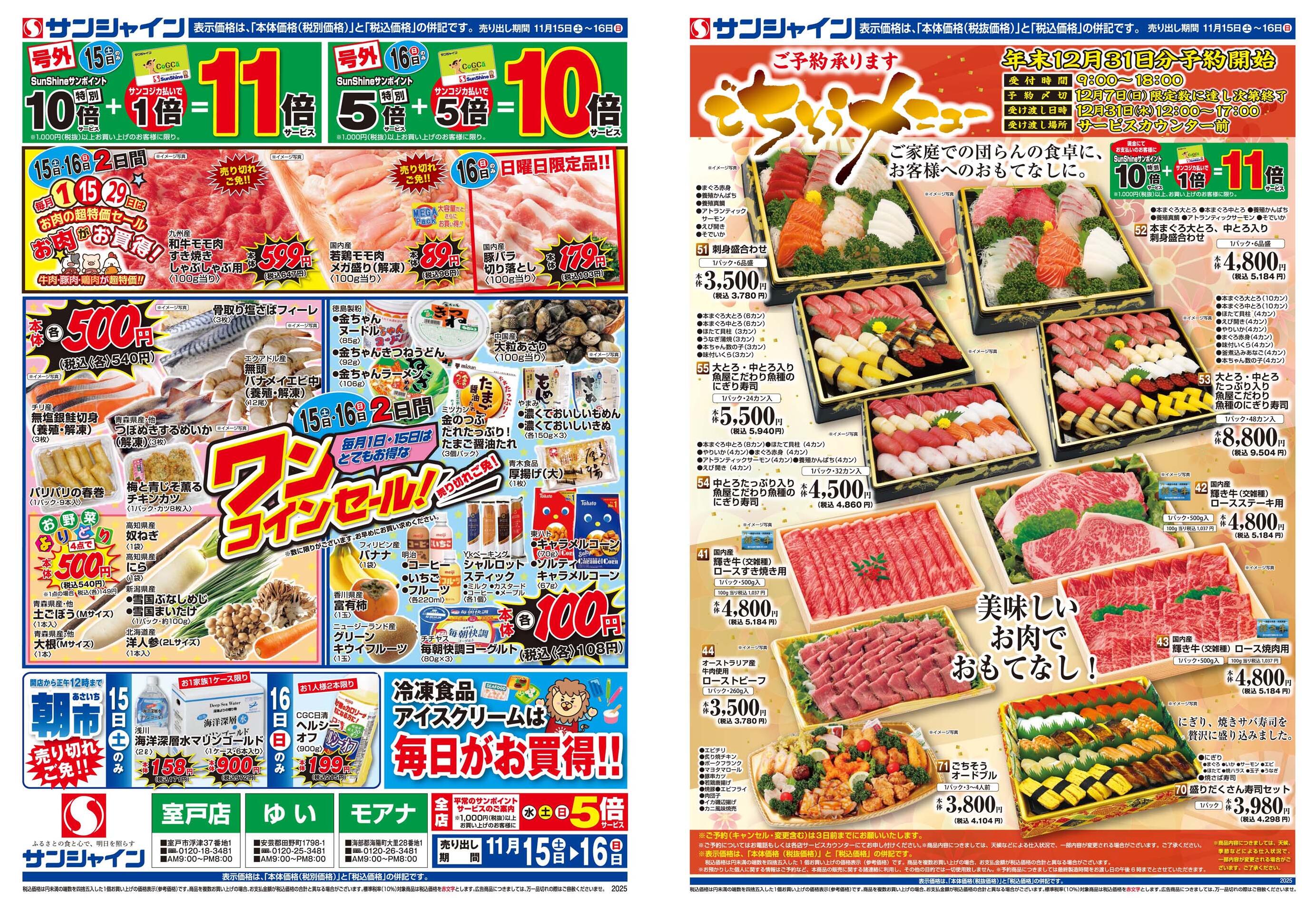サンシャインゆい店今週のチラシ(2025年11月10日〜11月16日)