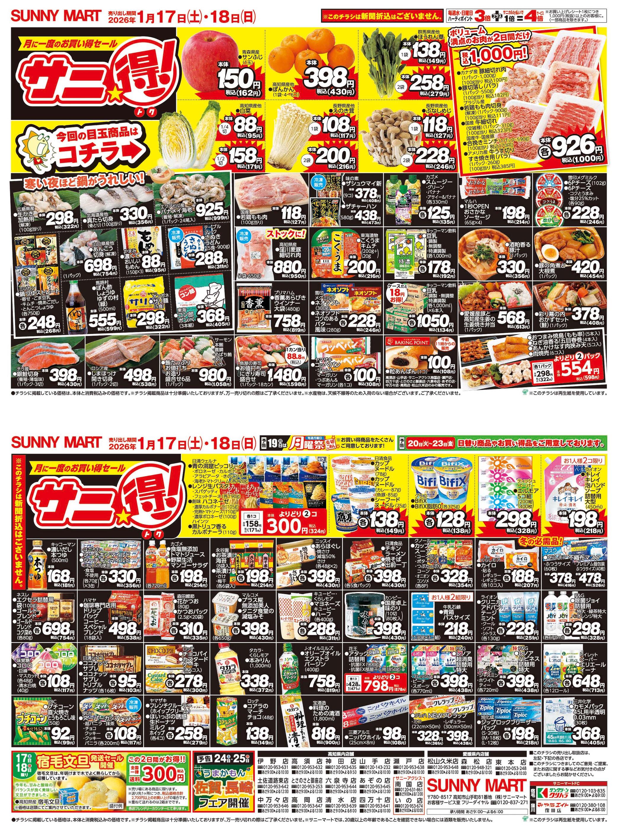 サニーマート六泉寺店今週のチラシ(2026年1月19日〜1月25日)