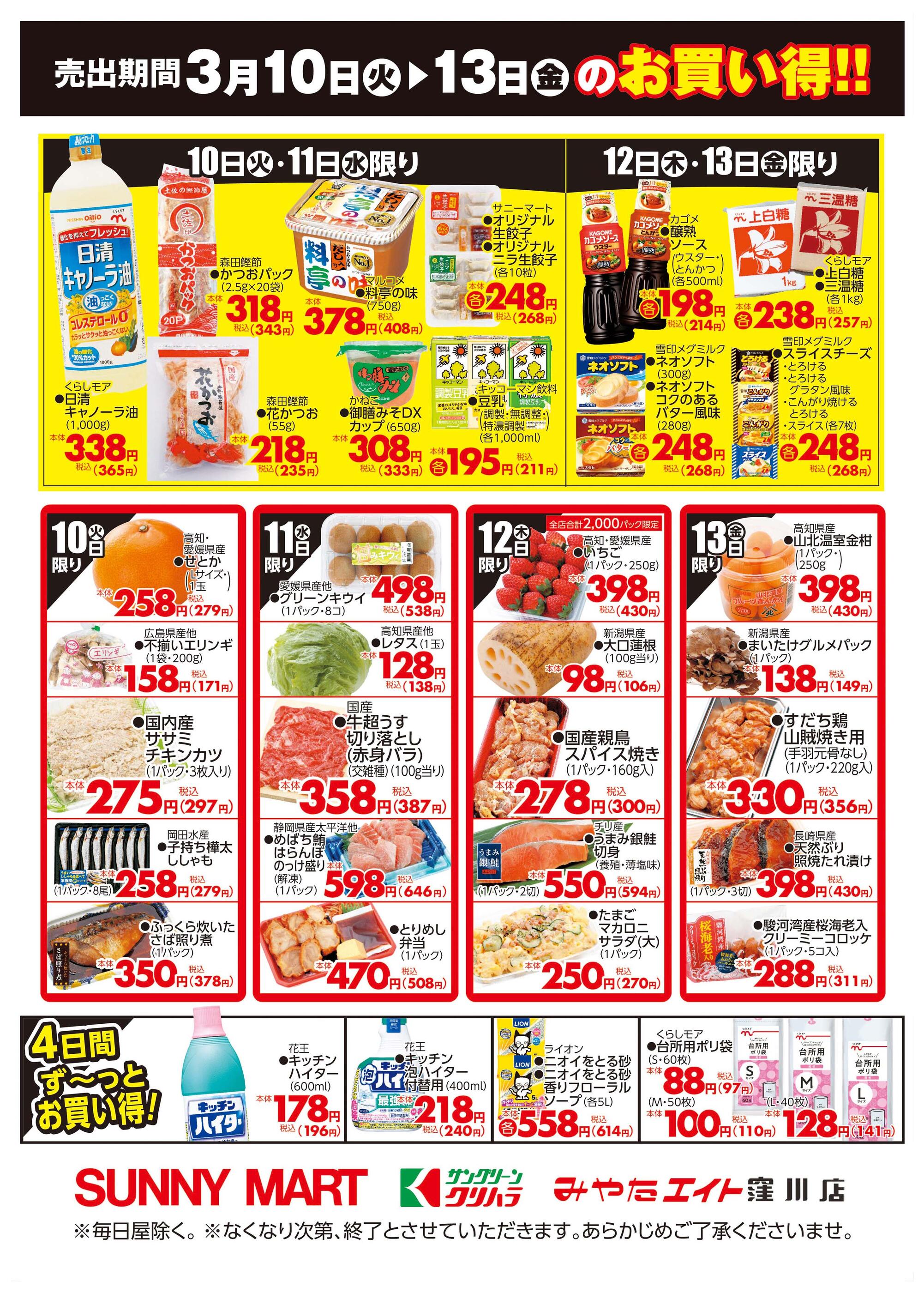 サニーマート六泉寺店今週のチラシ(2026年3月9日〜3月15日)