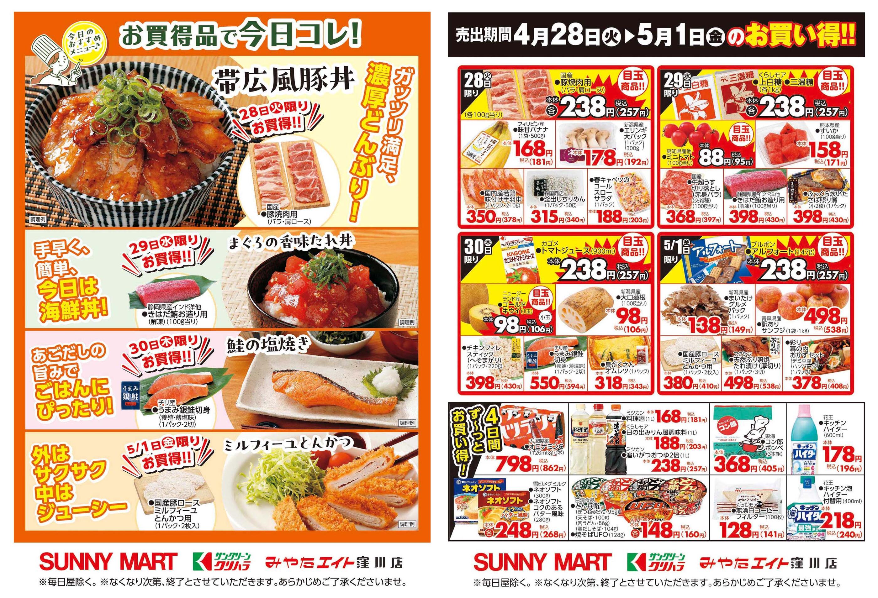 サニーマート六泉寺店今週のチラシ(2026年4月27日〜5月3日)