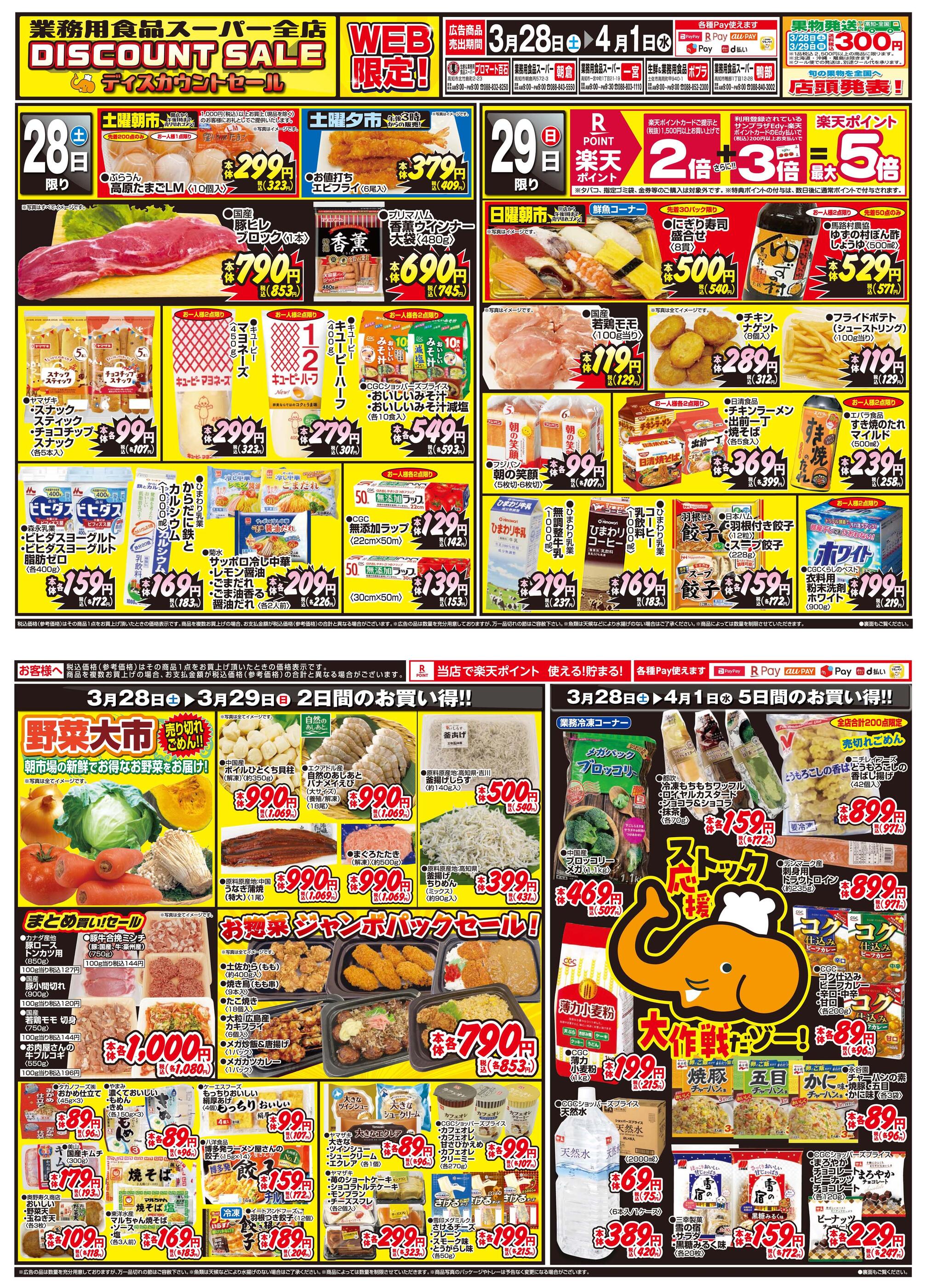 業務用食品スーパー 鴨部店今週のチラシ(2026年3月30日〜4月5日)