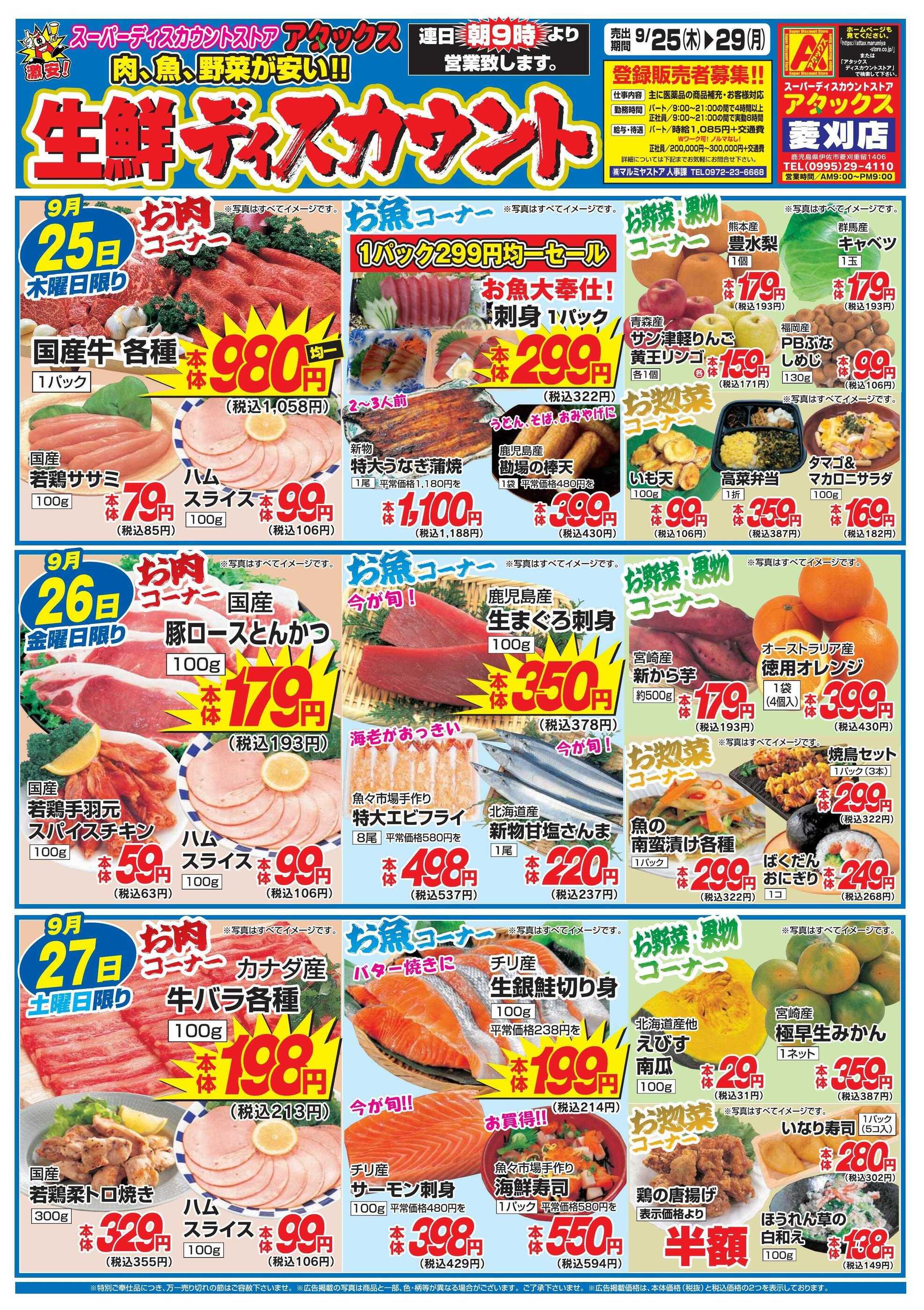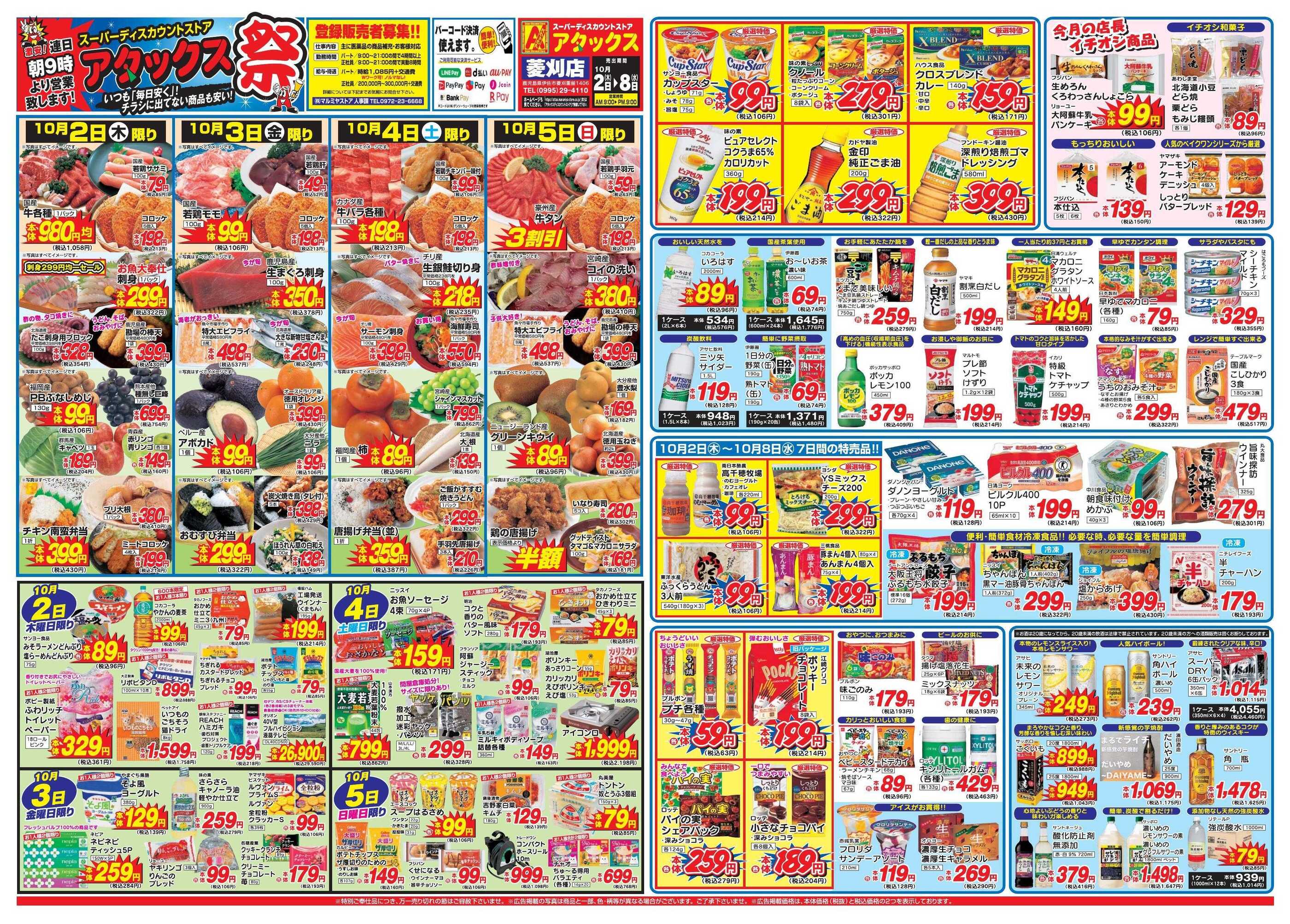 アタックス菱刈店今週のチラシ(2025年9月29日〜10月5日)