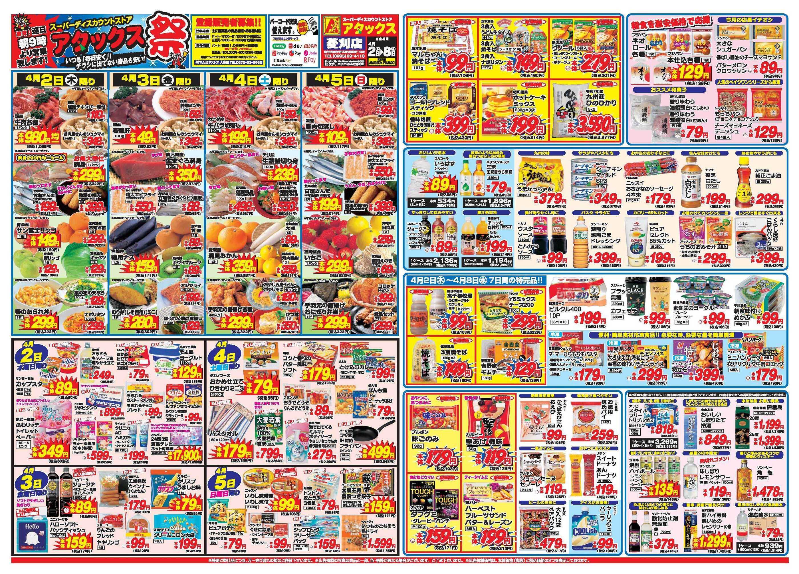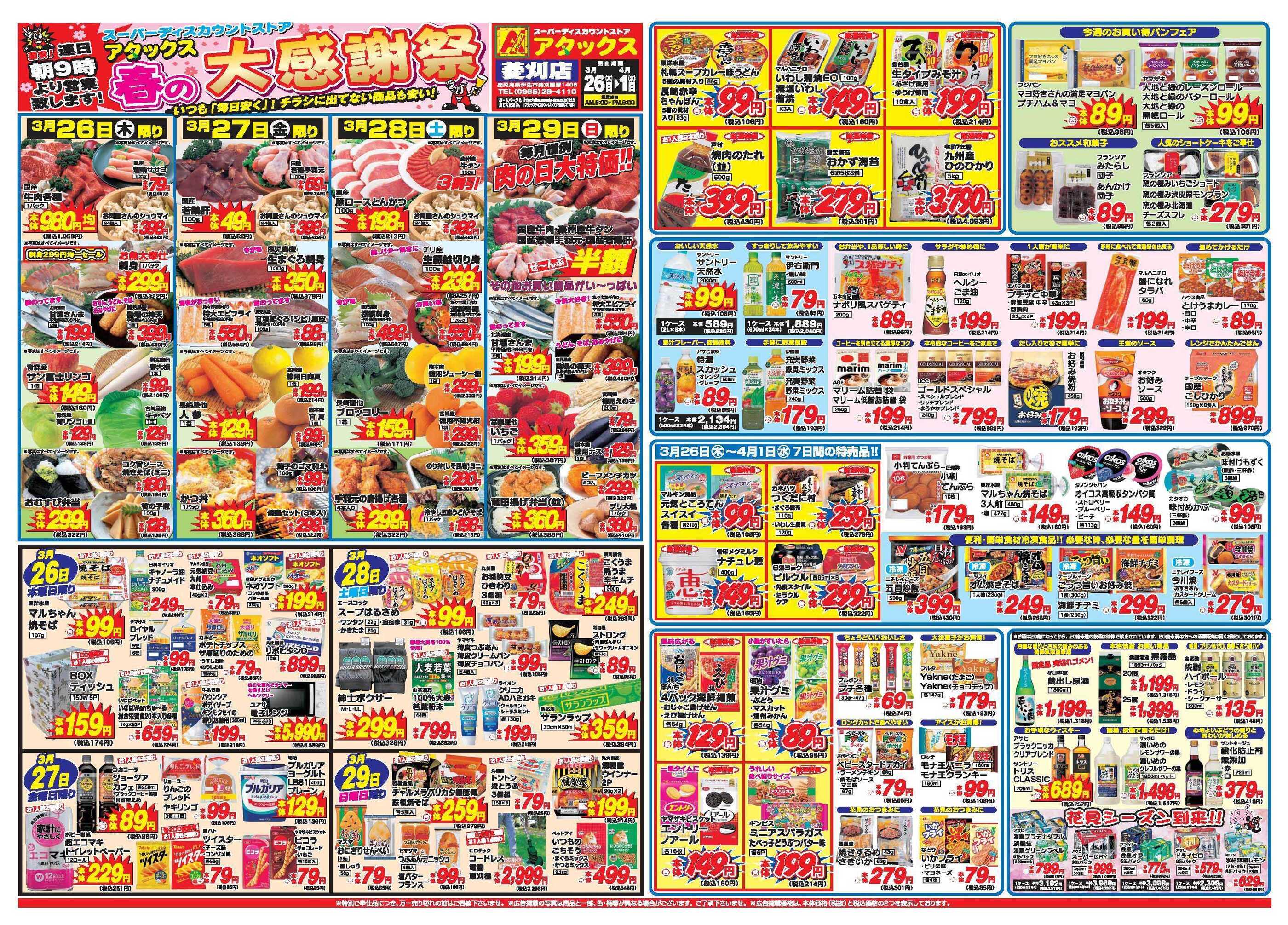 アタックス菱刈店今週のチラシ(2026年3月30日〜4月5日)