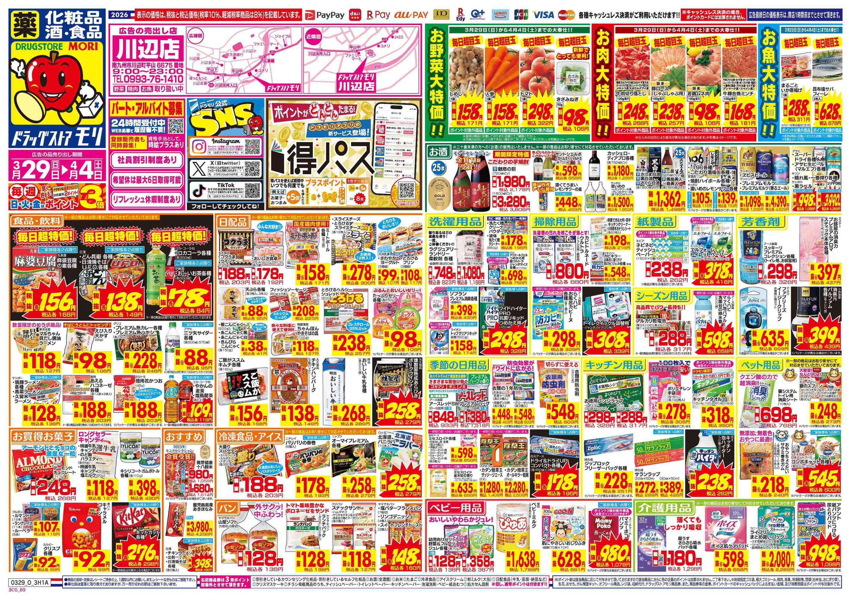 ドラッグストアモリ川辺店今週のチラシ(2026年3月30日〜4月5日)