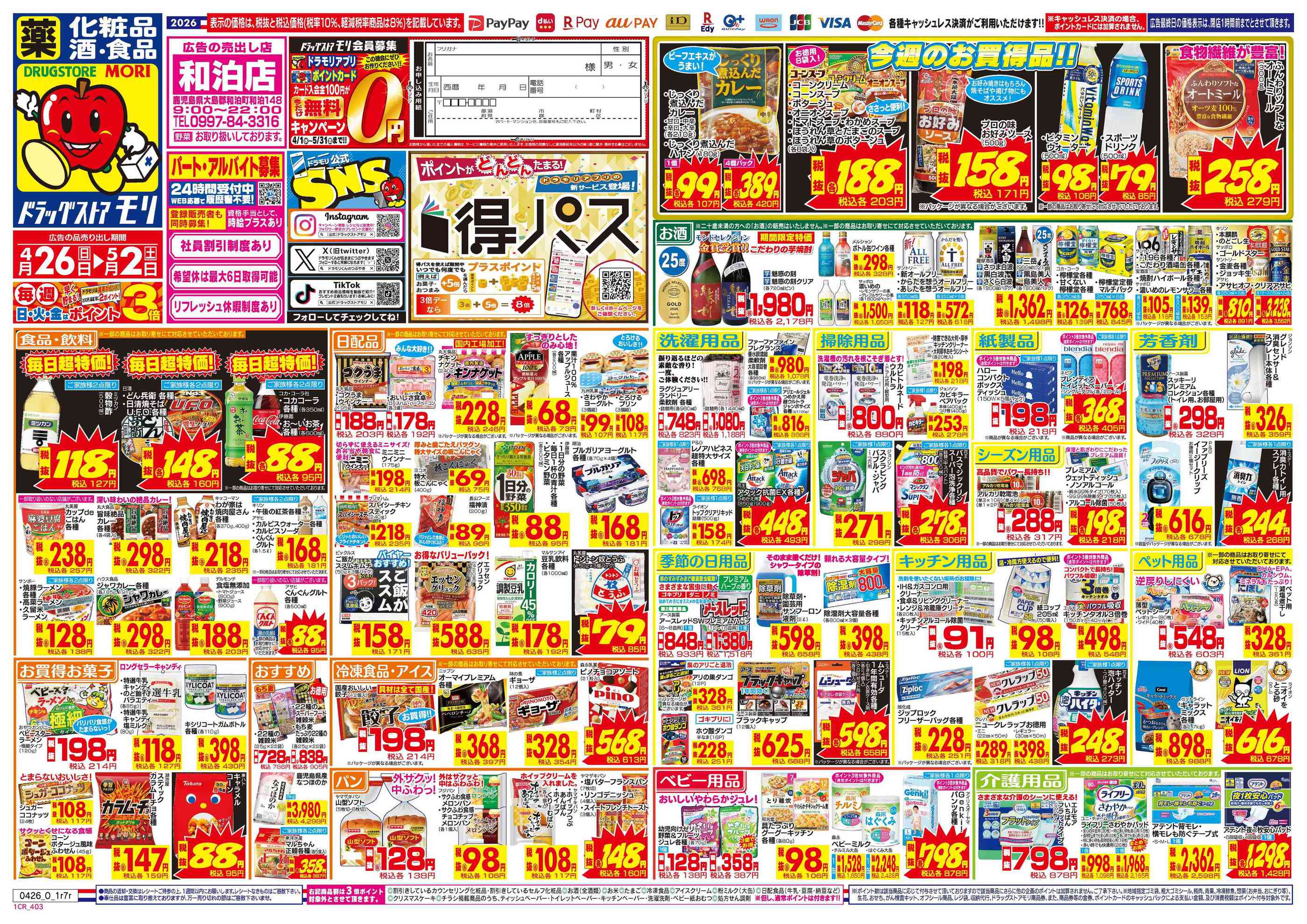 ドラッグストアモリ和泊店今週のチラシ(2026年4月27日〜5月3日)