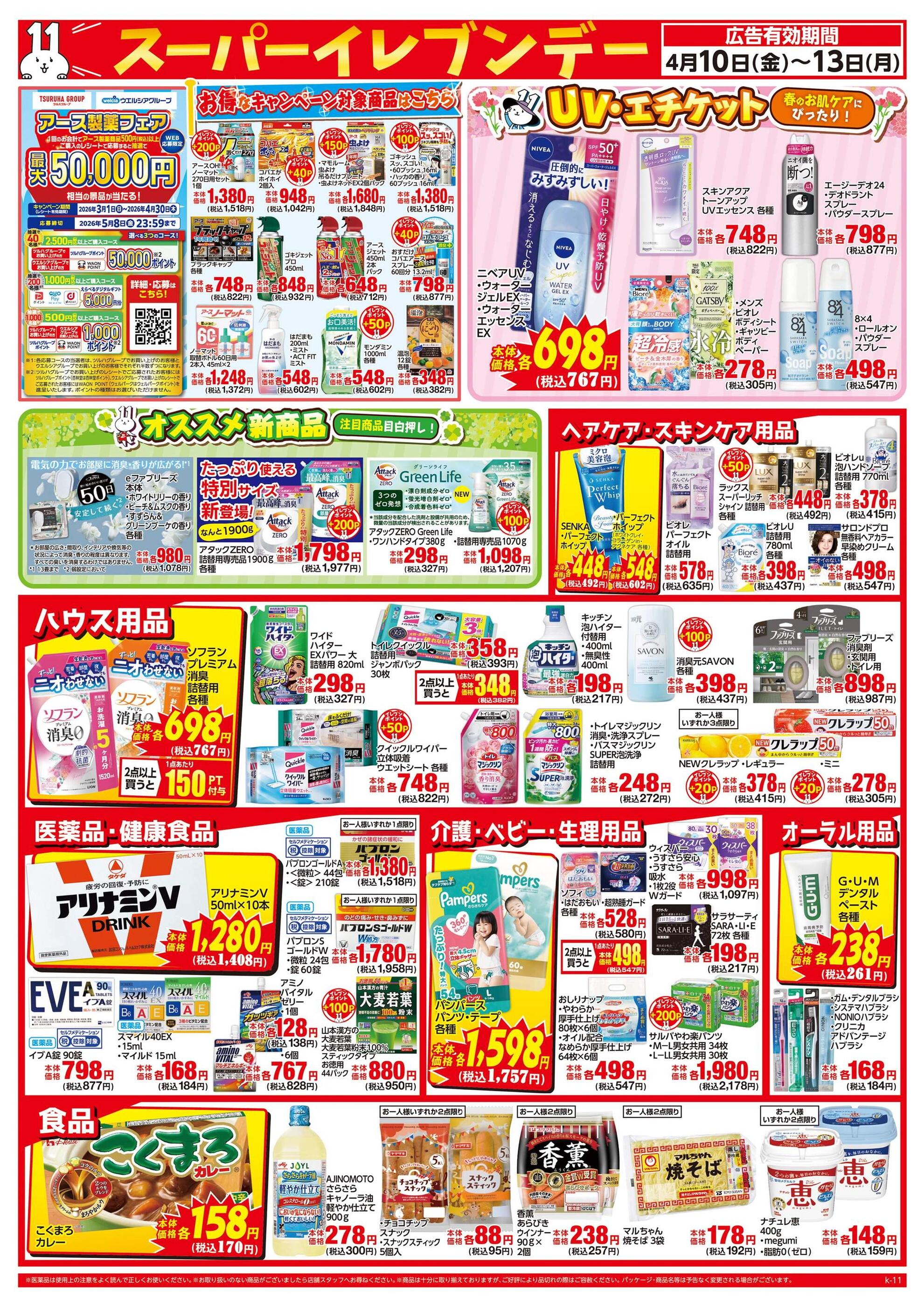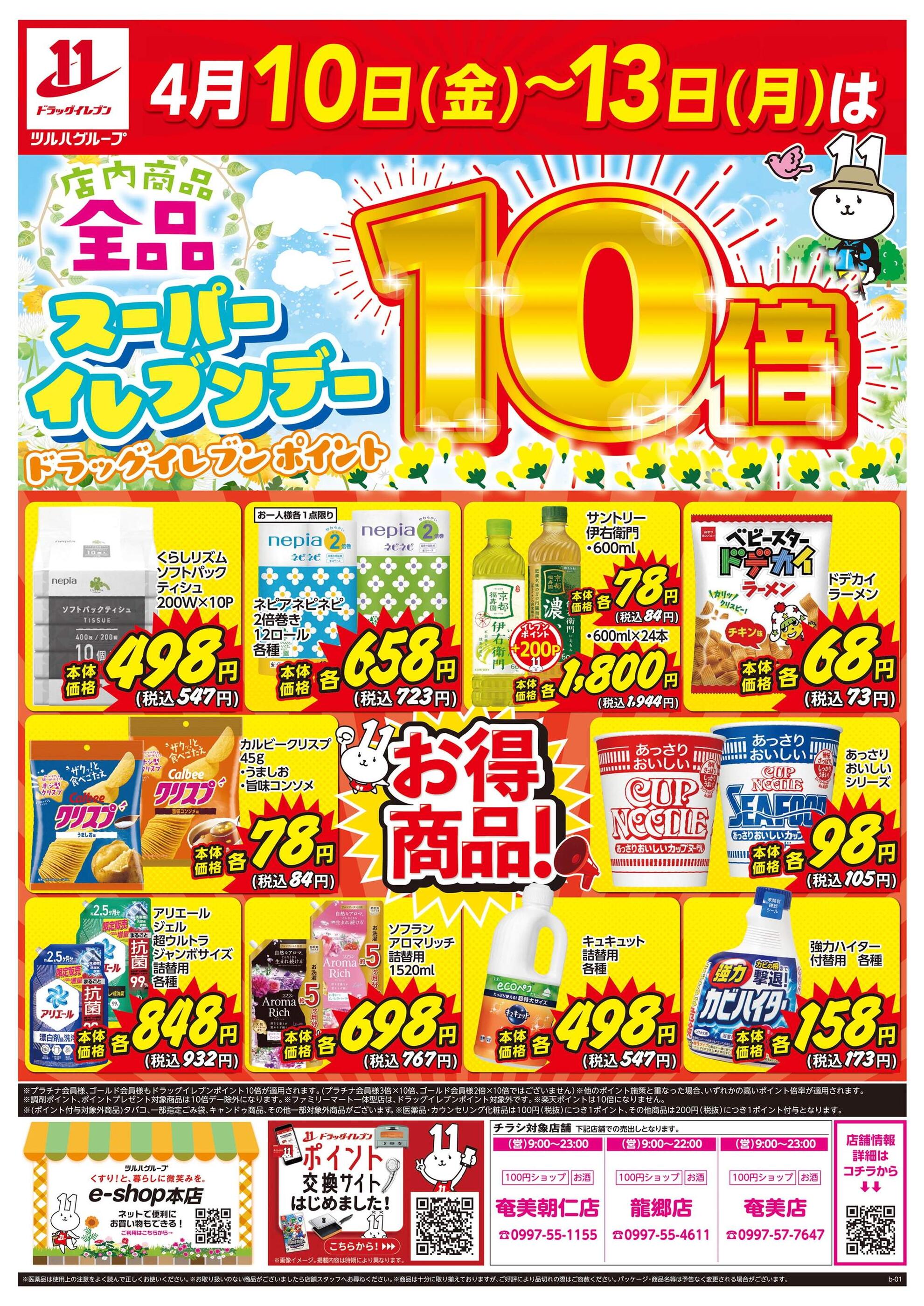 ドラッグイレブン奄美朝仁店今週のチラシ(2026年4月13日〜4月19日)