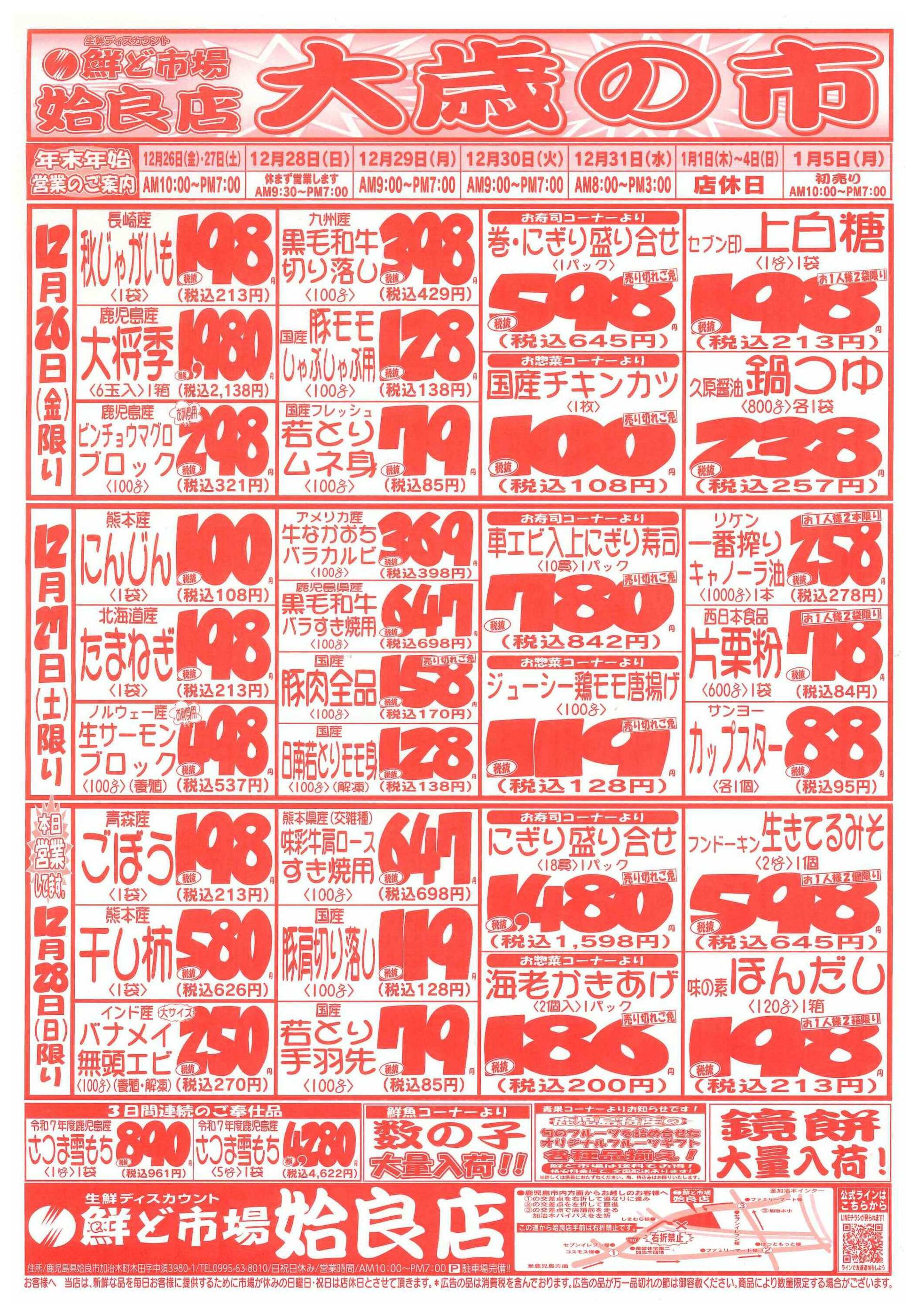 鮮ど市場姶良店今週のチラシ(2025年12月29日〜1月4日)