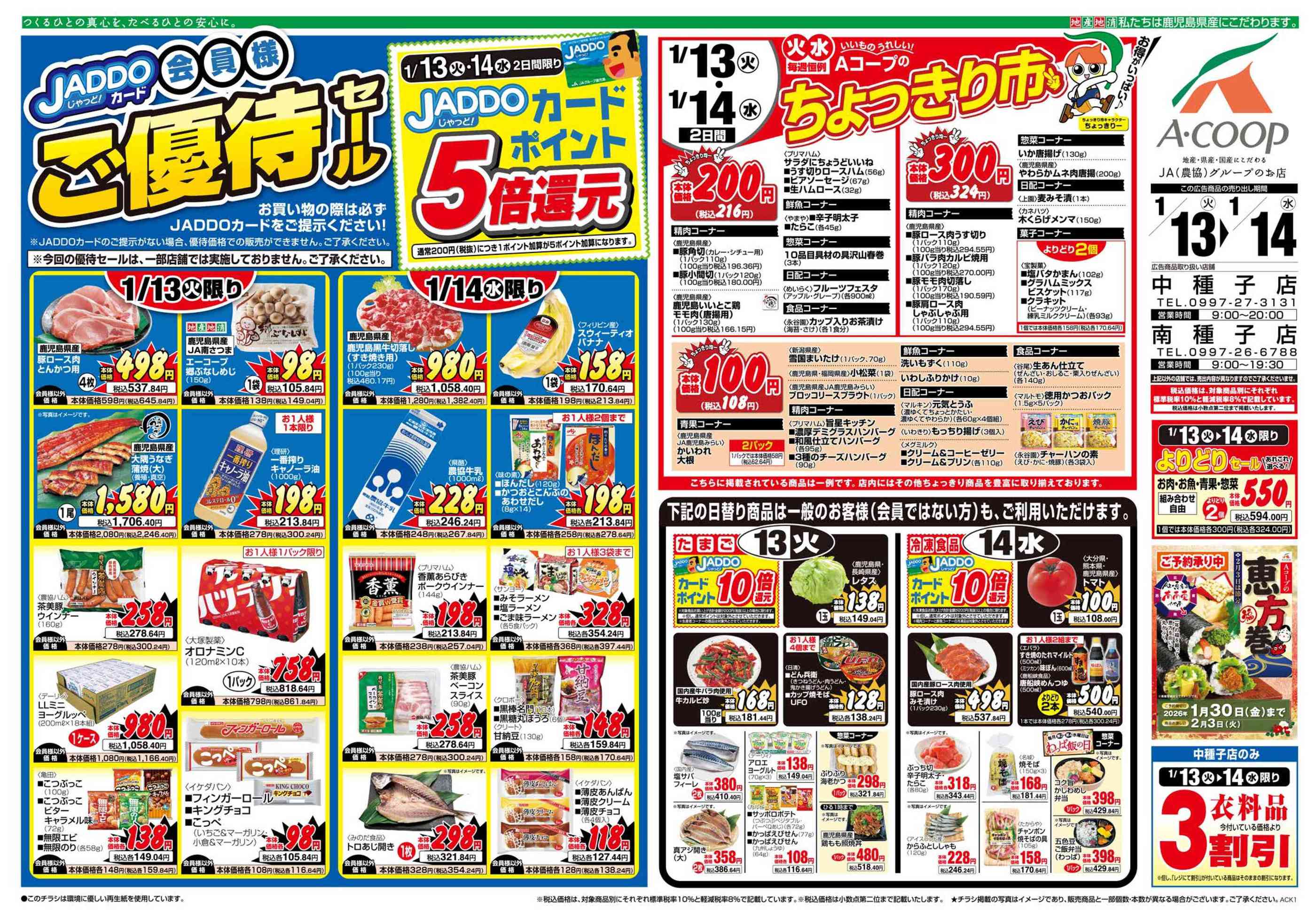 Aコープ中種子店今週のチラシ(2026年1月19日〜1月25日)