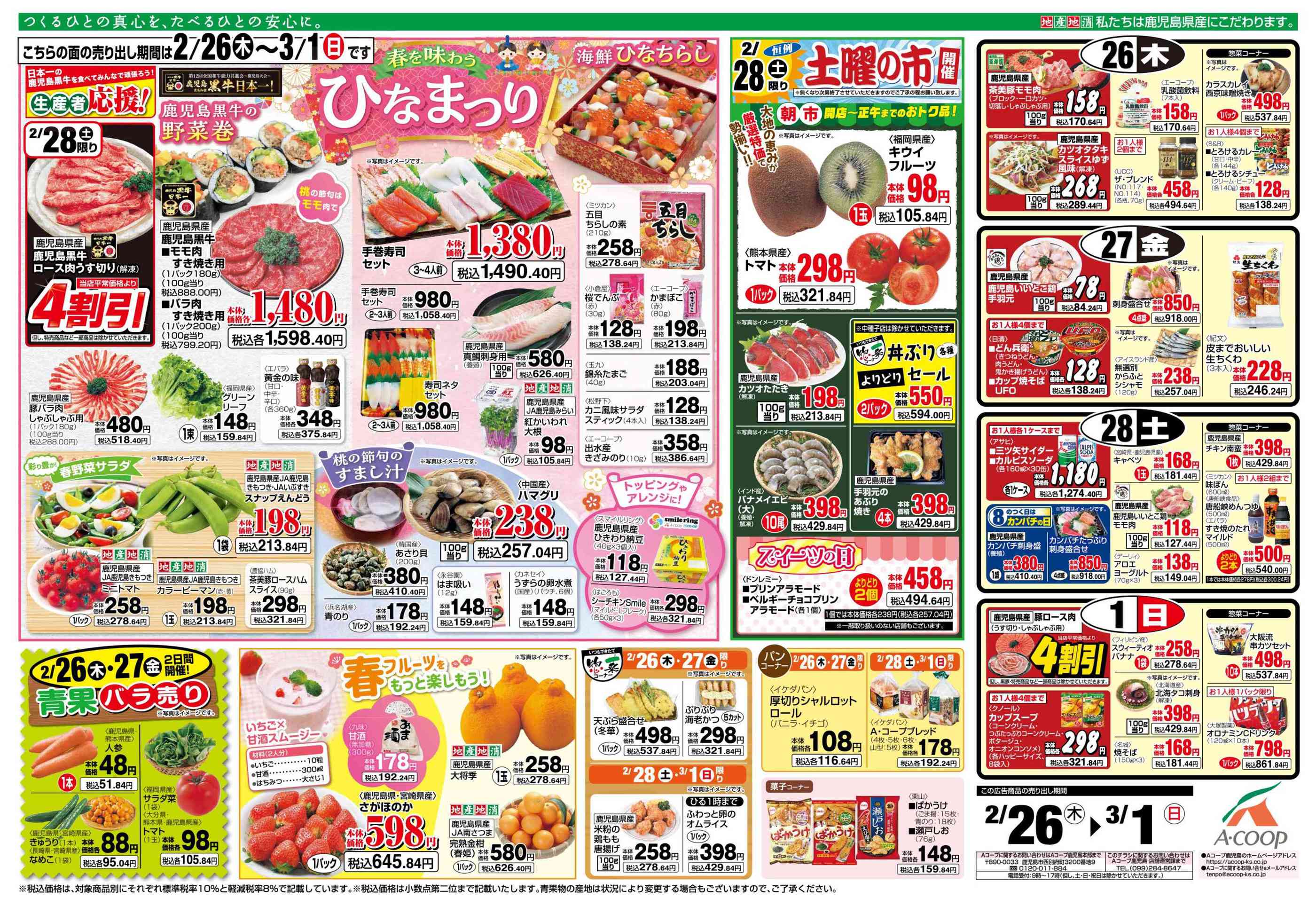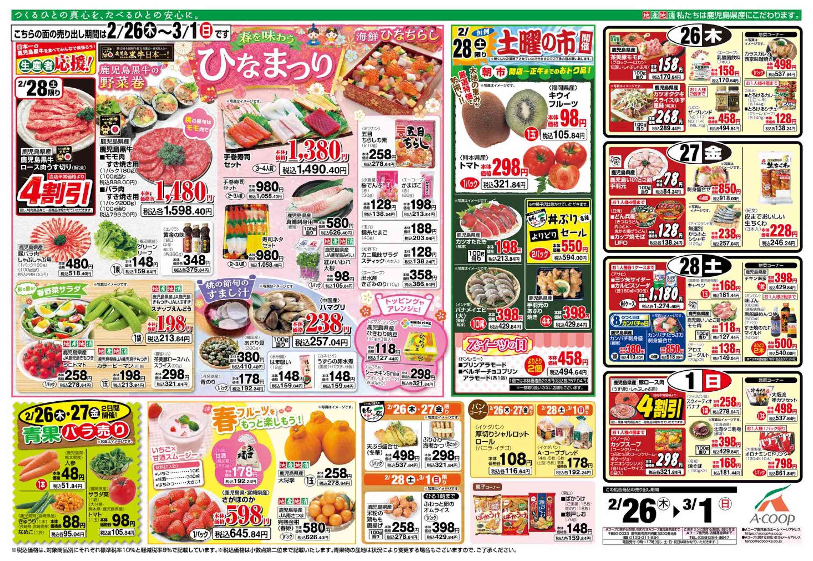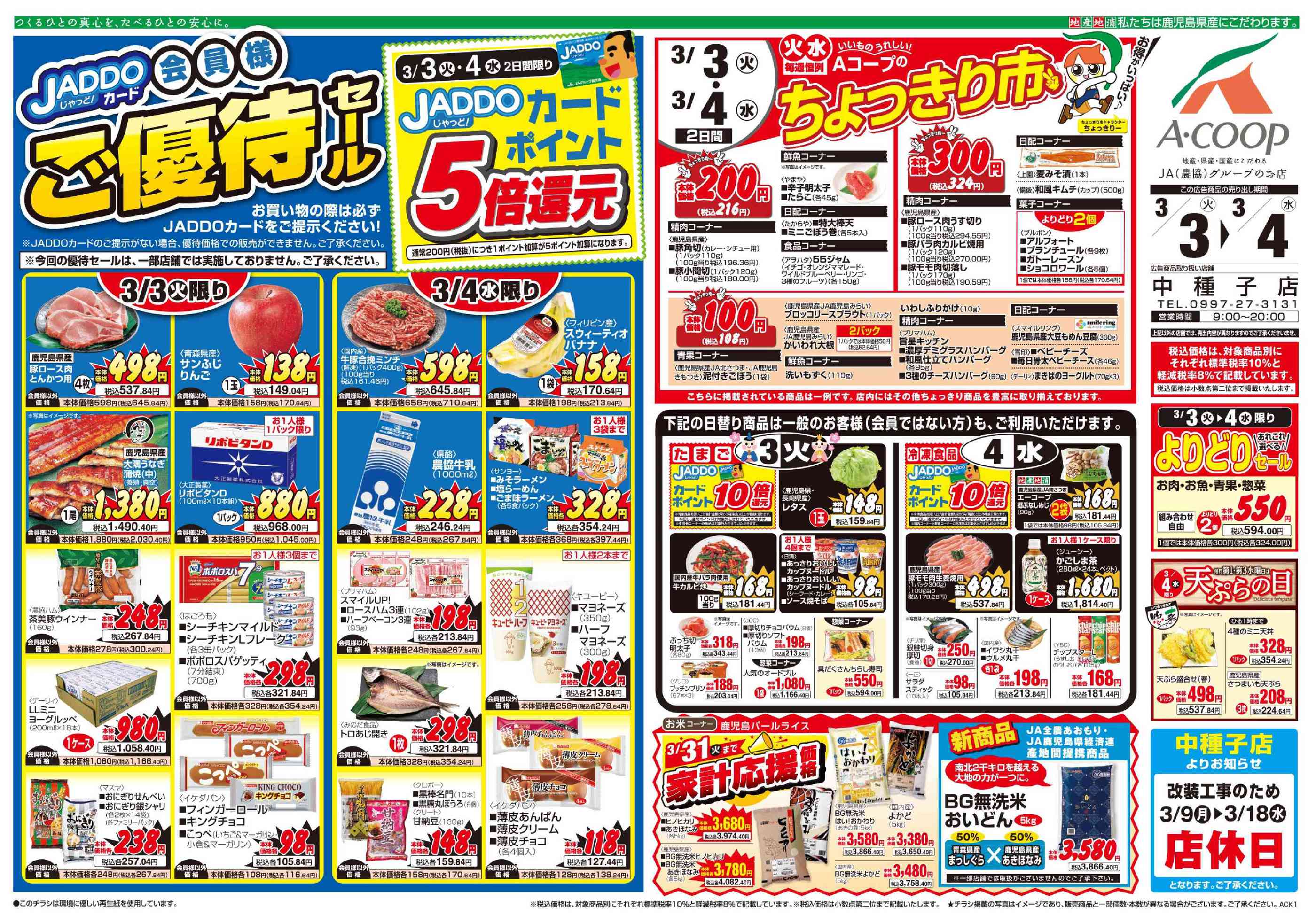 Aコープ中種子店今週のチラシ(2026年3月2日〜3月8日)